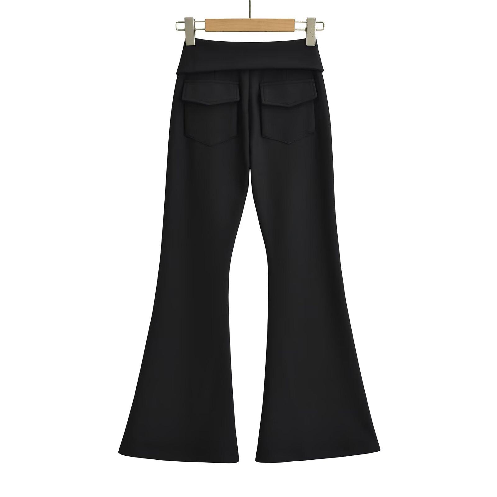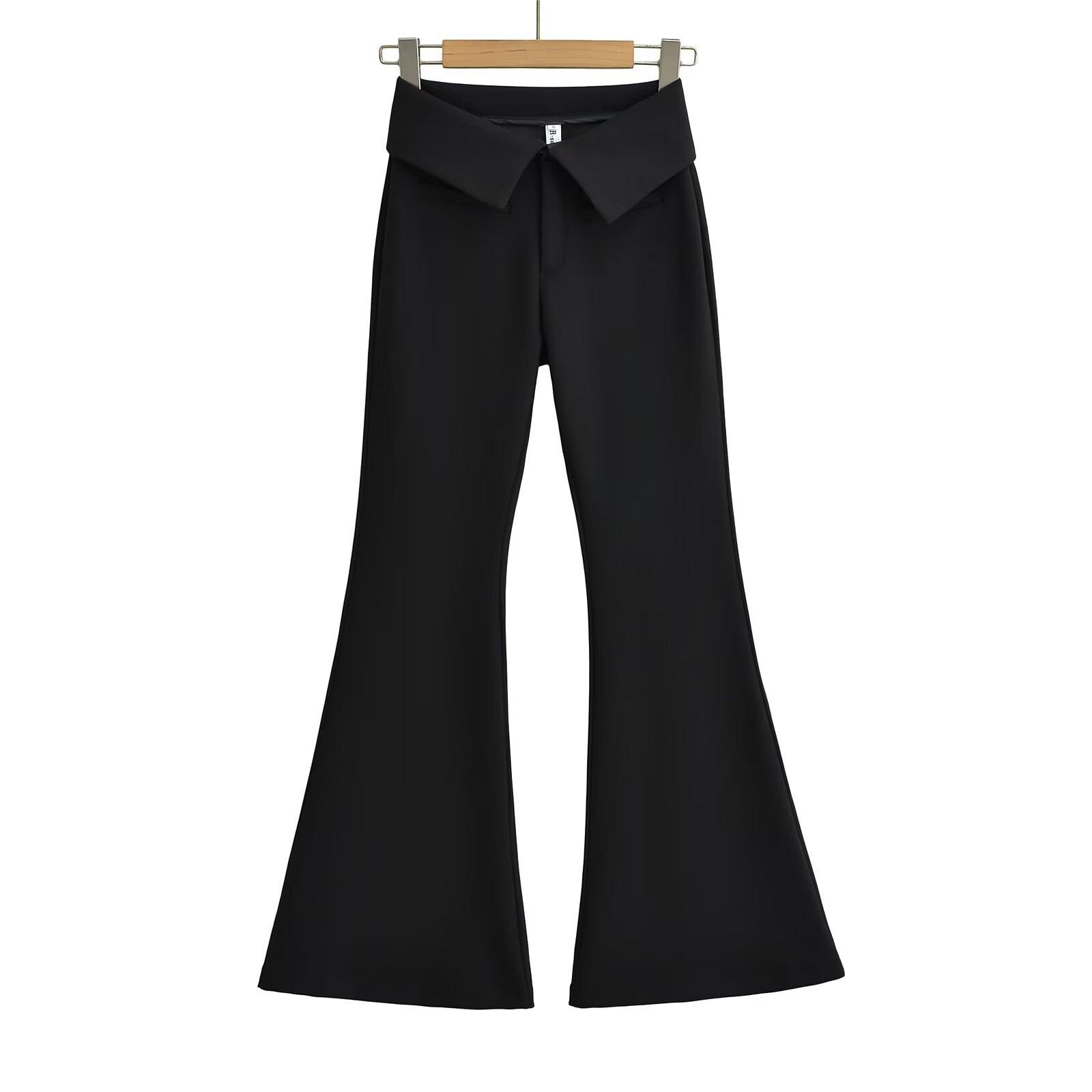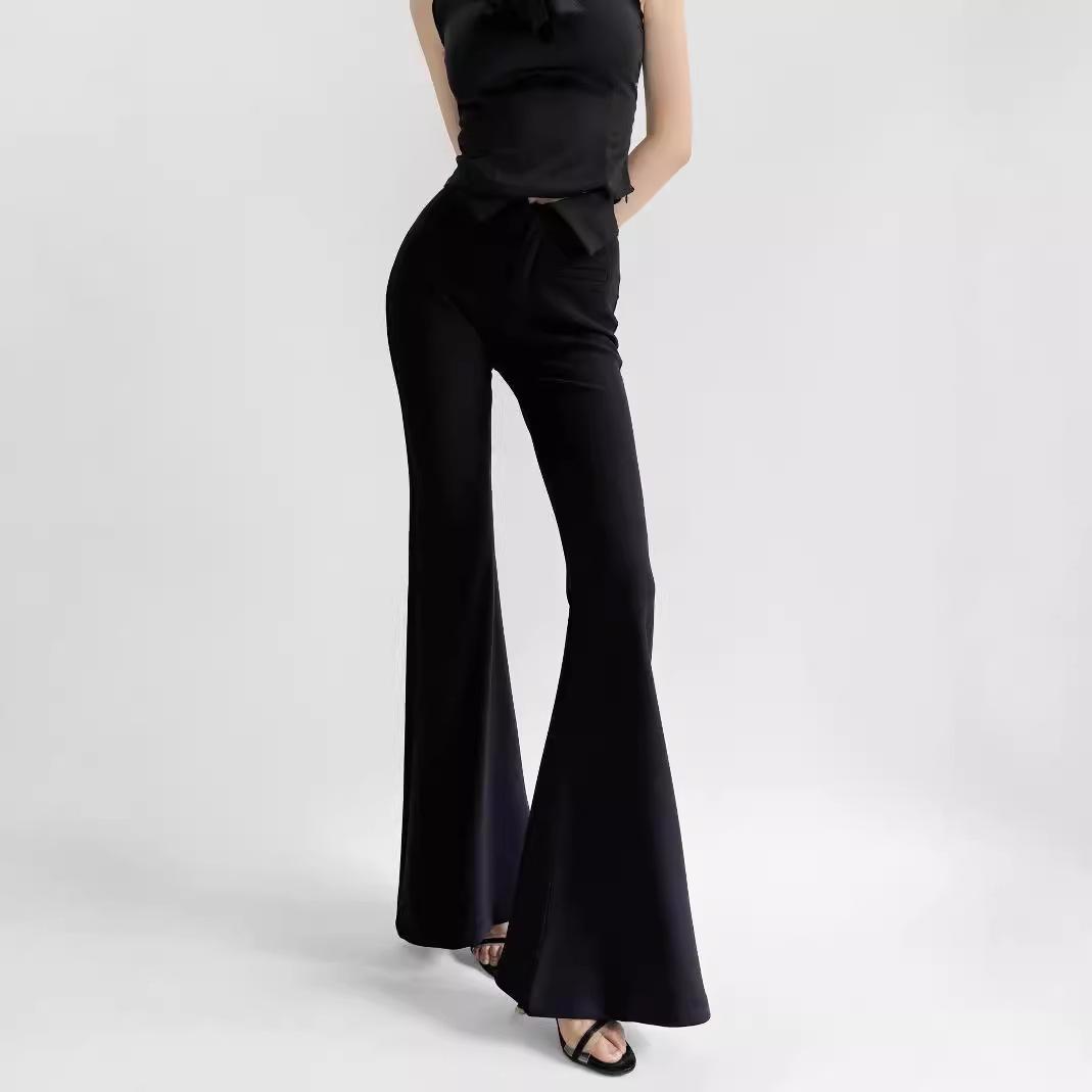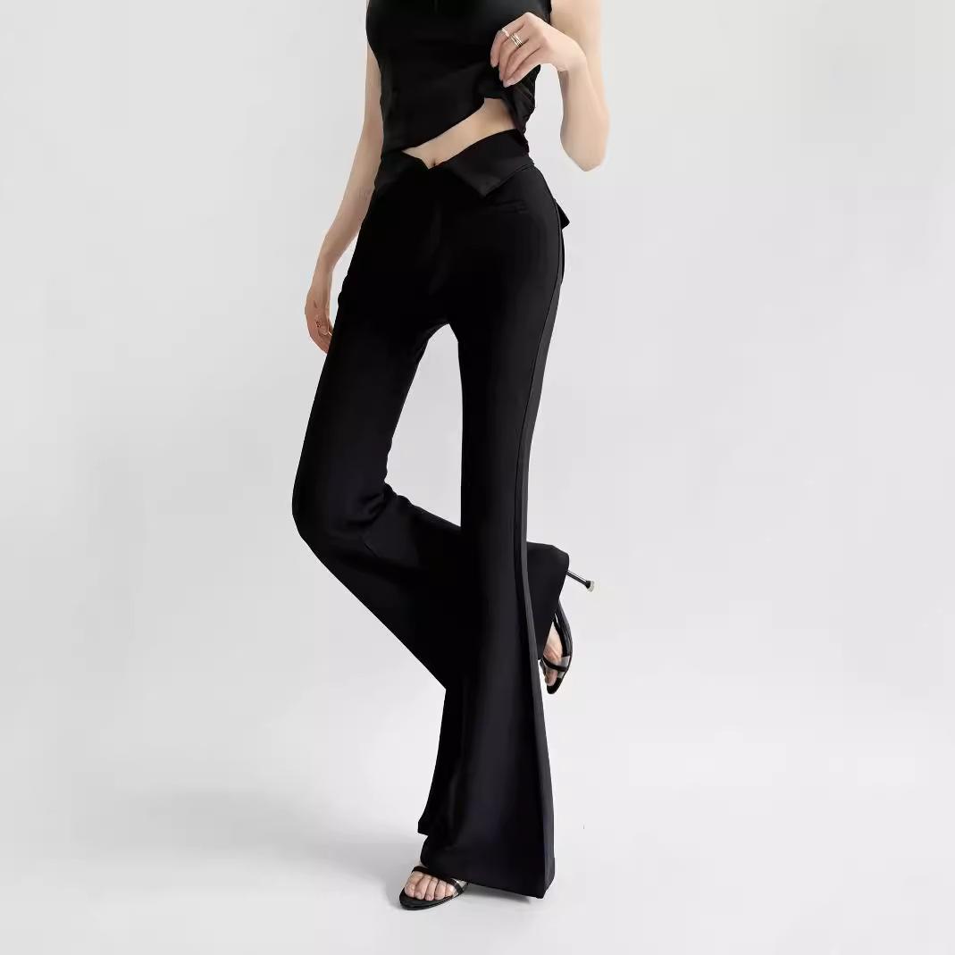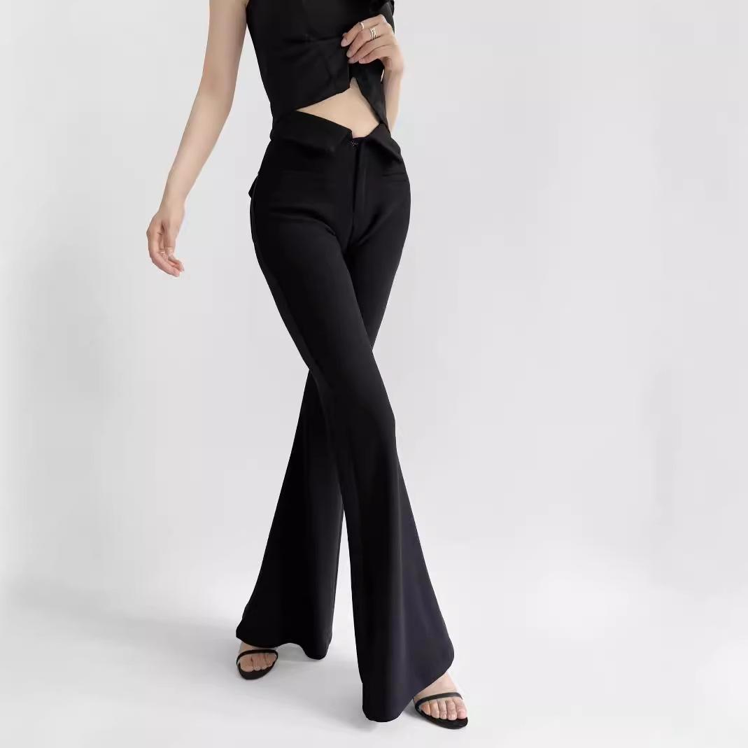 Pantalones sexis a la moda con diseño de cintura en V y cadera ajustada para mujer, pantalones micro acampanados con temperamento a la moda S20936