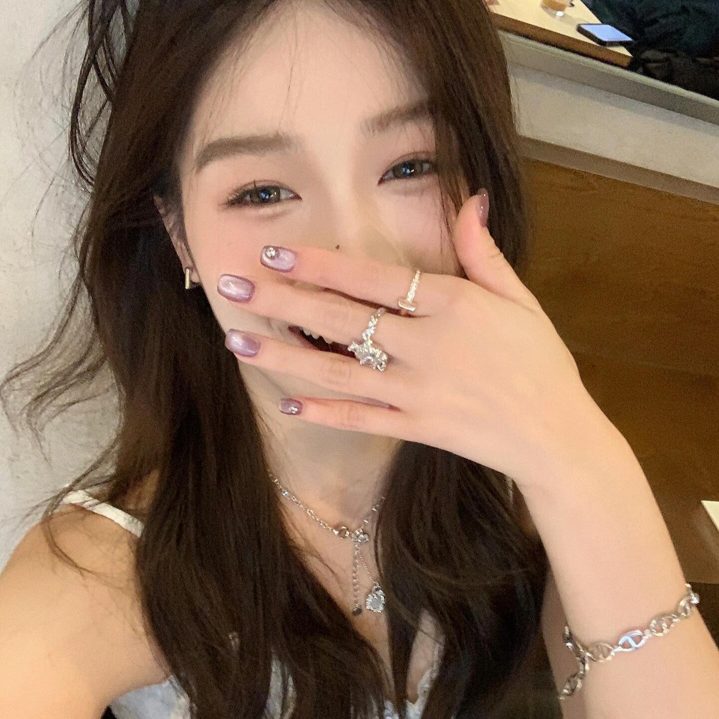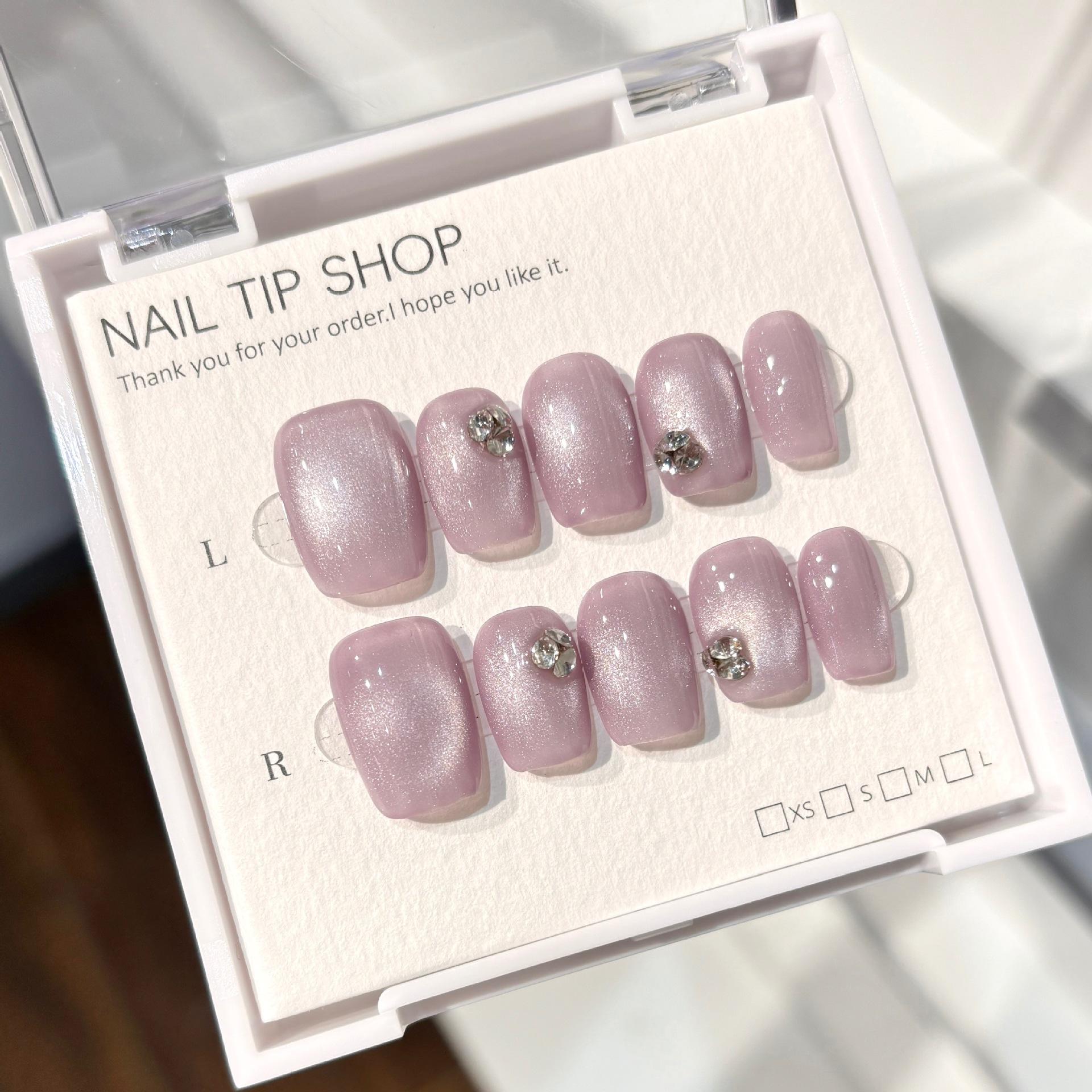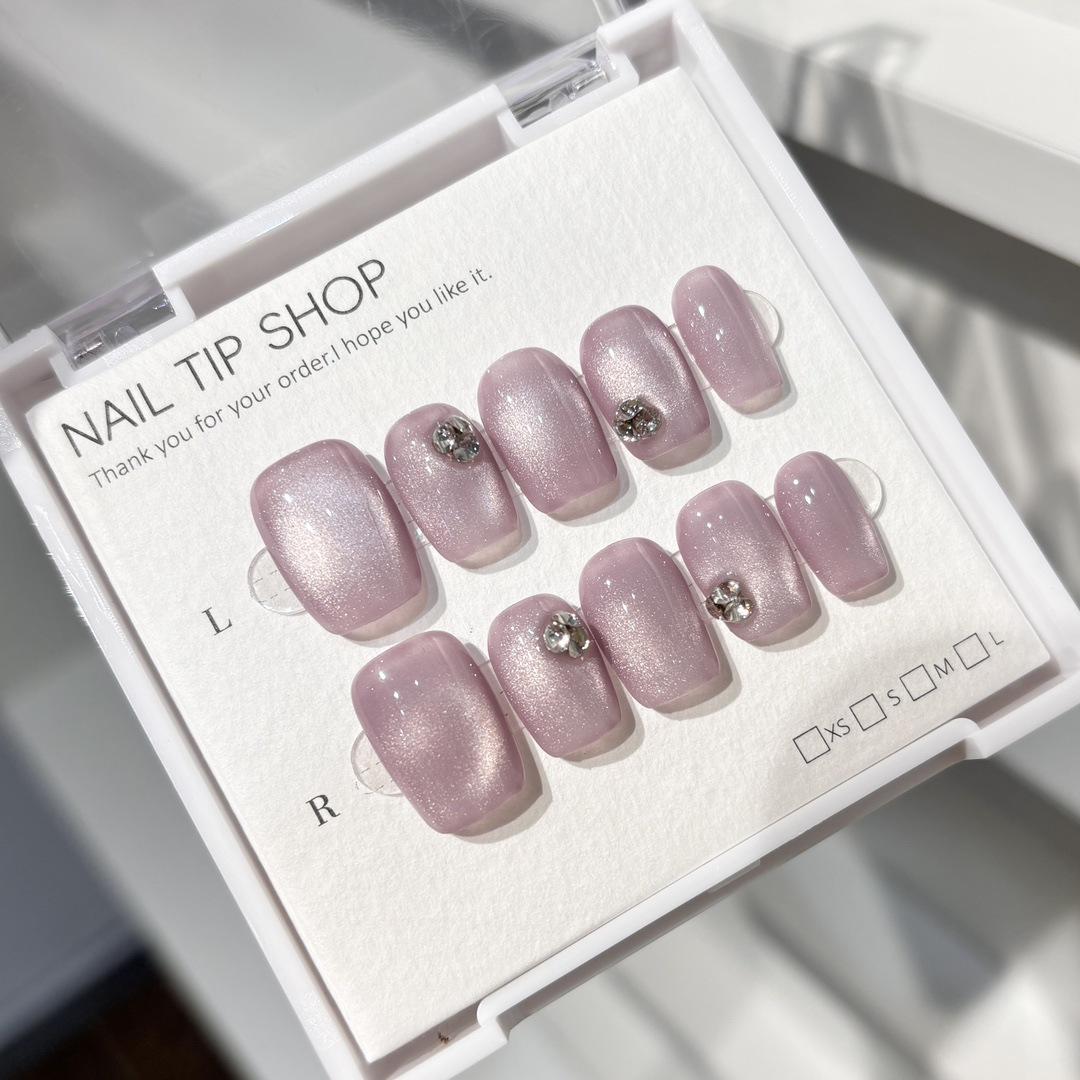 Parche de manicura con cuentas de vidrio púrpura súper brillante, ojo de gato, armadura pura para usar en las manos, blancura y temperamento, uña postiza extraíble
