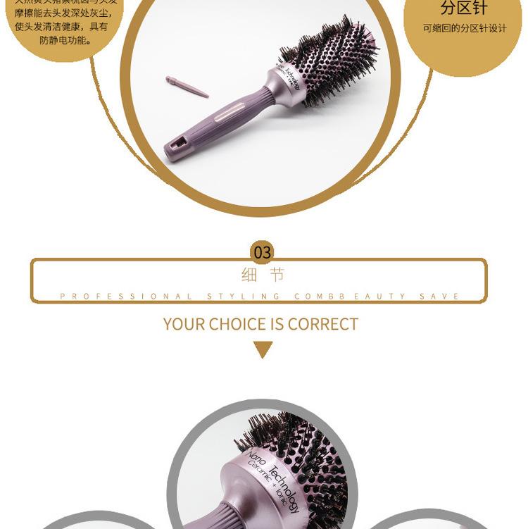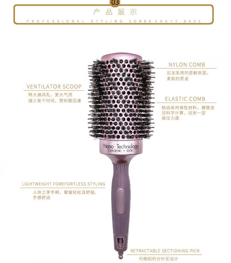 Peine giratorio de cerdas para peinar el cabello, peine cilíndrico, peine de cerámica, peine tubular de aluminio de 8.ª generación.