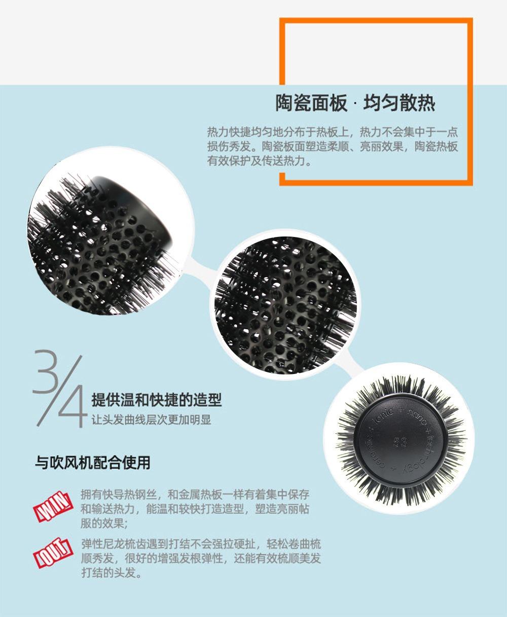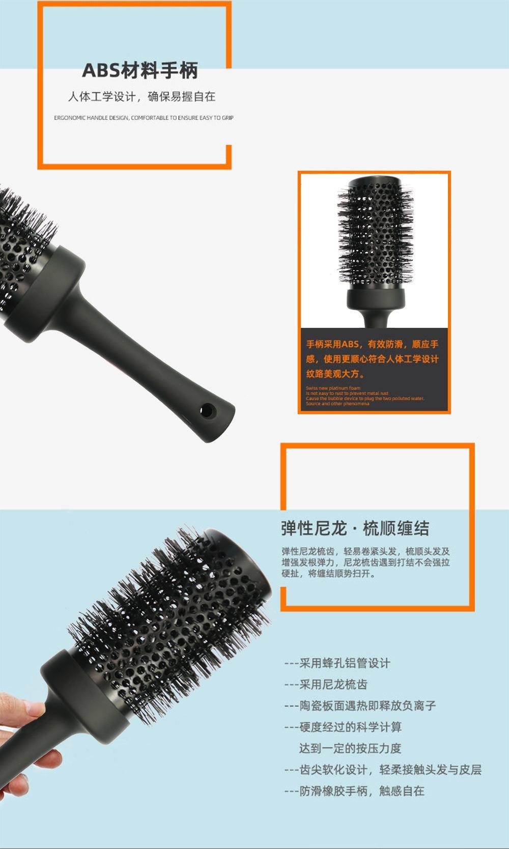 Peine redondo de aire transfronterizo, material ABS de nailon, resistente a altas temperaturas, peine de aluminio, peine para peinar cabello rizado de onda grande, peine para el cabello
