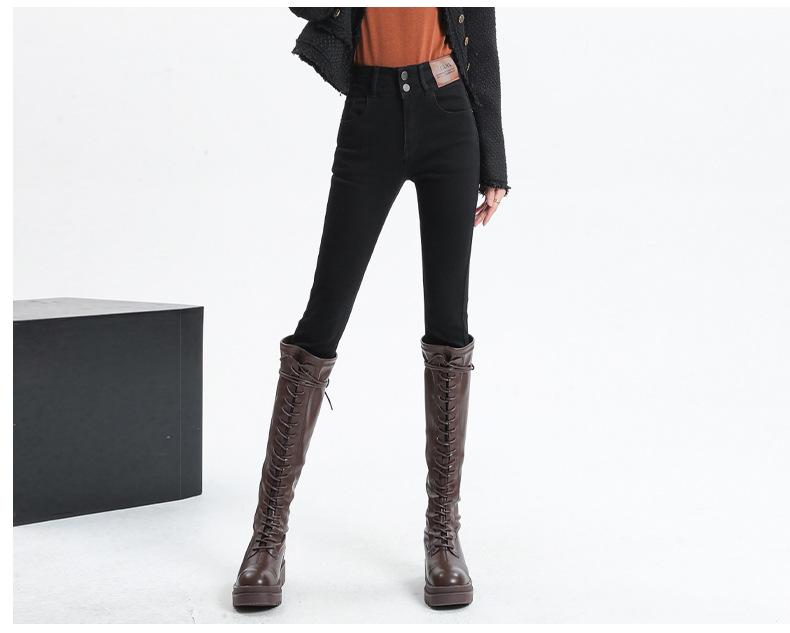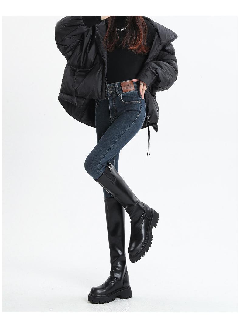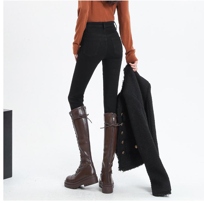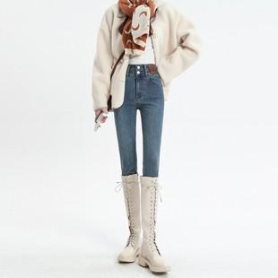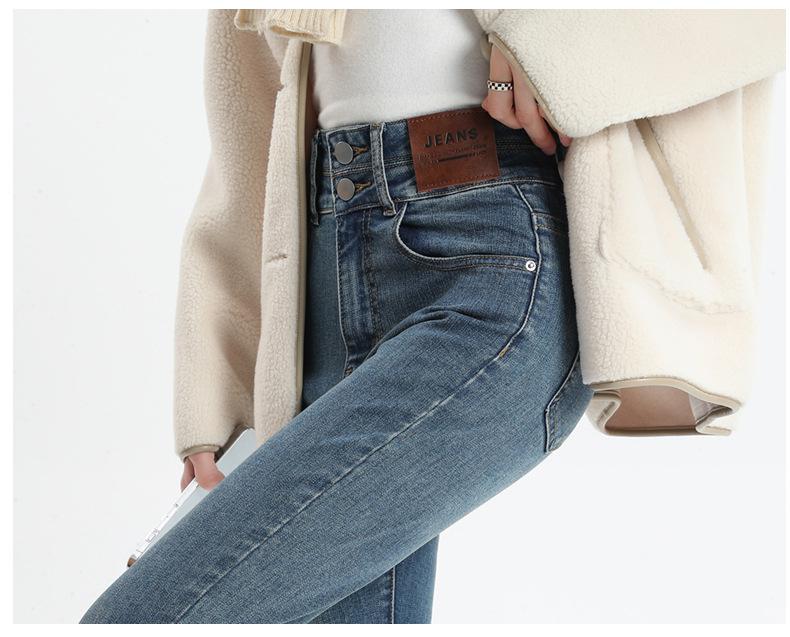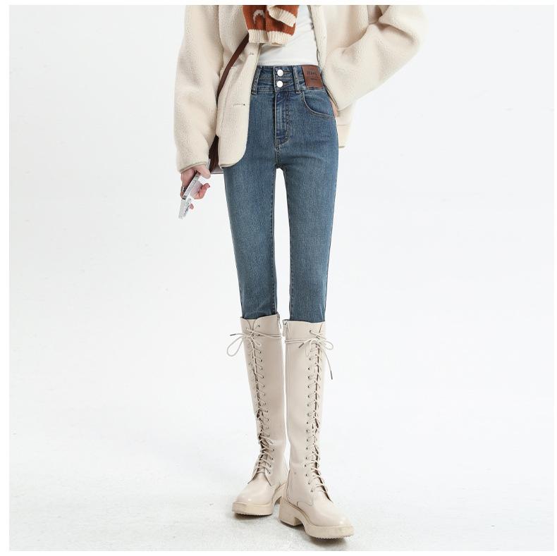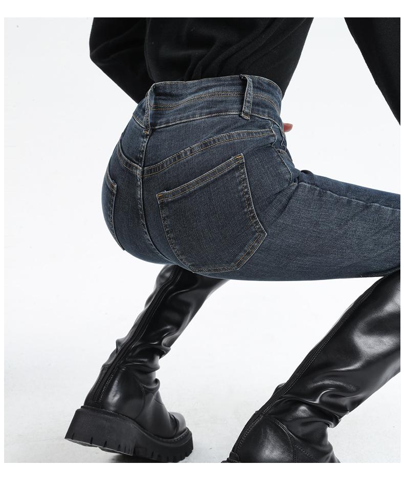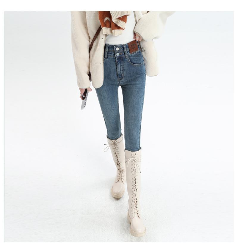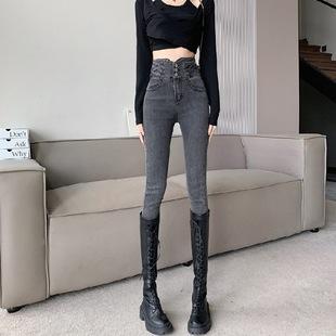 Jeans Skinny de Cintura Alta para Mujer para Otoño e Invierno, Estilo Coreano, Corte Ajustado, Entallados, Pantalones Lápiz, Pantalones de Mujer