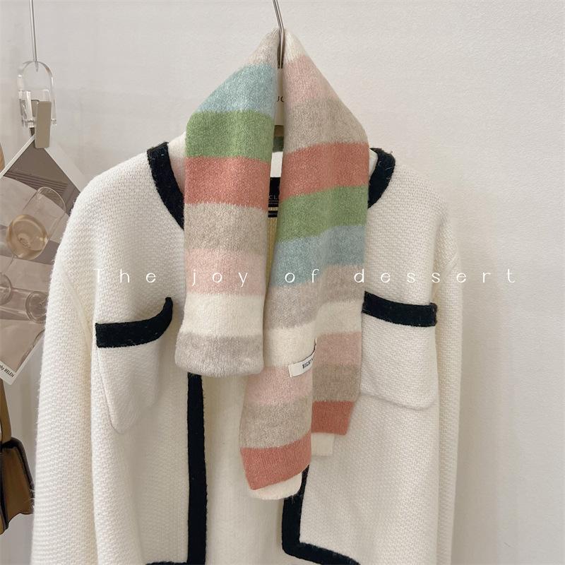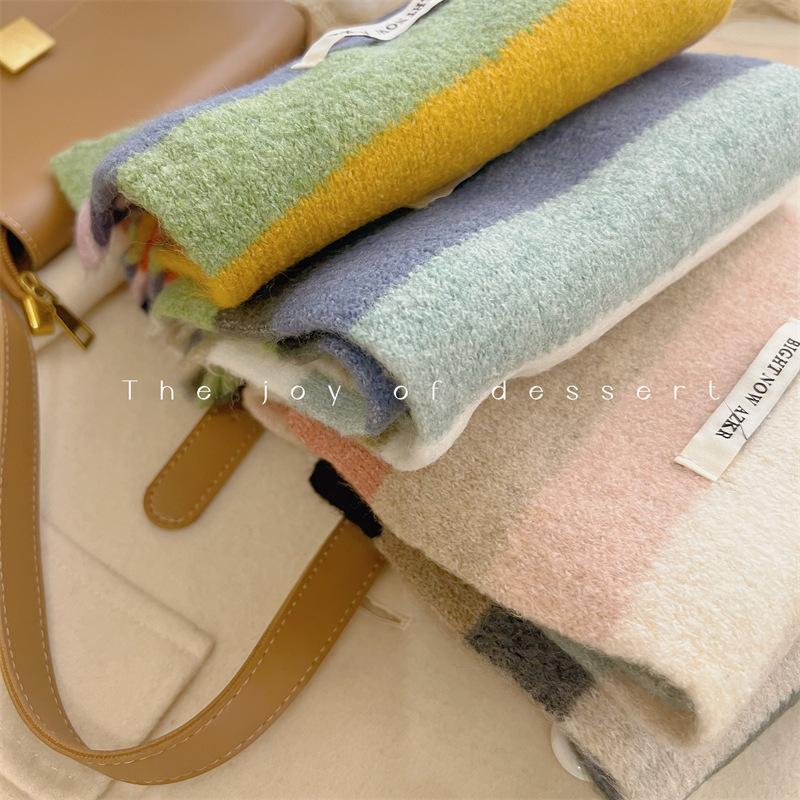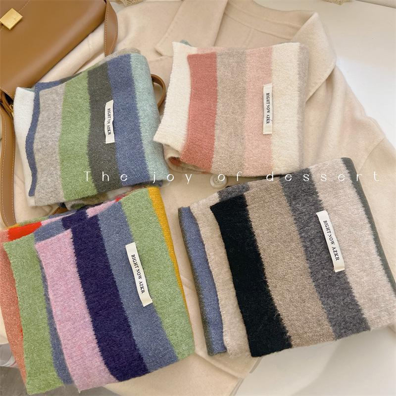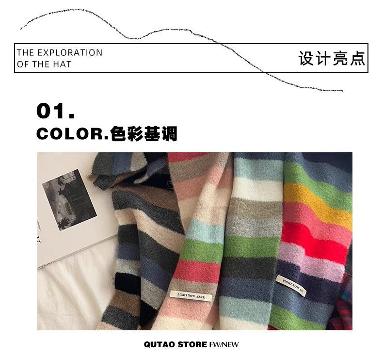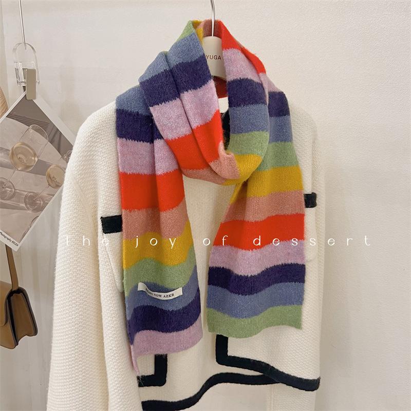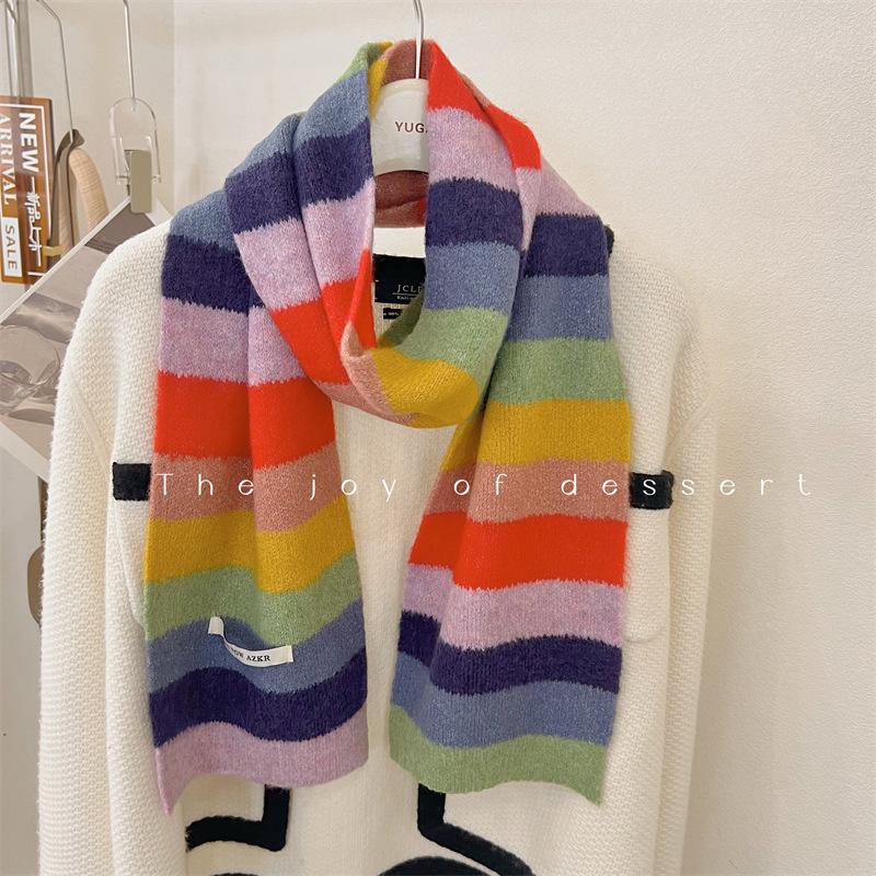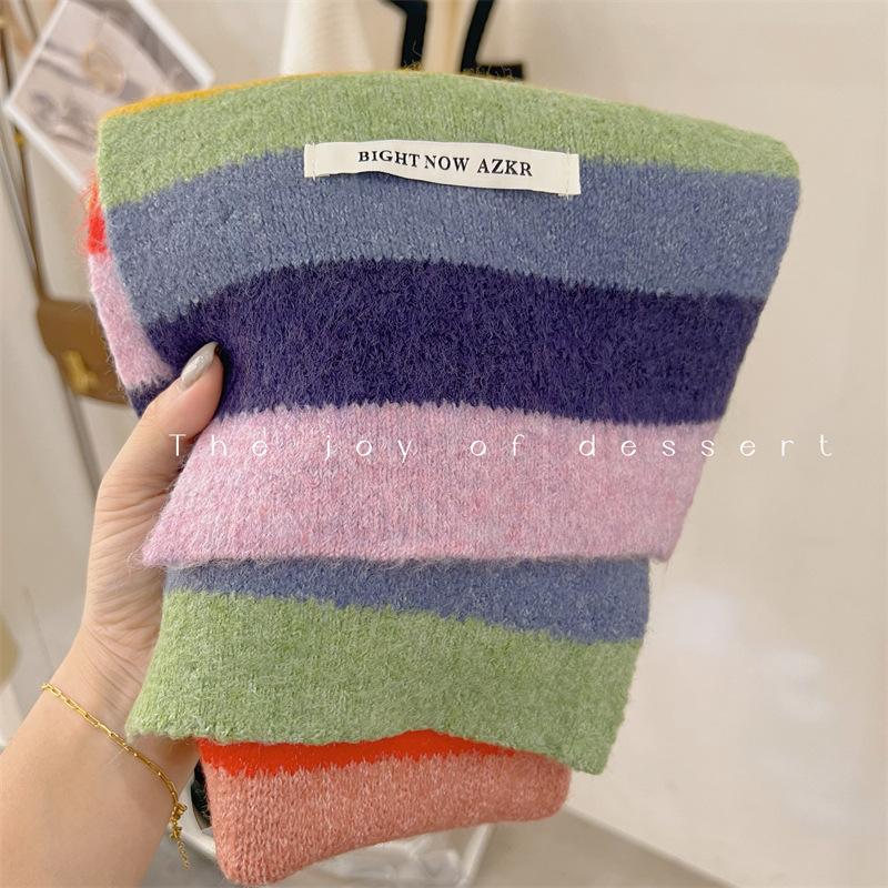 ¡Colores de arcoíris coloridos! Bufanda de punto a rayas original de Corea del Sur, bufanda gruesa de invierno cálida y peluda para mujer