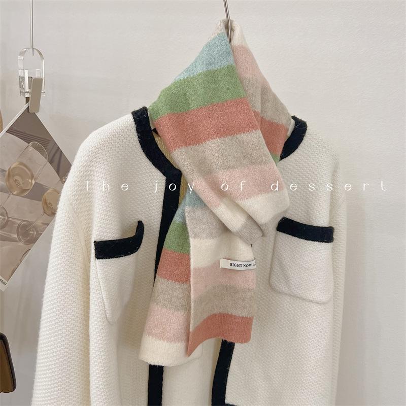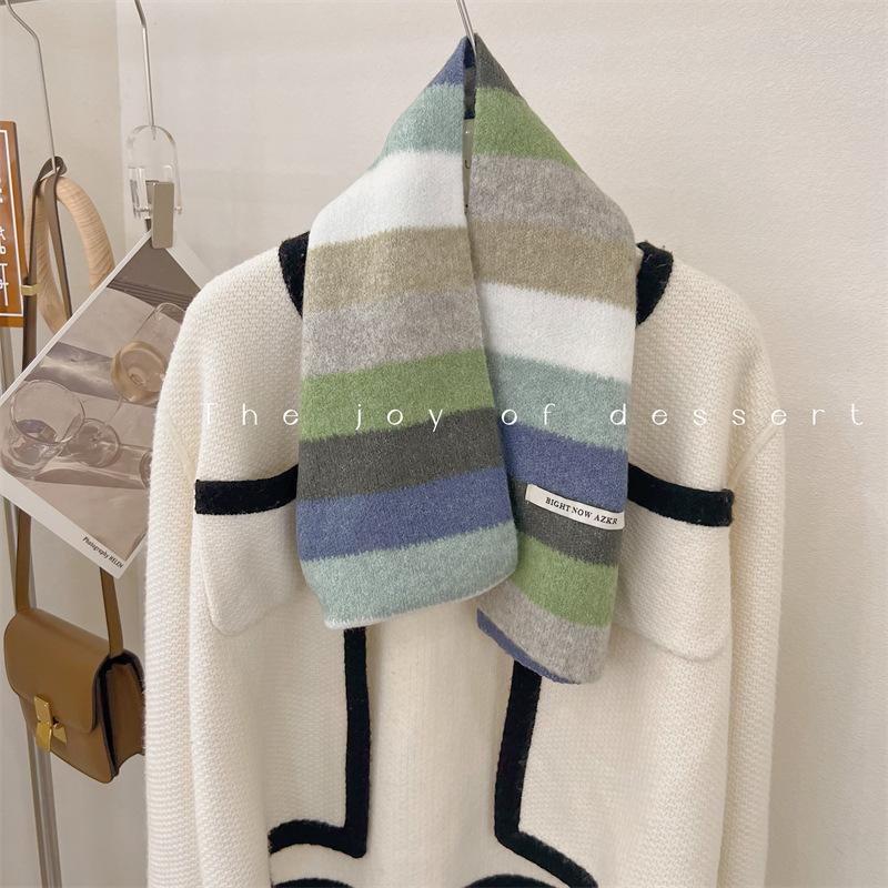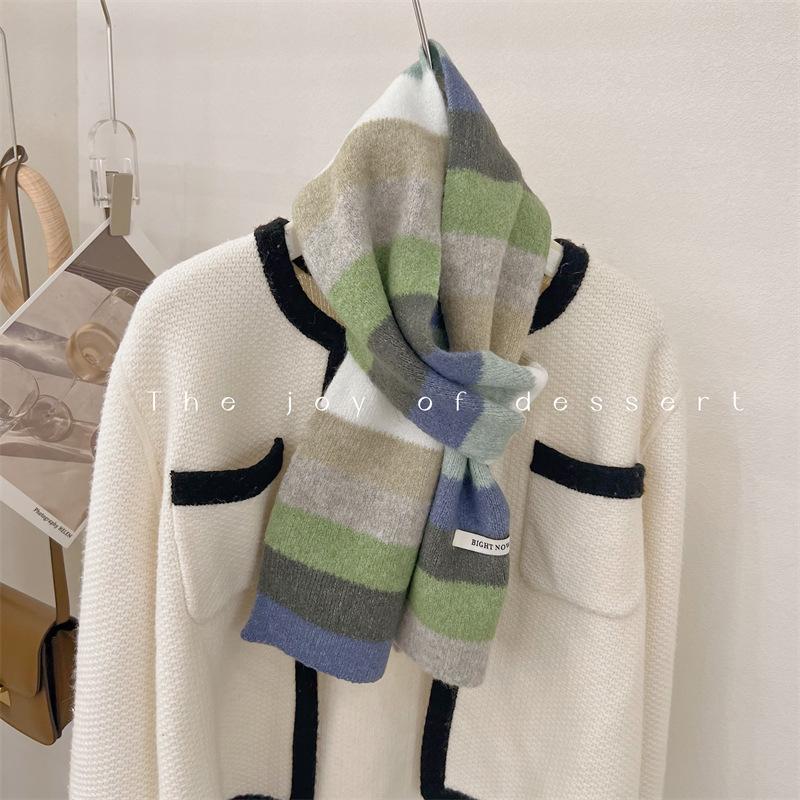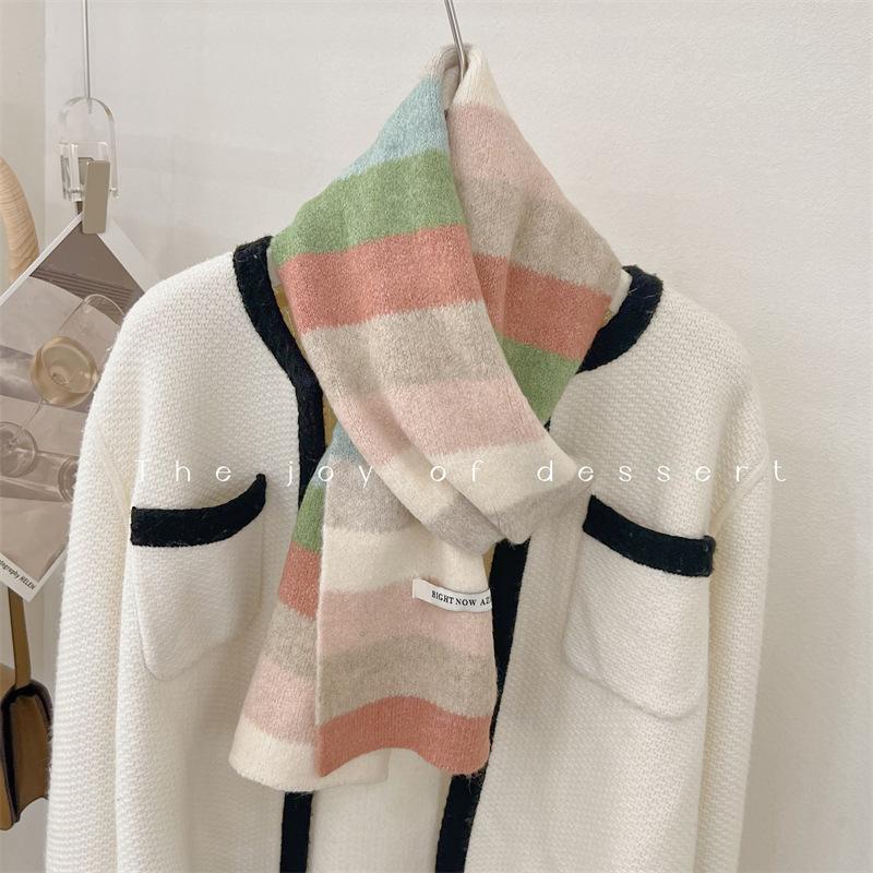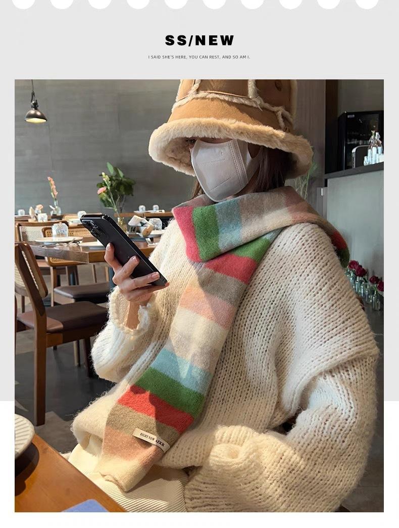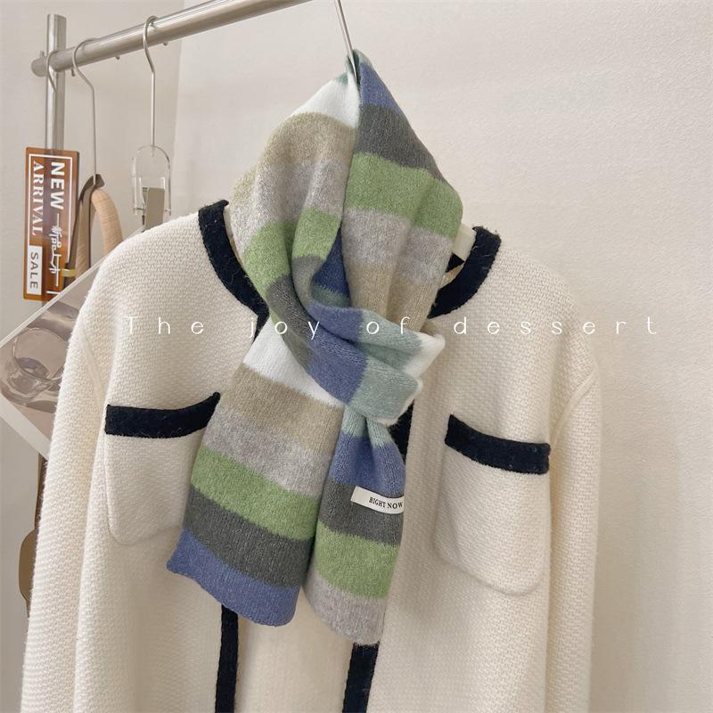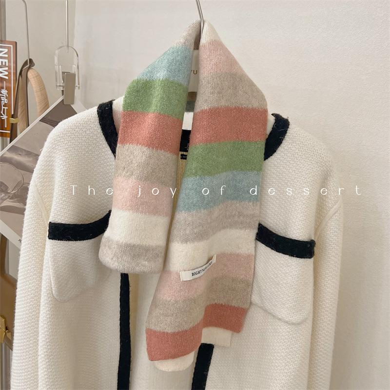 ¡Colores de arcoíris coloridos! Bufanda de punto a rayas original de Corea del Sur, bufanda gruesa de invierno cálida y peluda para mujer