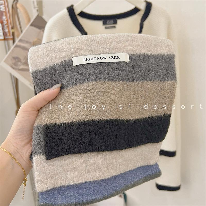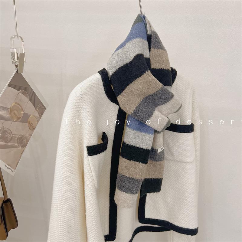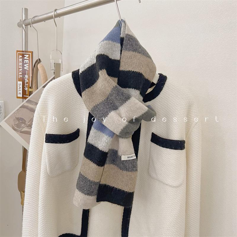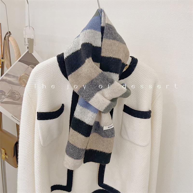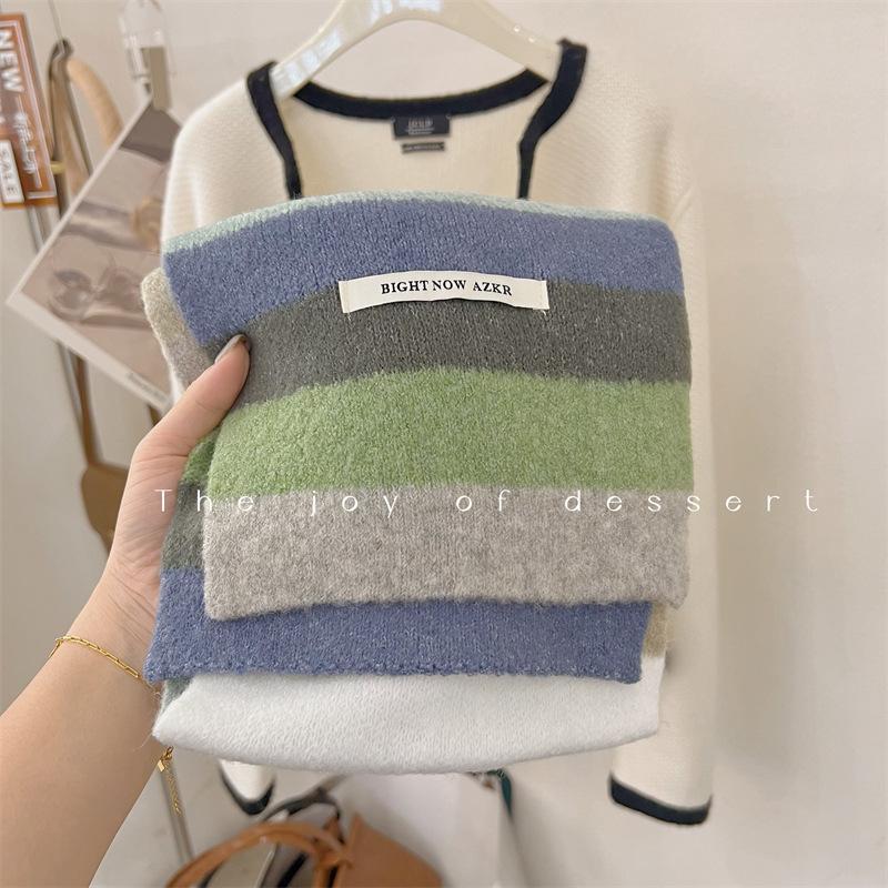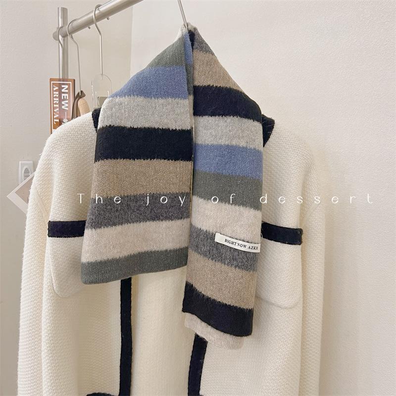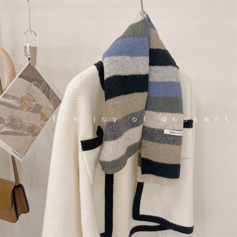 ¡Colores de arcoíris coloridos! Bufanda de punto a rayas original de Corea del Sur, bufanda gruesa de invierno cálida y peluda para mujer