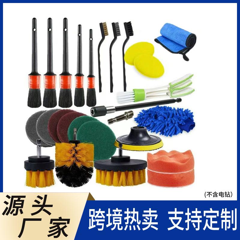 Venta caliente transfronteriza, cepillo de limpieza para coche, 27 piezas, taladro eléctrico, cepillo de salida de aire, guantes para coche, combinación