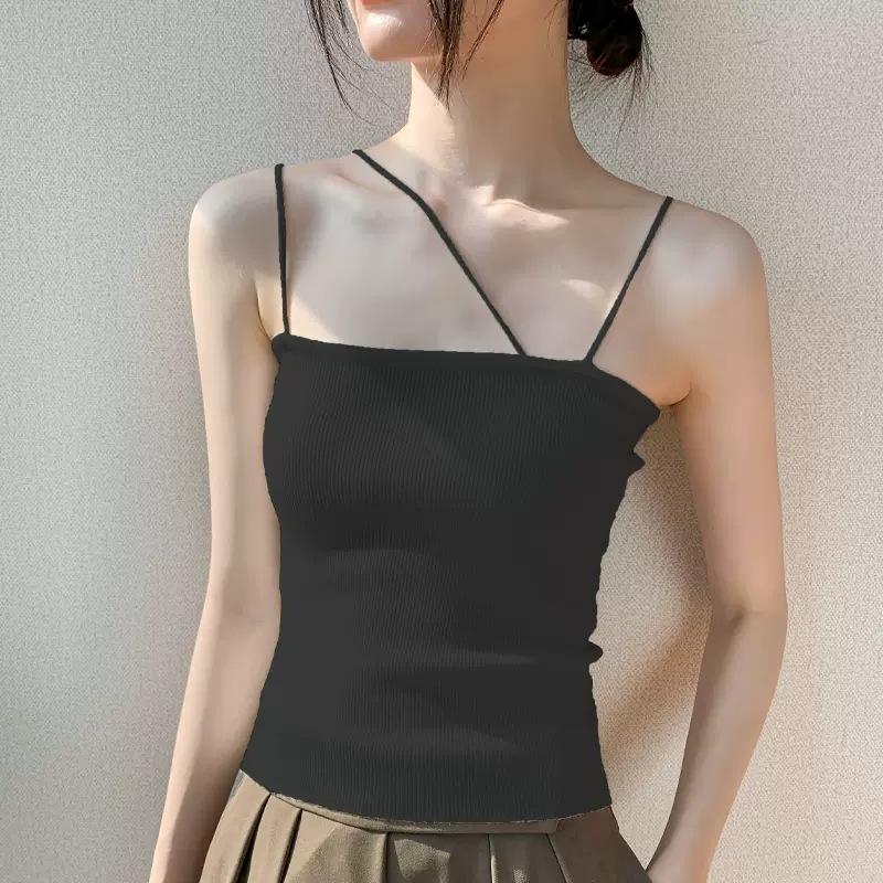 Chaleco de punto de color liso con tirantes para mujer, primavera y verano 2023, nuevo top ajustado con diseño interior de clavícula adelgazante