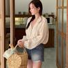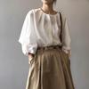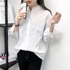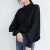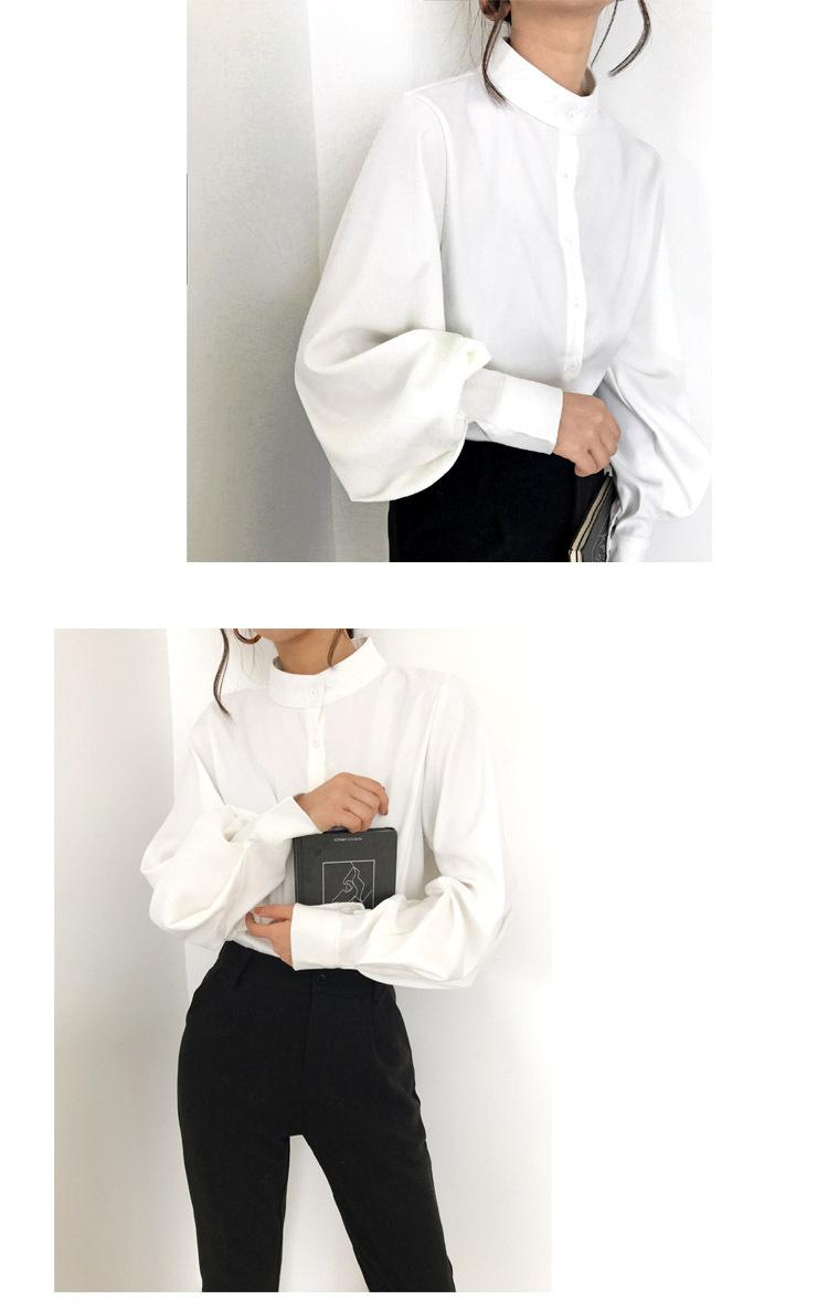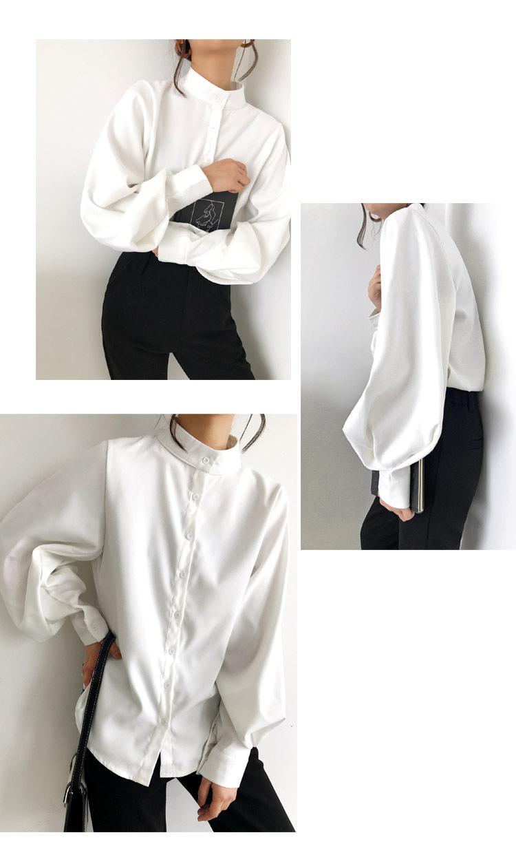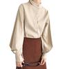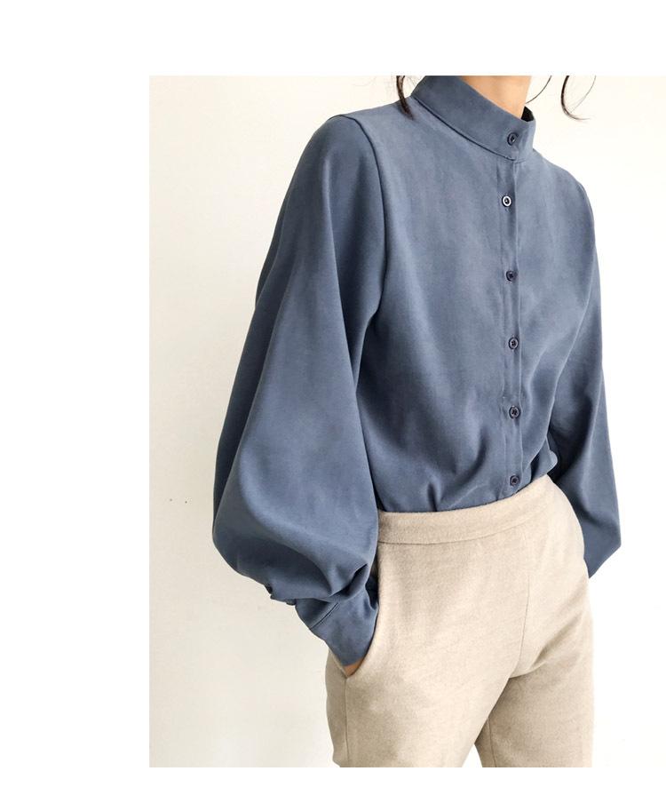 Diseño de Estilo Suave Transfronterizo Cuello Mao Mangas Farol Mangas Abullonadas Estilo Coreano Camisa de Manga Larga Cepillada para Mujer