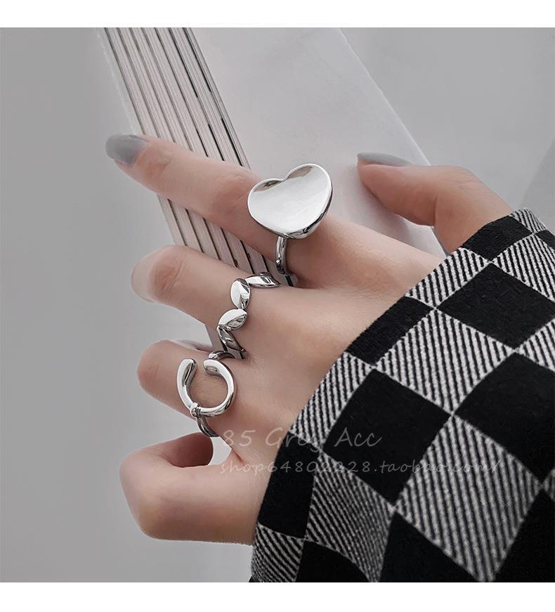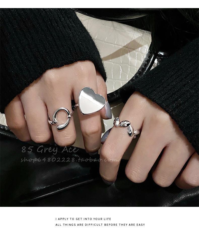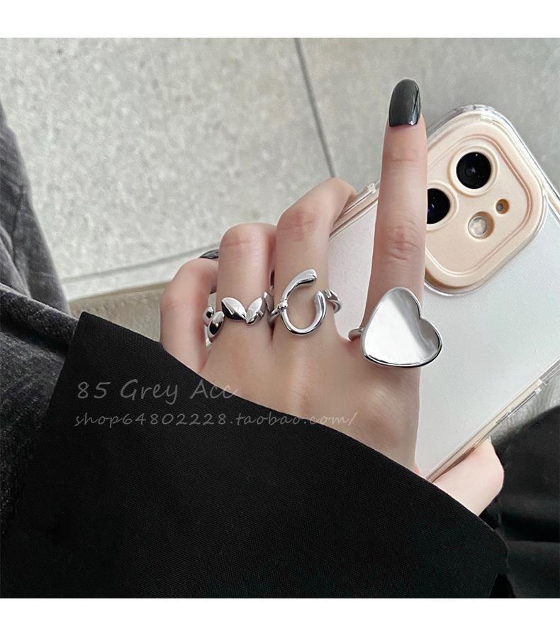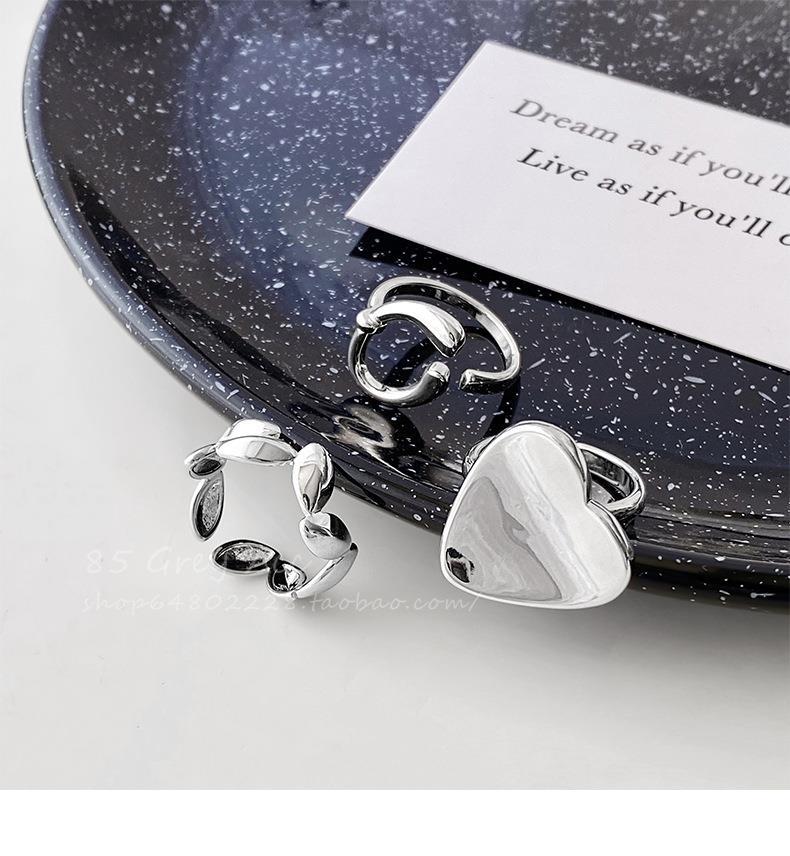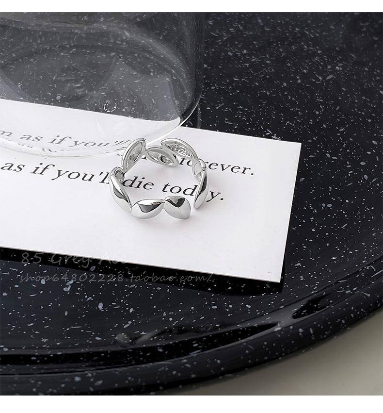 Anillo de hoja irregular para mujer, moda apilada, forma de C, amor, S925, anillo abierto de plata, dulce, fresco, con forma de comida, anillo de dedo, marea