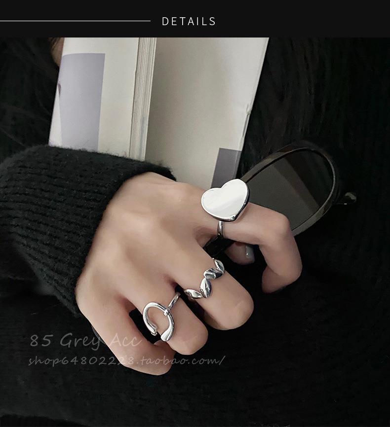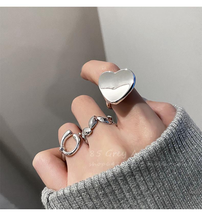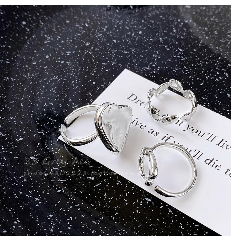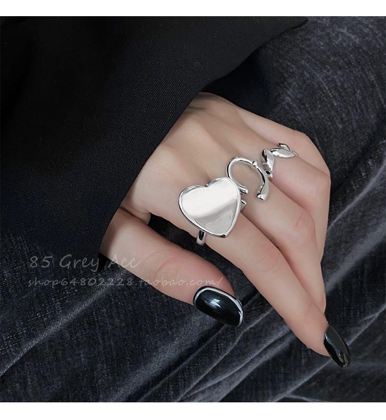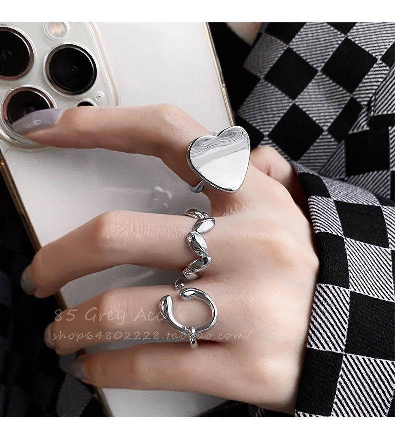 Anillo de hoja irregular para mujer, moda apilada, forma de C, amor, S925, anillo abierto de plata, dulce, fresco, con forma de comida, anillo de dedo, marea