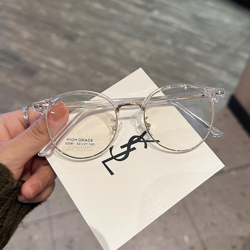 El nuevo marco de gafas Joker de moda retro de goma dorada con marco redondo de belleza se puede equipar con marco de gafas para miopía al por mayor