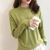 816 suéter verde para mujer otoño e invierno interior medio cuello alto camisa básica suelta adelgazante ropa exterior suéter de punto moda