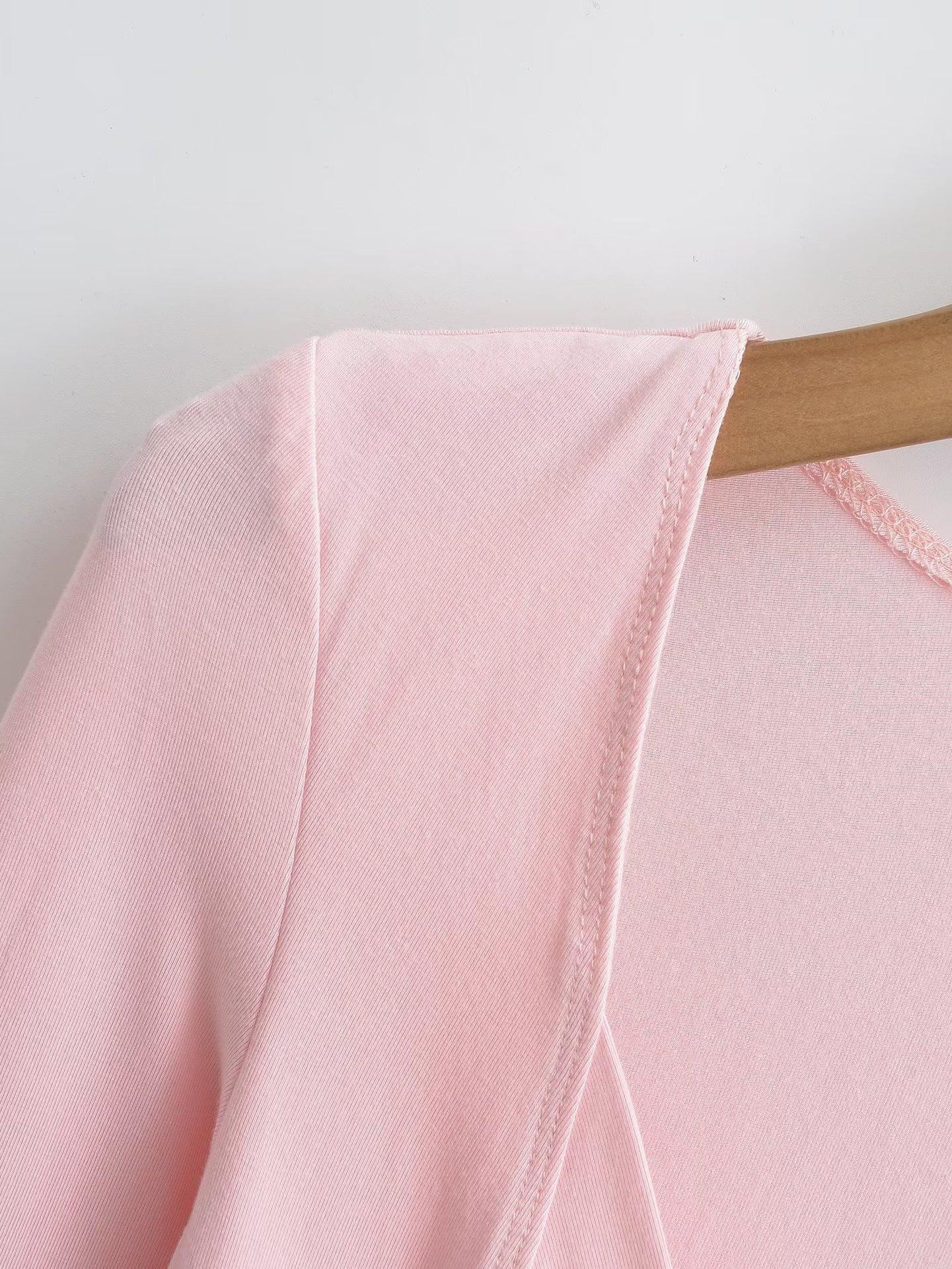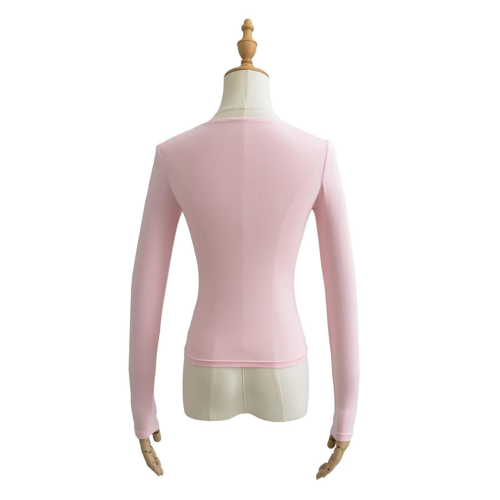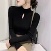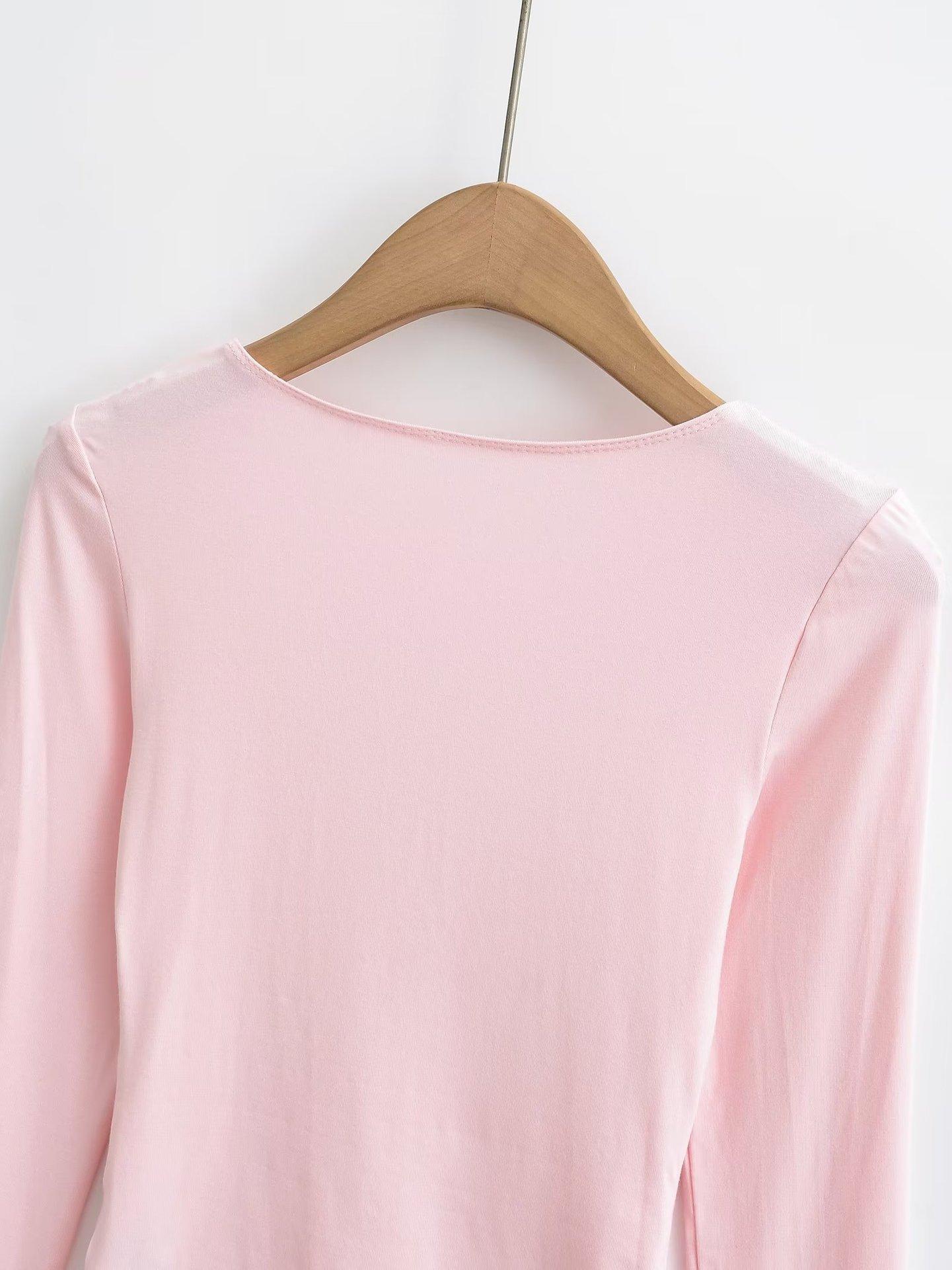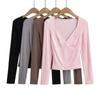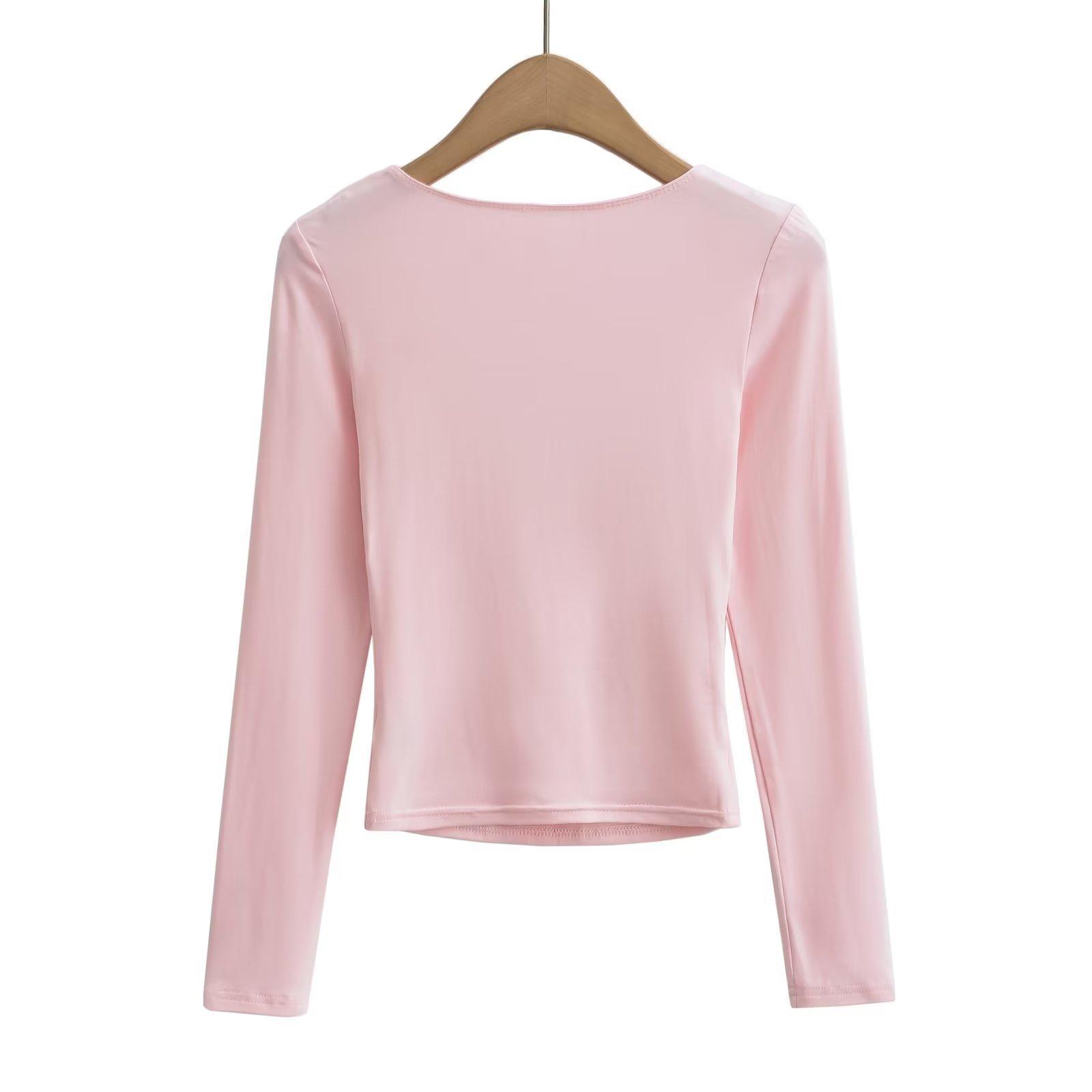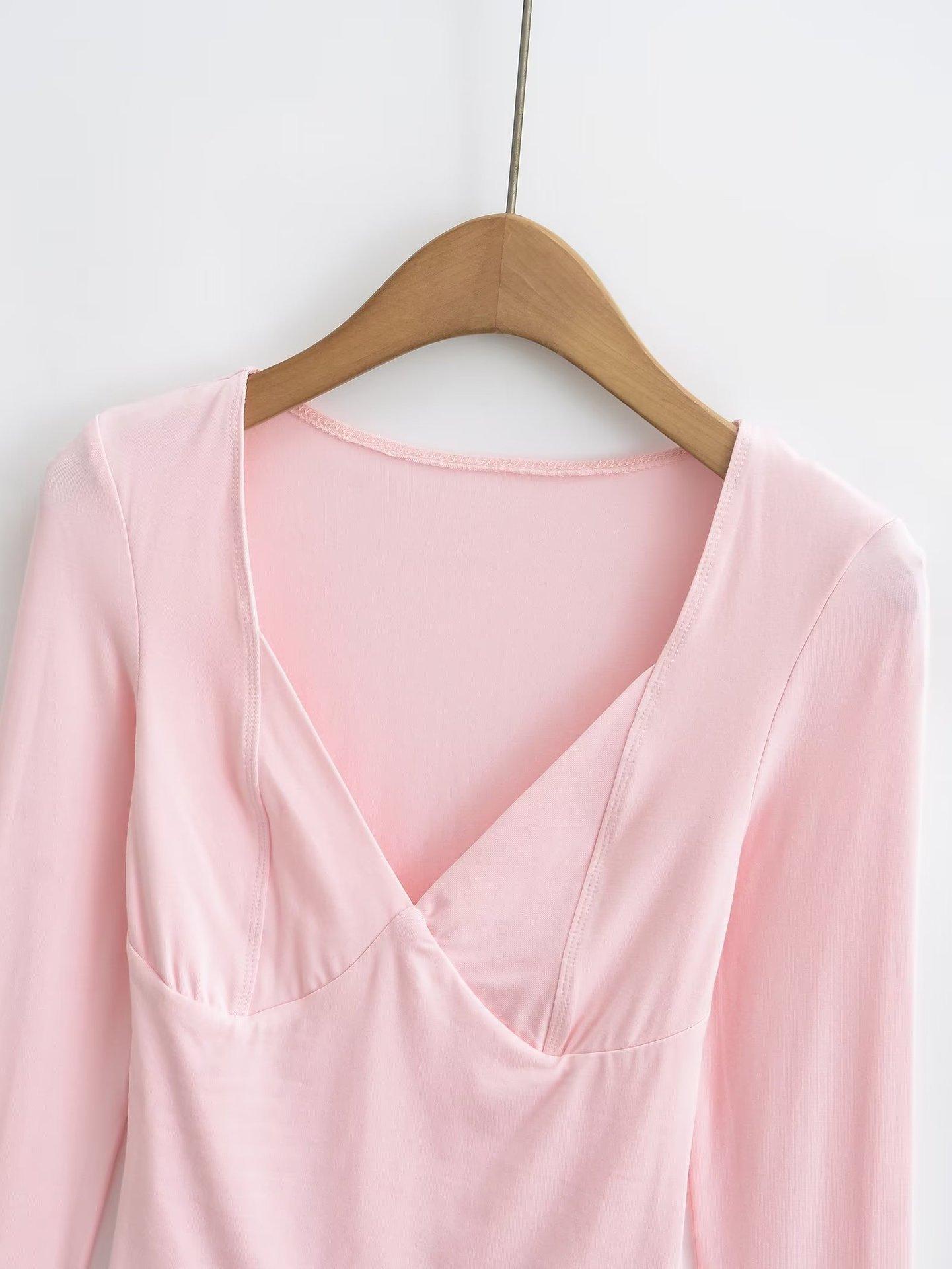 Otoño e invierno 2023 Nueva camiseta básica sexy de manga larga ajustada de color sólido con cuello en V profundo para mujer europea y americana