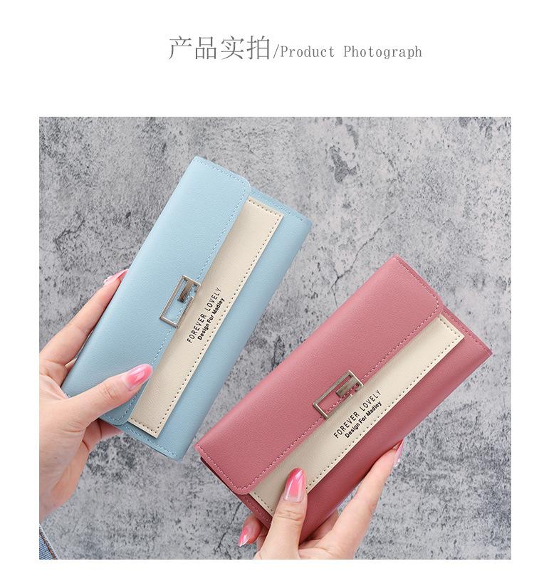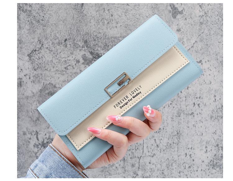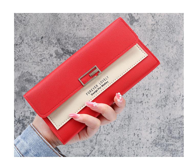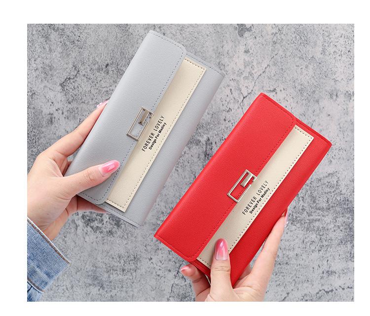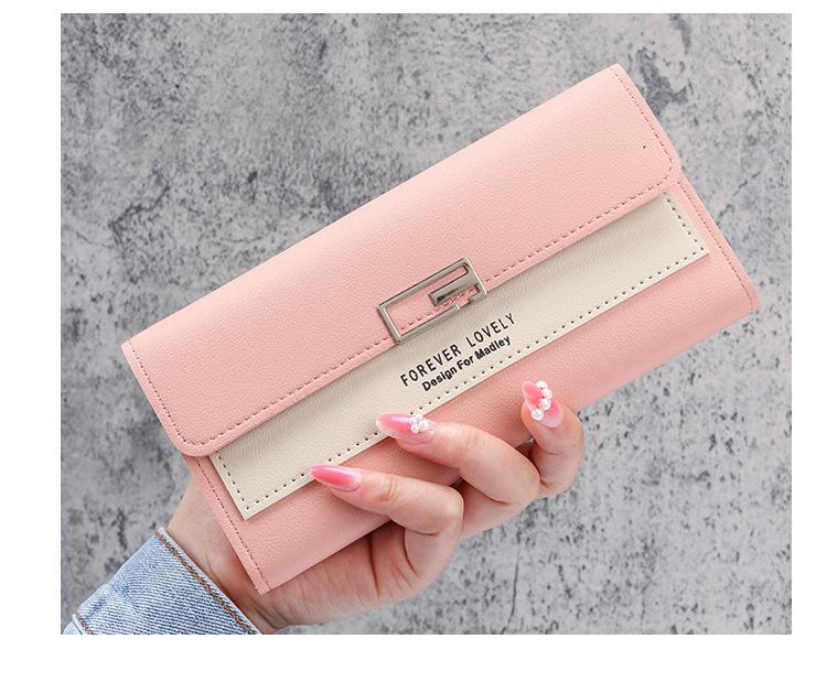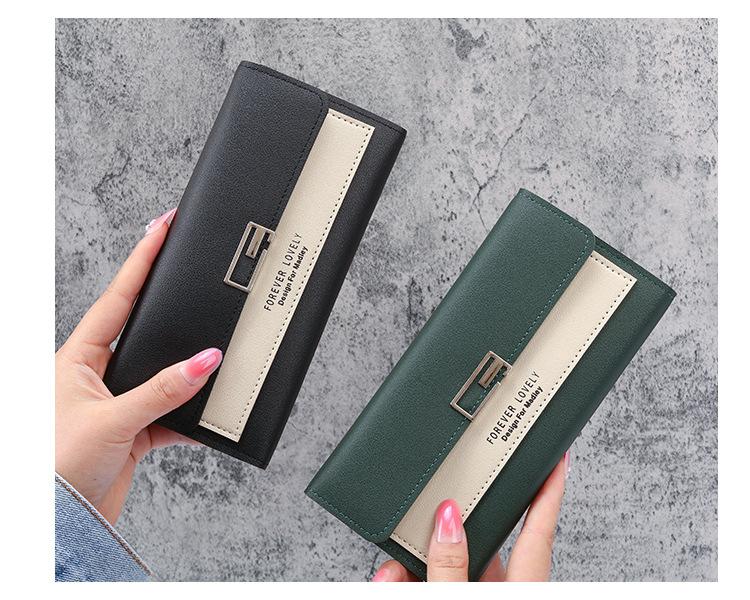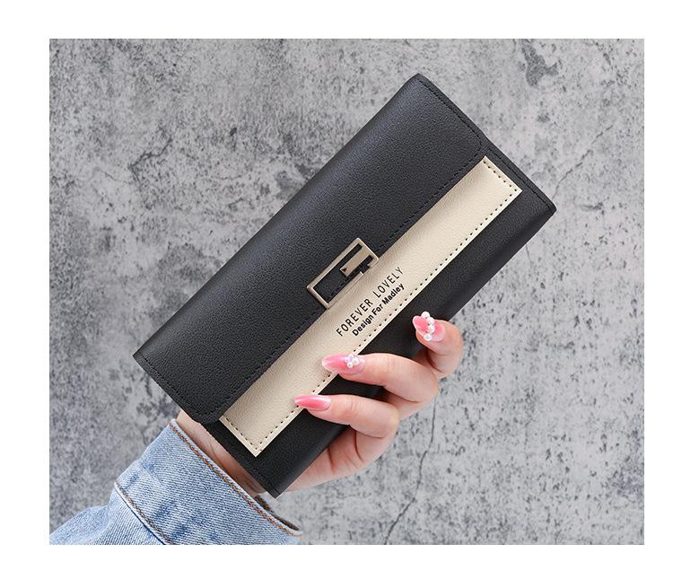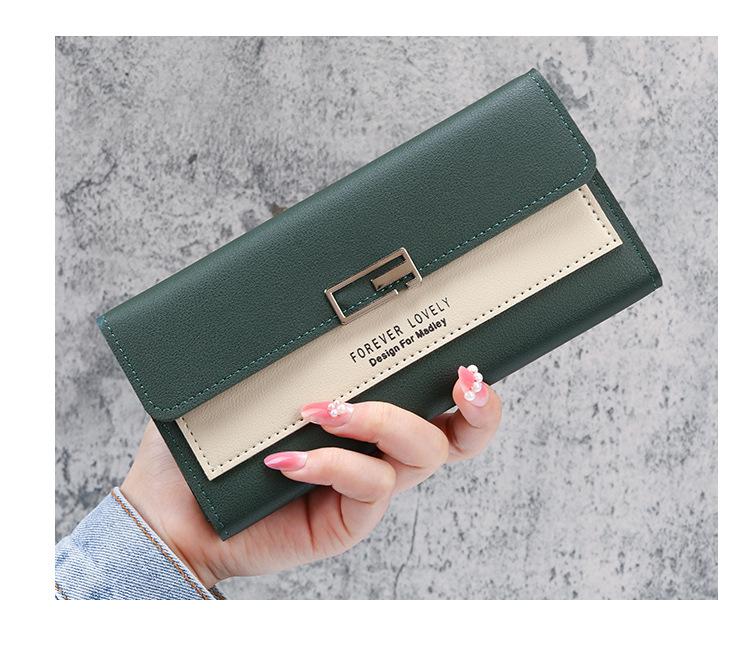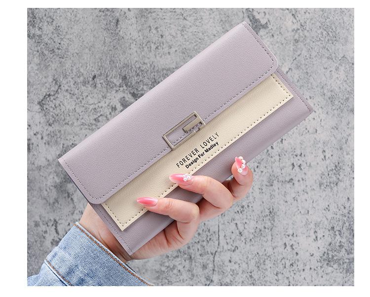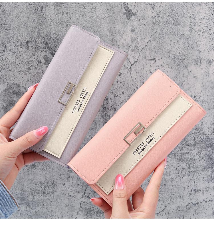 Cartera larga para mujer, 2021, nueva, con triple pliegue, multifunción, de piel sintética.