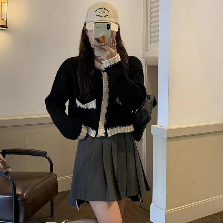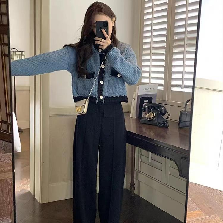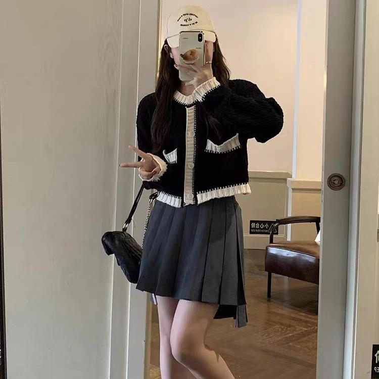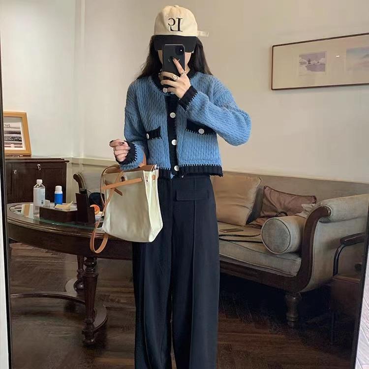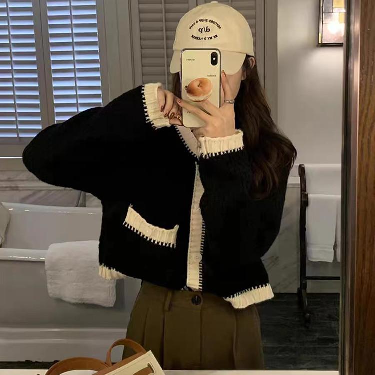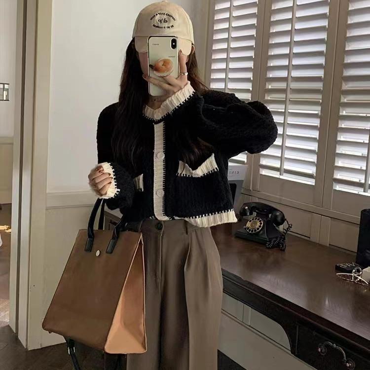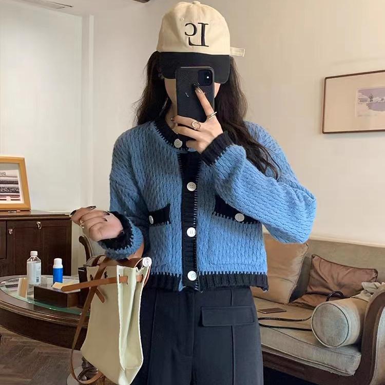 Cárdigan de punto estilo Chanel de estilo coreano para principios de otoño, nuevo suéter de temperamento de alta calidad a juego con colores adelgazantes, abrigo superior corto