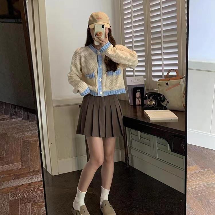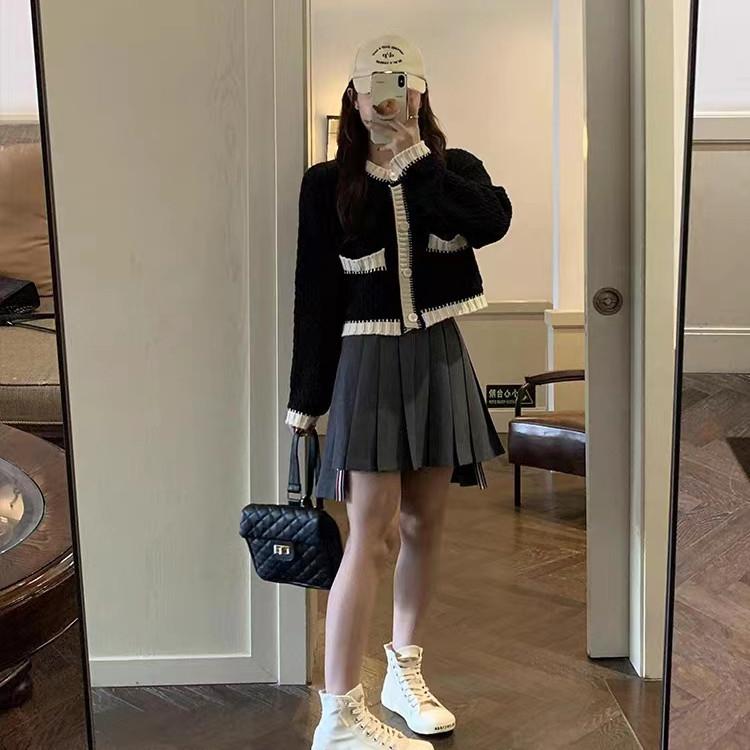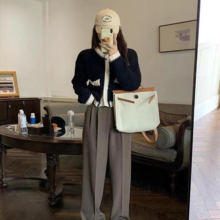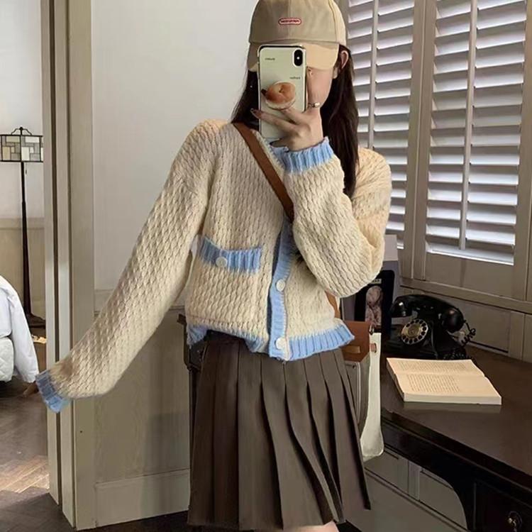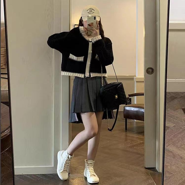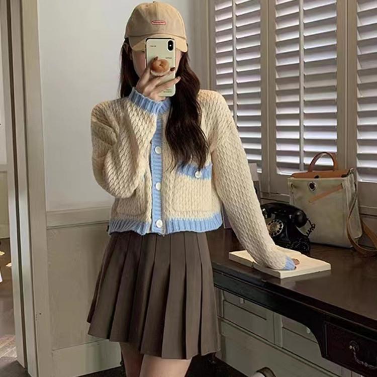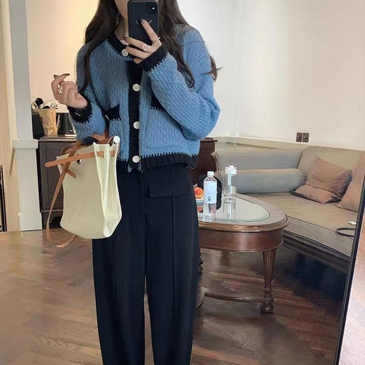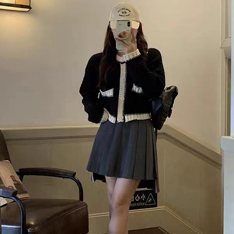 Cárdigan de punto estilo Chanel de estilo coreano para principios de otoño, nuevo suéter de temperamento de alta calidad a juego con colores adelgazantes, abrigo superior corto