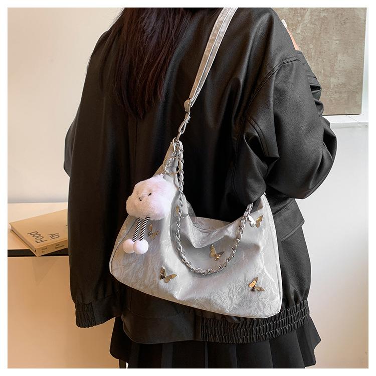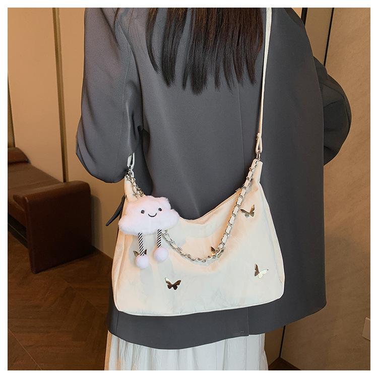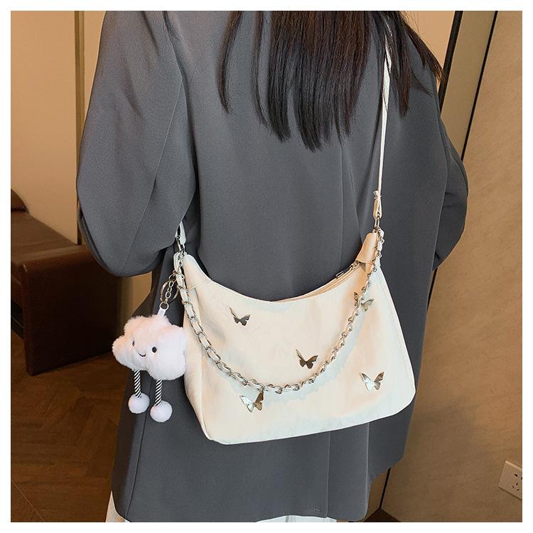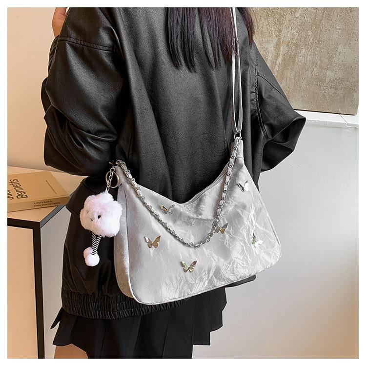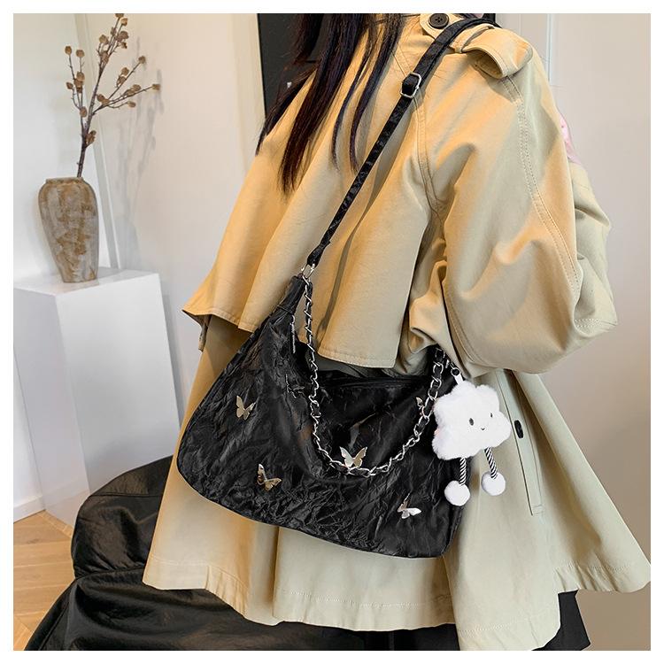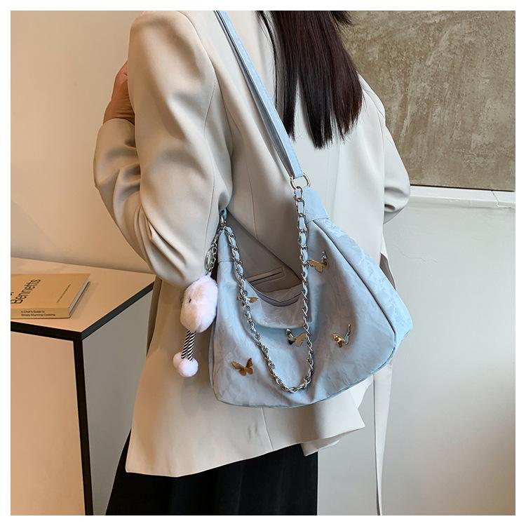 Bolso de viaje con diseño de mariposa de gran capacidad para mujer, nuevo bolso de hombro de moda combinable con todo, bolso cruzado con cadena textil, 2024