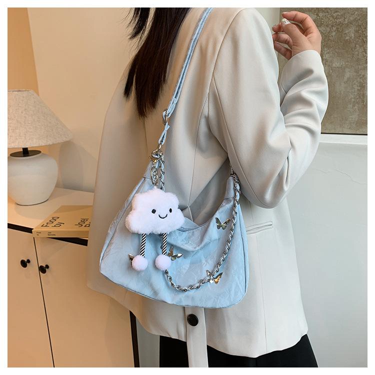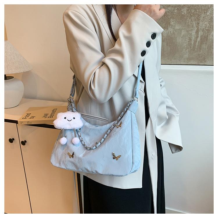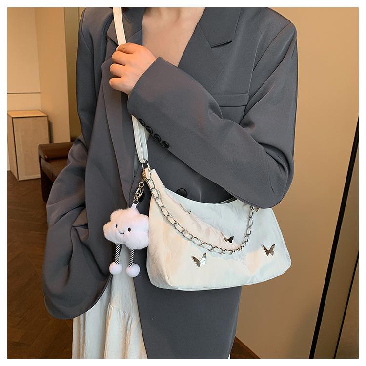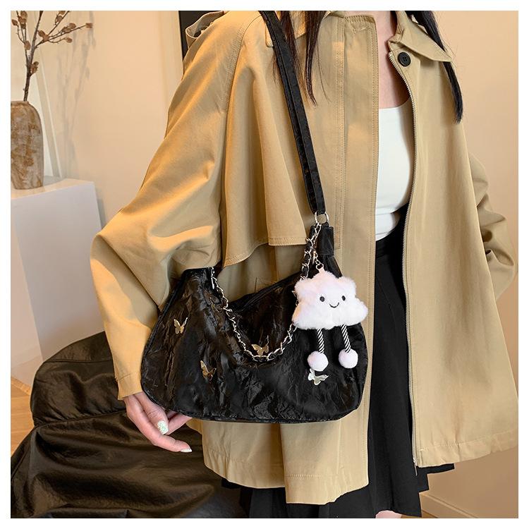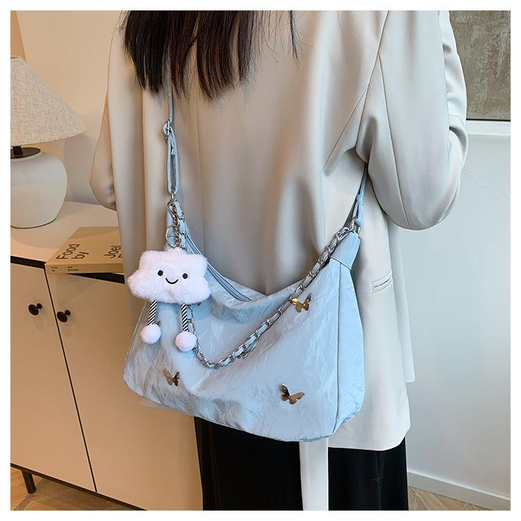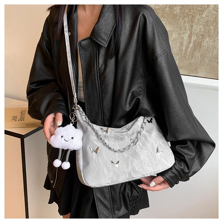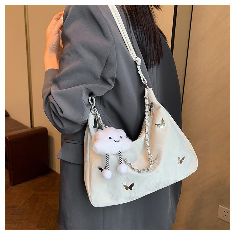 Bolso de viaje con diseño de mariposa de gran capacidad para mujer, nuevo bolso de hombro de moda combinable con todo, bolso cruzado con cadena textil, 2024