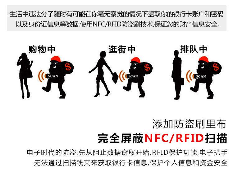 Bolsa para tarjetas antirrobo de gran capacidad, antimagnética y con cepillo para múltiples tarjetas, para hombres y mujeres, con protección NFC
