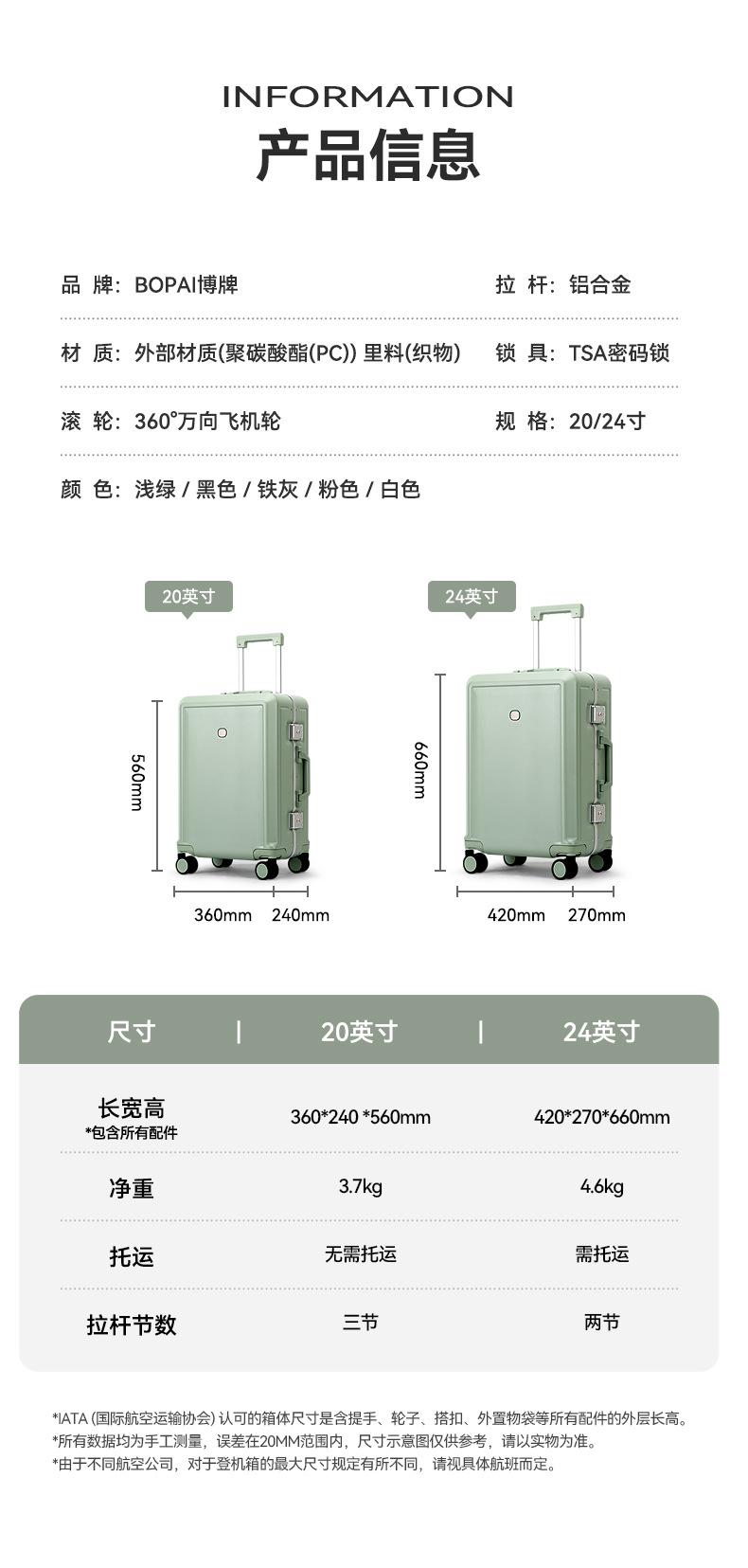 Maleta con ruedas para PC con marco de aluminio y cerradura de aduanas de 20 pulgadas, maleta de negocios silenciosa con ruedas universales de gran capacidad de 24 pulgadas, marca Bo