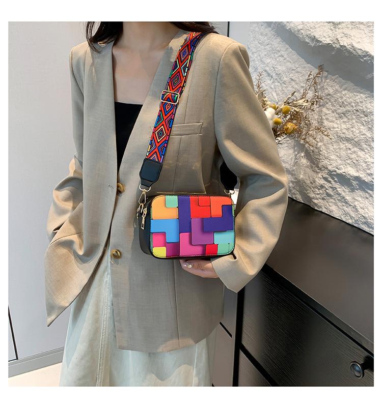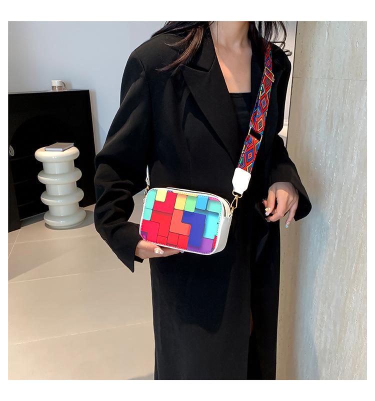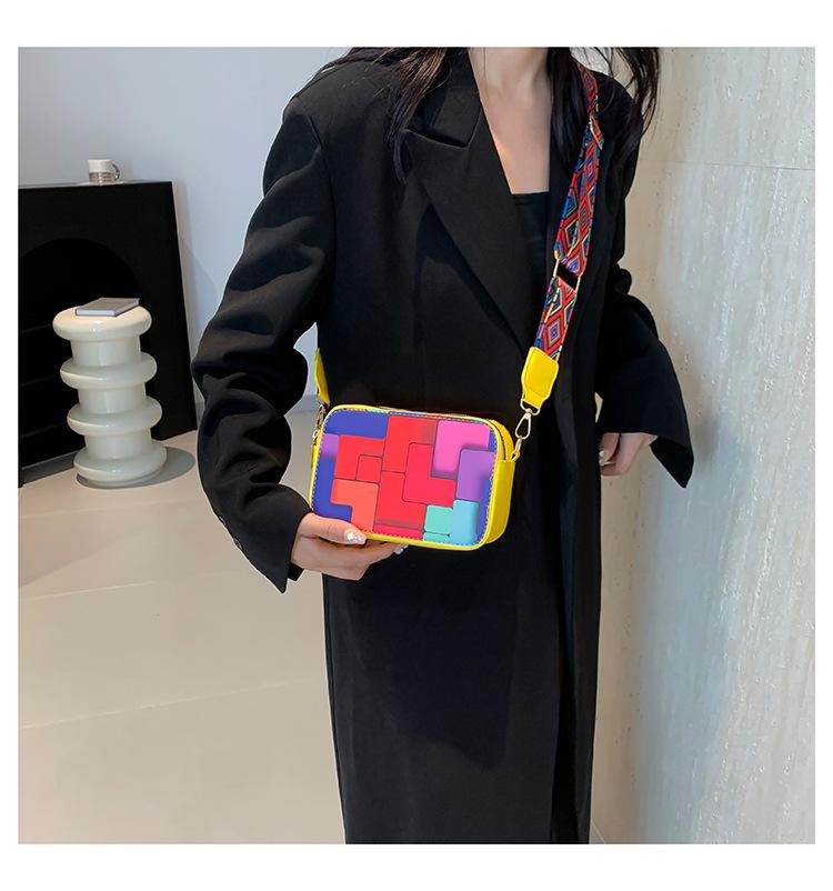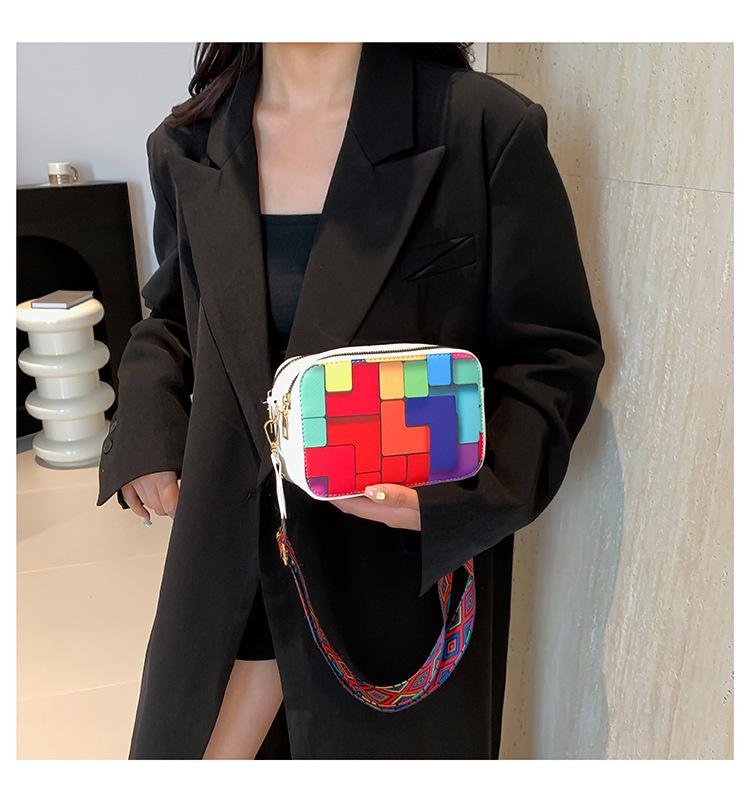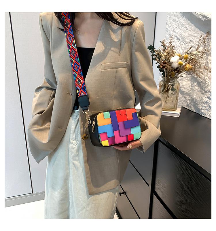 Bolso pequeño y elegante para mujer, bolso de hombro cuadrado pequeño, sencillo y moderno, estilo coreano, estilo informal, con contraste, 2024
