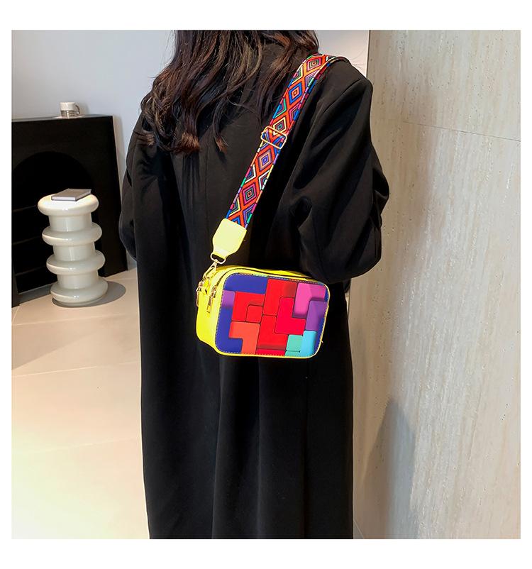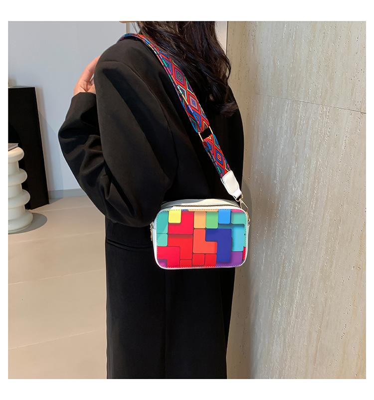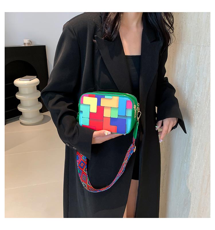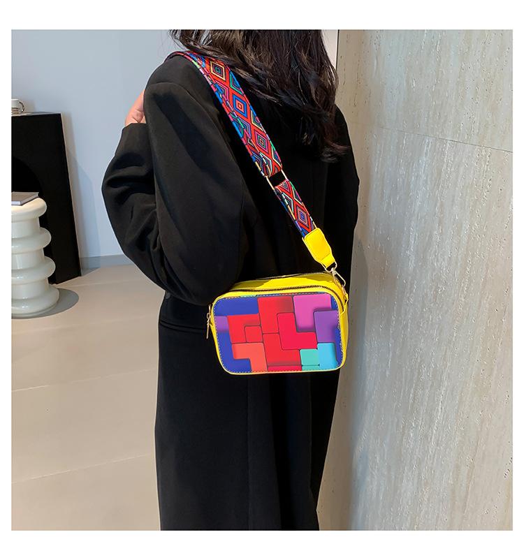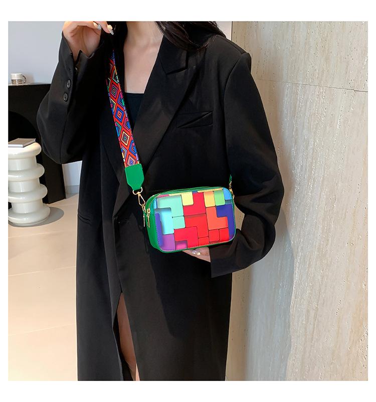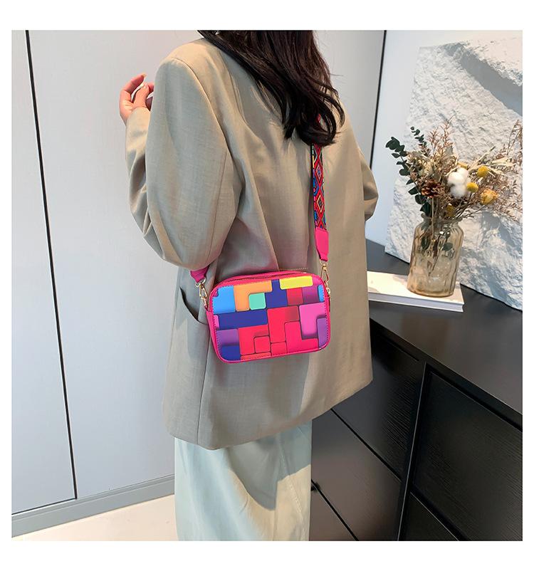 Bolso pequeño y elegante para mujer, bolso de hombro cuadrado pequeño, sencillo y moderno, estilo coreano, estilo informal, con contraste, 2024