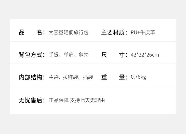 Bolsa de Viaje de Moda Simple de Gran Capacidad Bolsa de Almacenamiento Portátil Bolsa Deportiva de Moda para Fitness Bolsa de Equipaje de Viaje Casual para Mujer