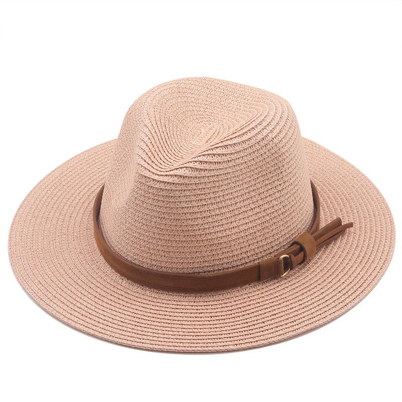Sombrero de copa Panamá Jazz con cinturón de paja para hombre y mujer, moda de primavera y verano, combina con todo, para vacaciones en la playa, sombrero de paja, estilo coreano.