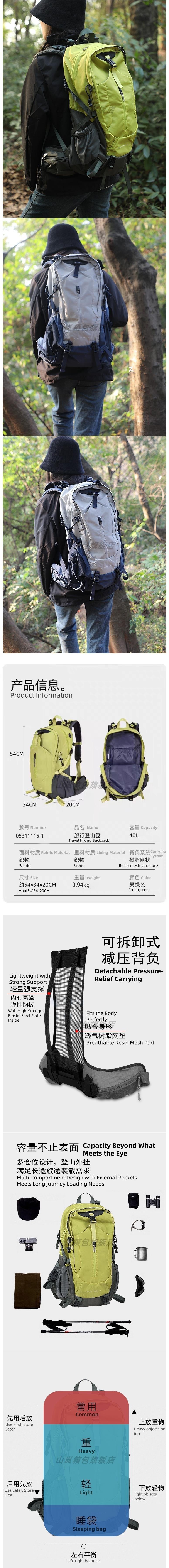 Fruit green#2027 40l comes with a rain cover and a pressure-reducing backpack, High-grade gray # 2027 40l come...