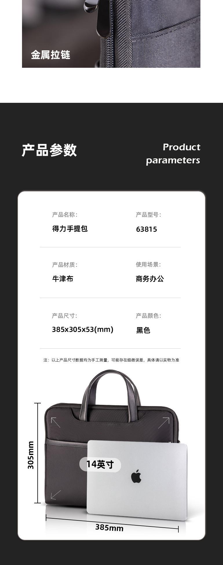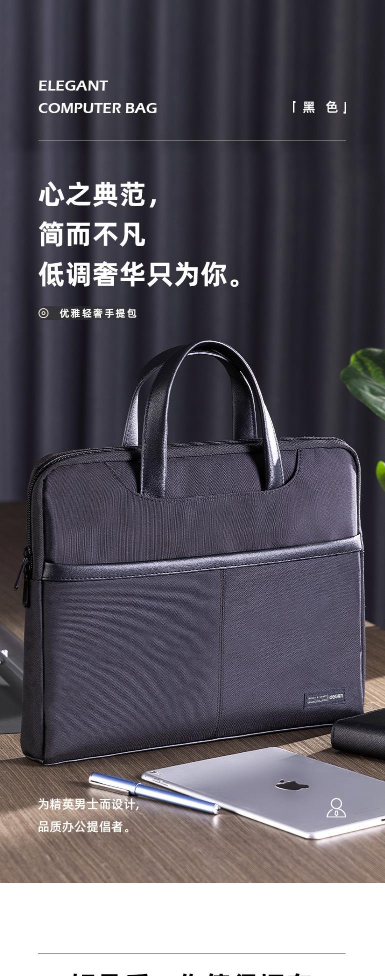 Portafolio Deli 63815 Diseño Simple Negro Multibolsillo Bolsa para Archivos Reunión Oficina Negocios Datos Bolsa para Cosméticos