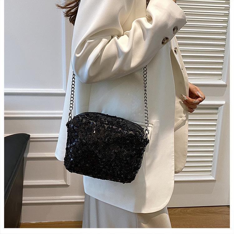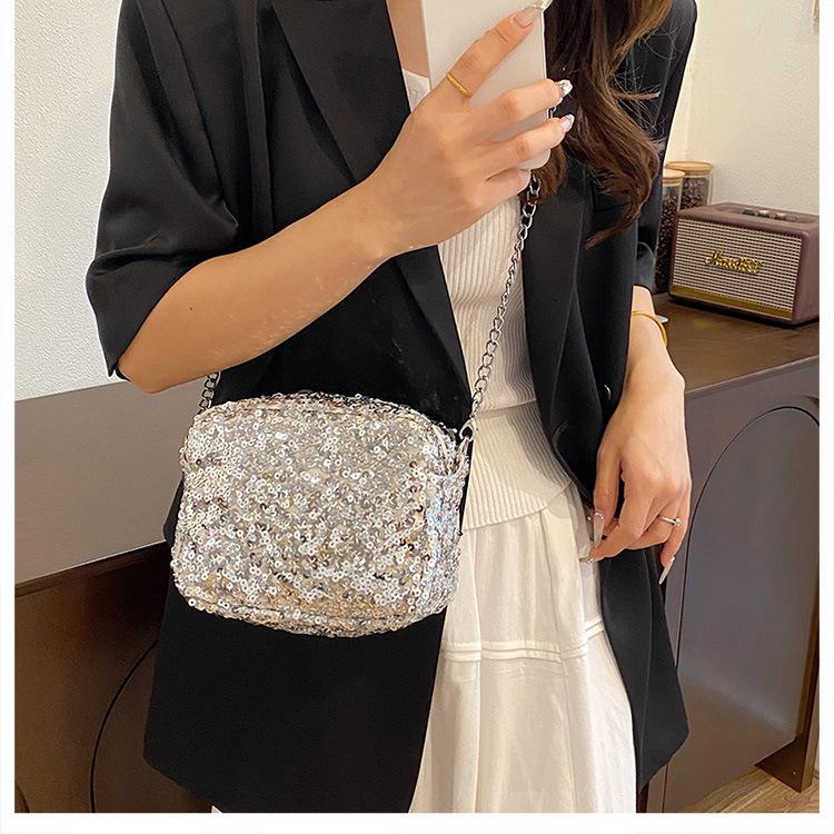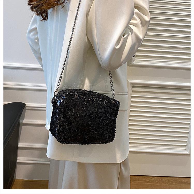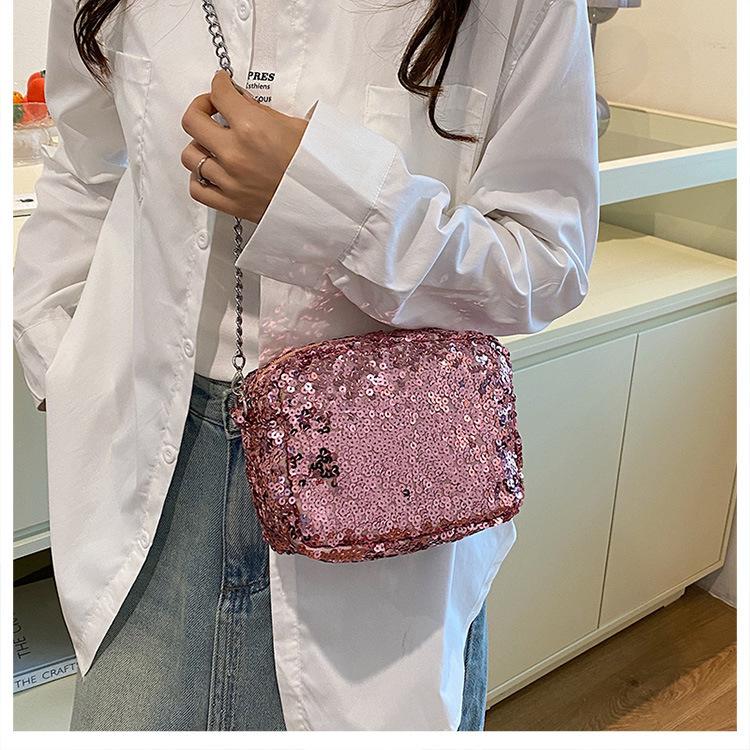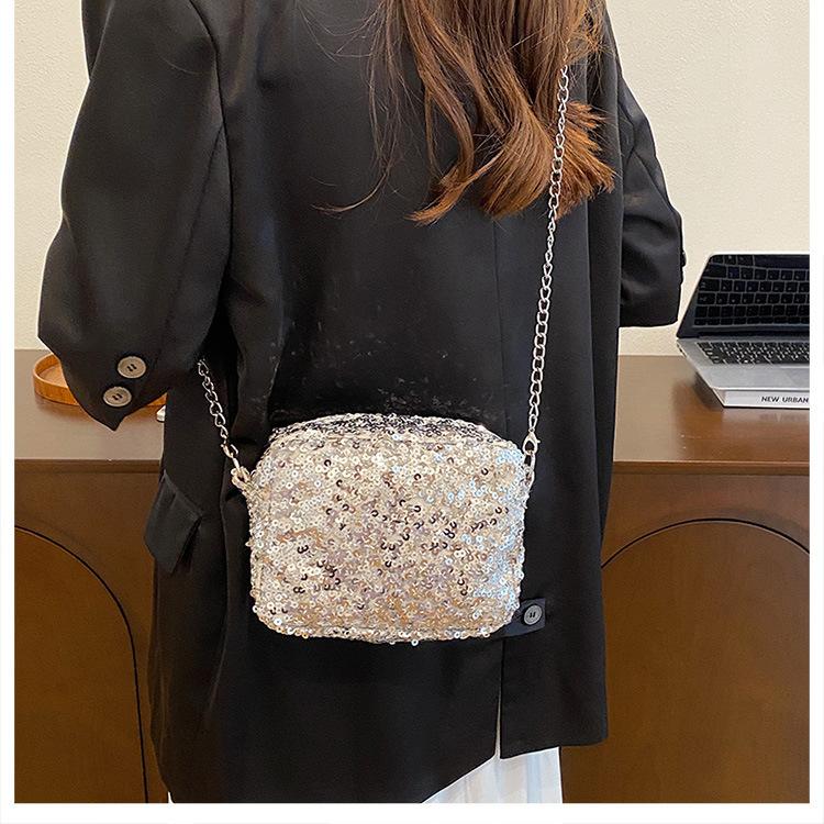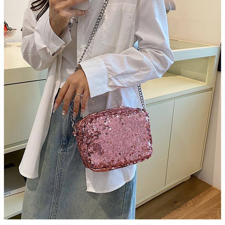Bolso pequeño con lentejuelas para mujer, novedad de verano 2024, bandolera informal con cadena sencilla y texturizada, bolso cuadrado pequeño a la moda.