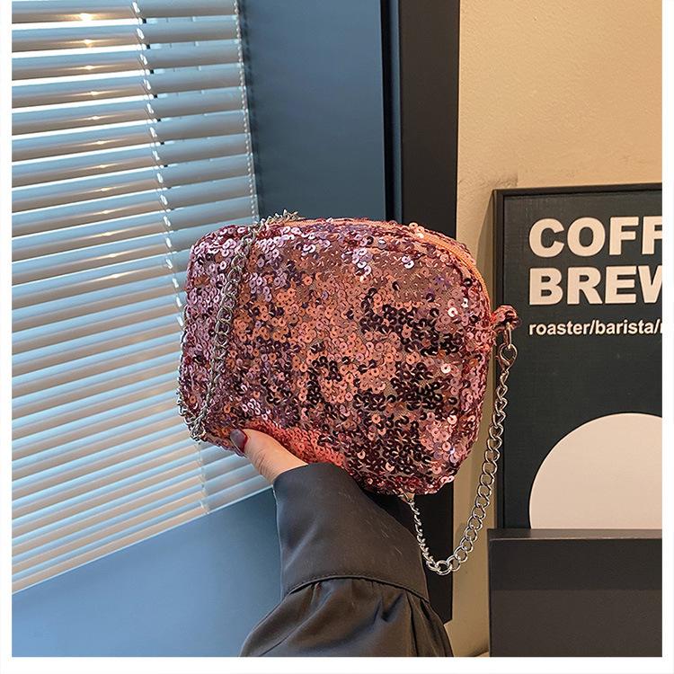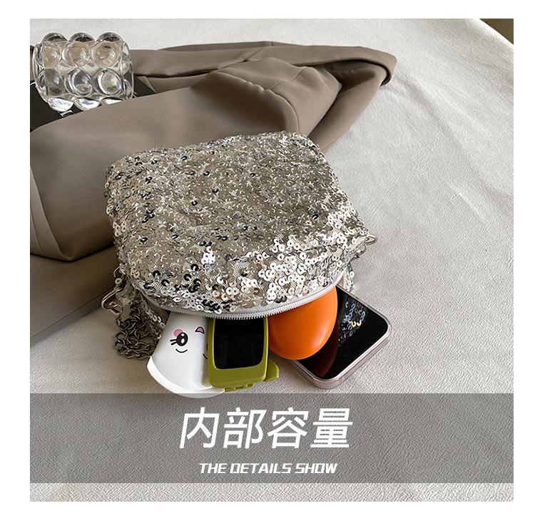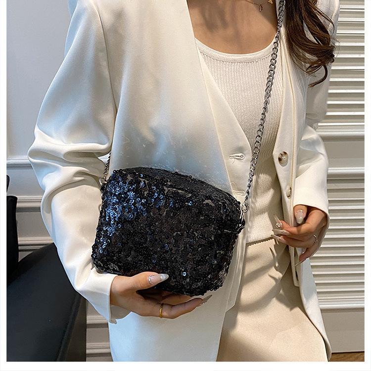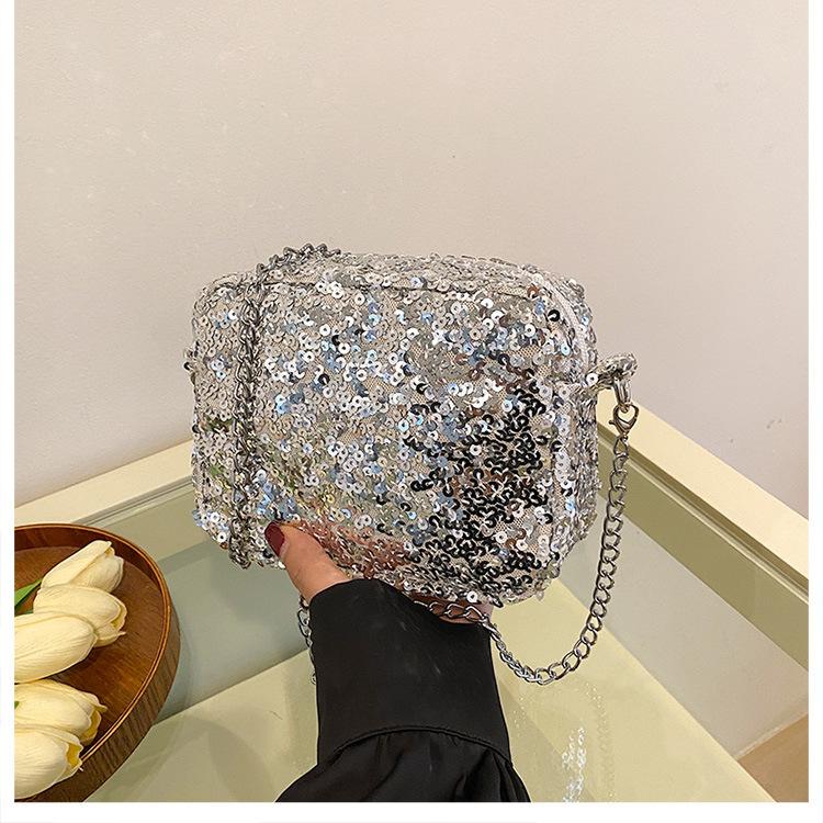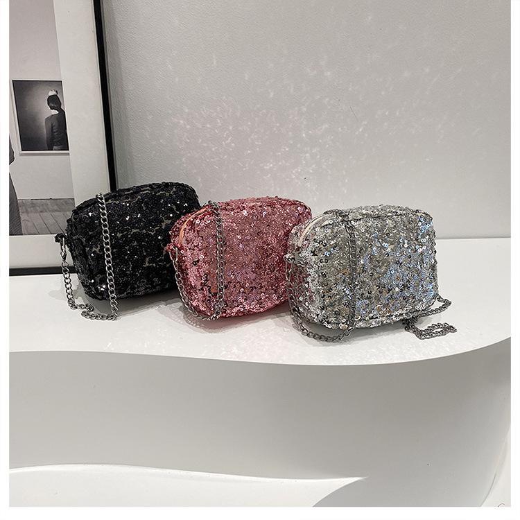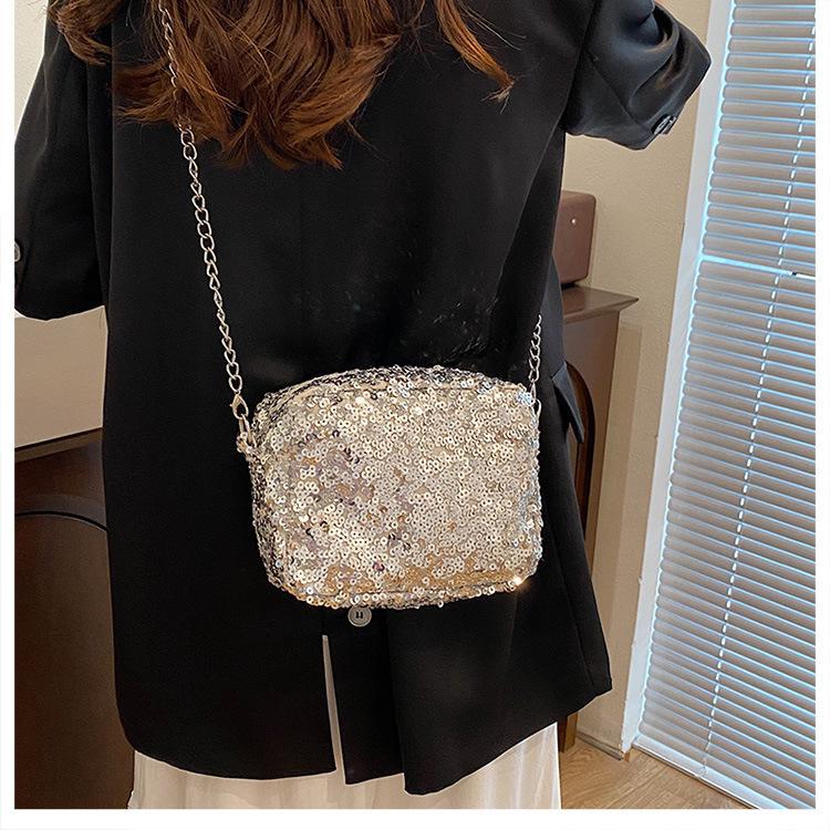 Bolso pequeño con lentejuelas para mujer, novedad de verano 2024, bandolera informal con cadena sencilla y texturizada, bolso cuadrado pequeño a la moda.