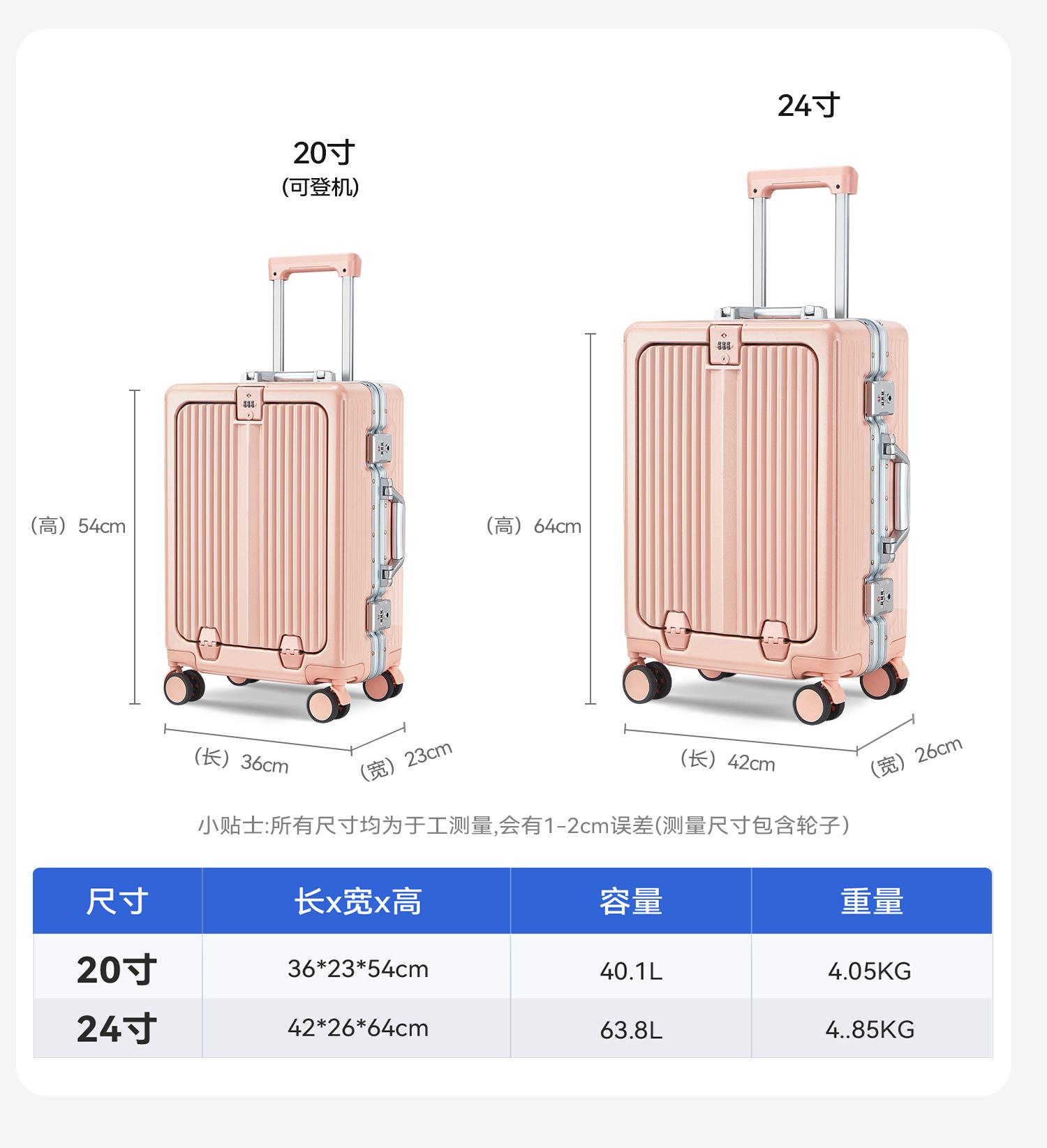 Franqueo una generación de equipaje caja de embarque de 20 pulgadas marco de aluminio contraseña maleta de equipaje de 24 pulgadas maleta anticaída silenciosa