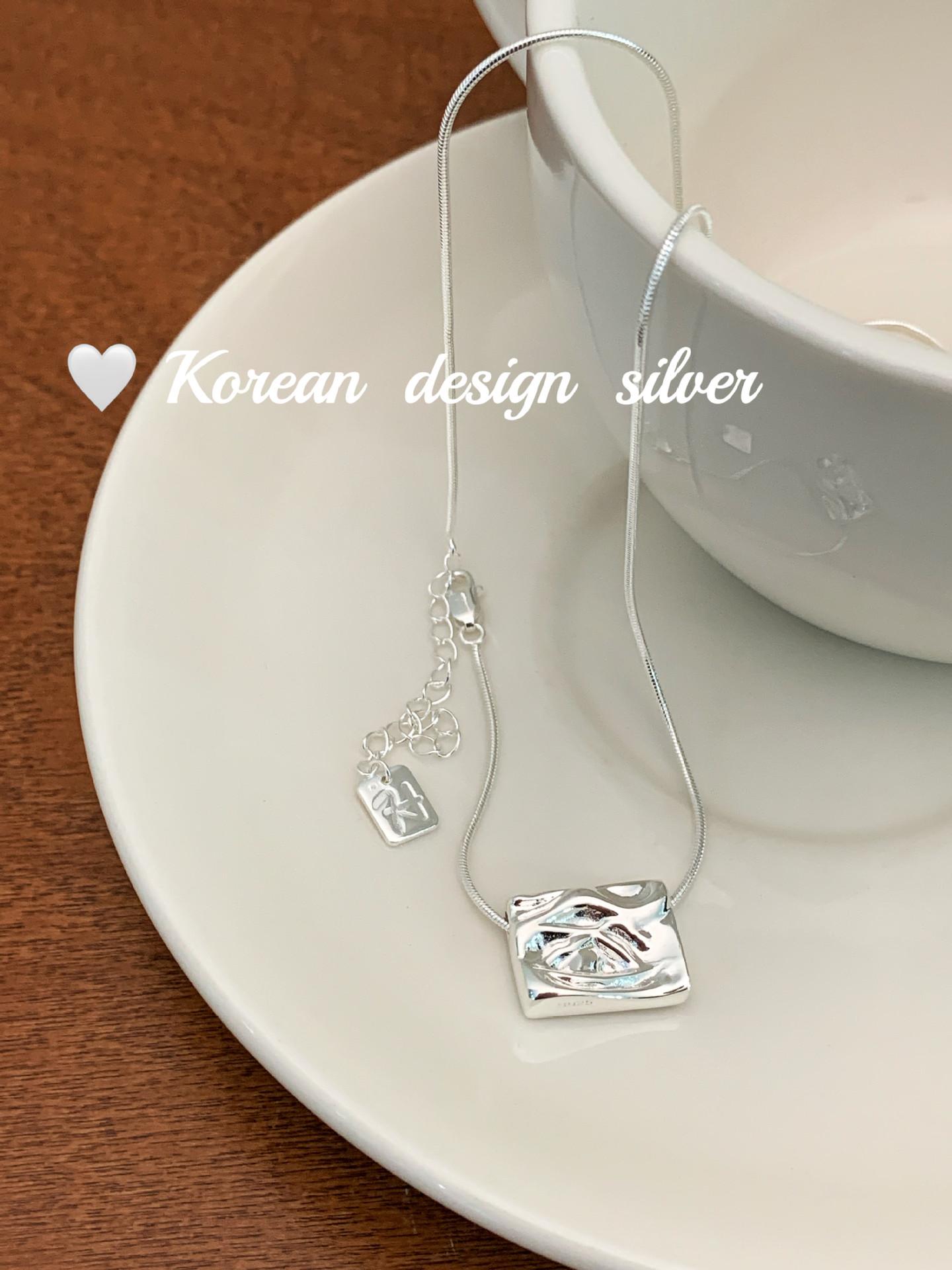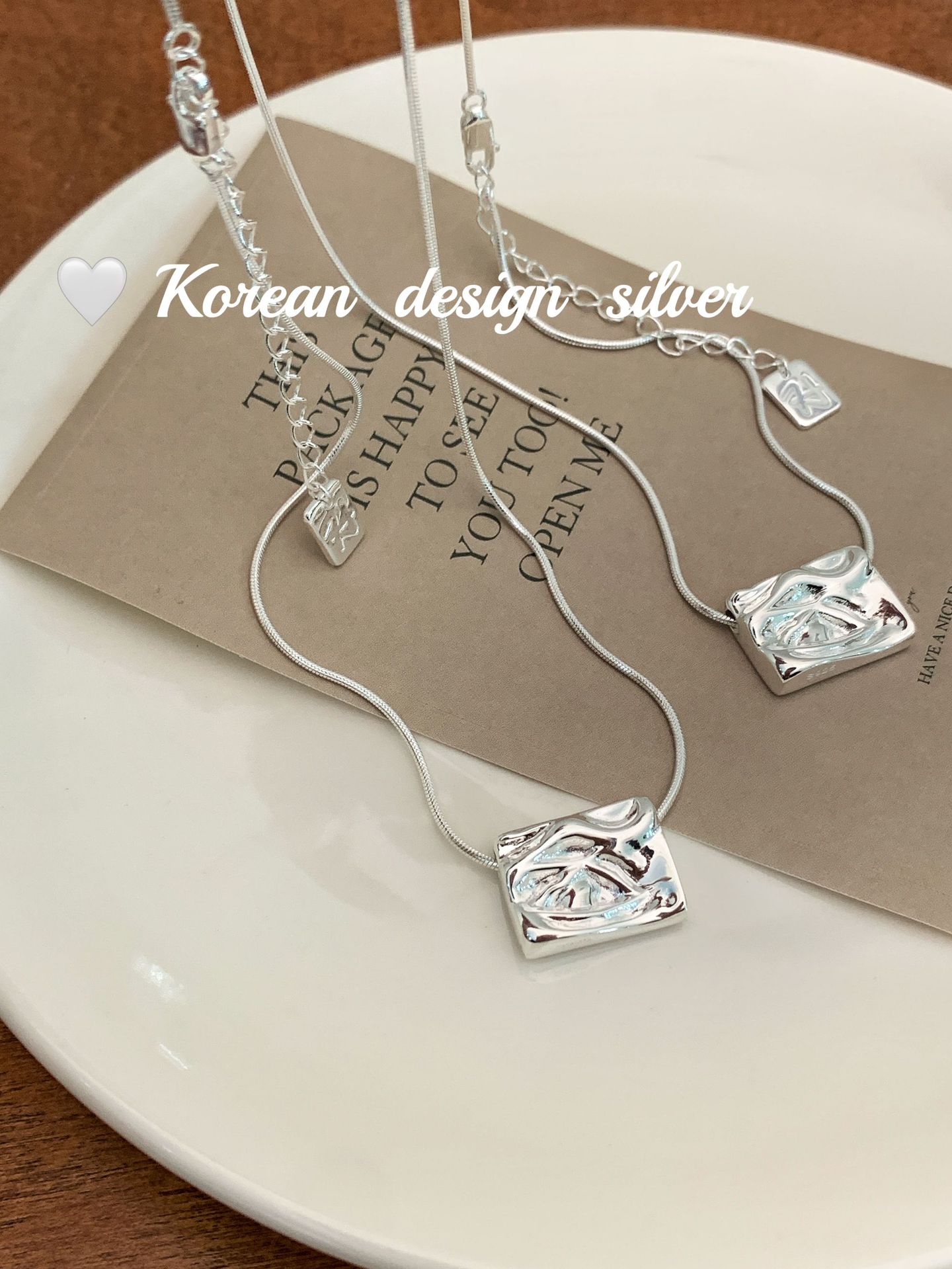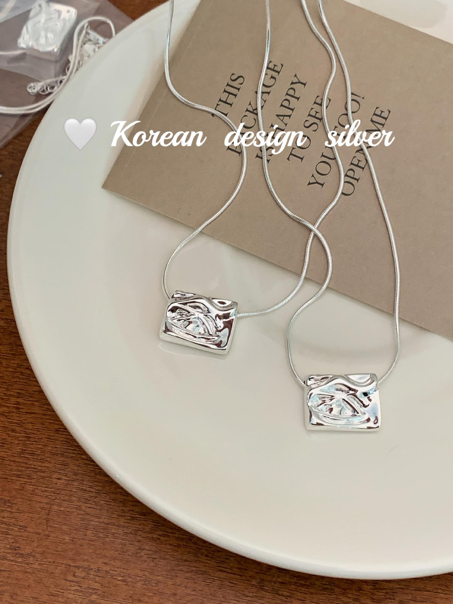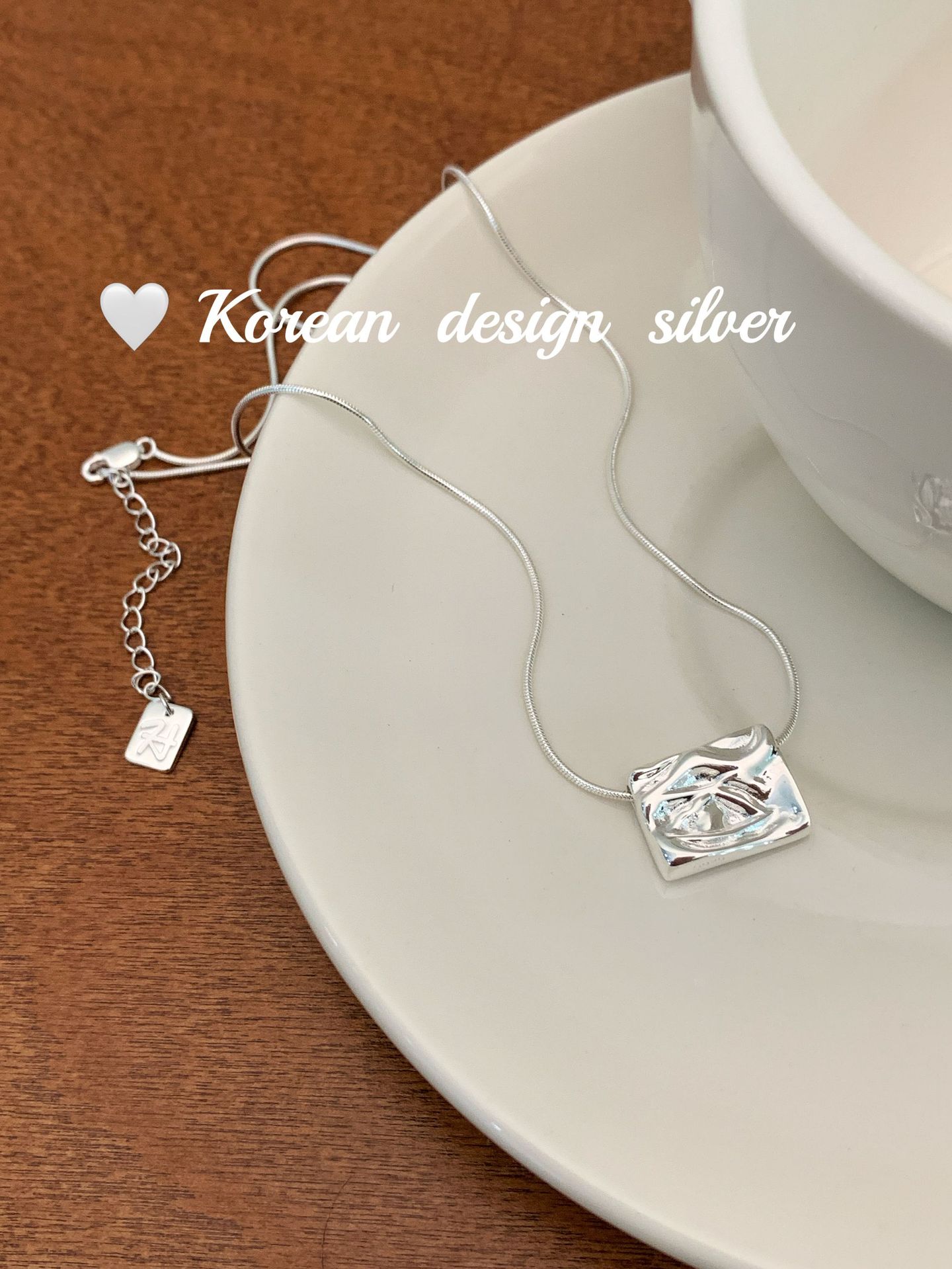 Collar de plata de ley S925 con diseño de nicho de estilo coreano, diseño cuadrado irregular simple, de alta gama, combina con todo, para mujer.