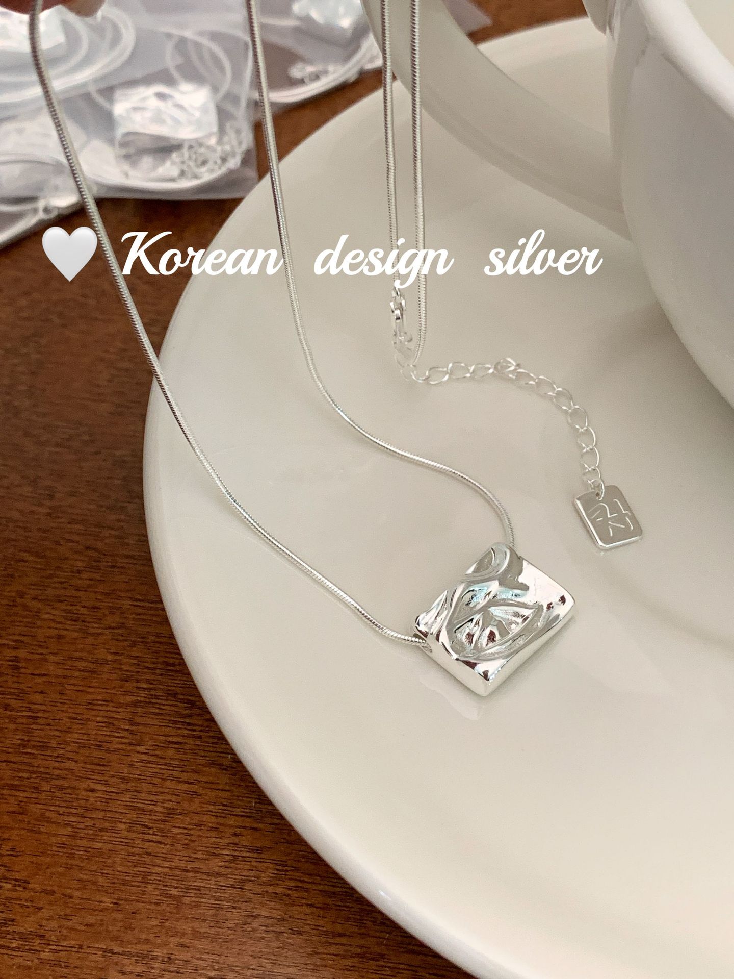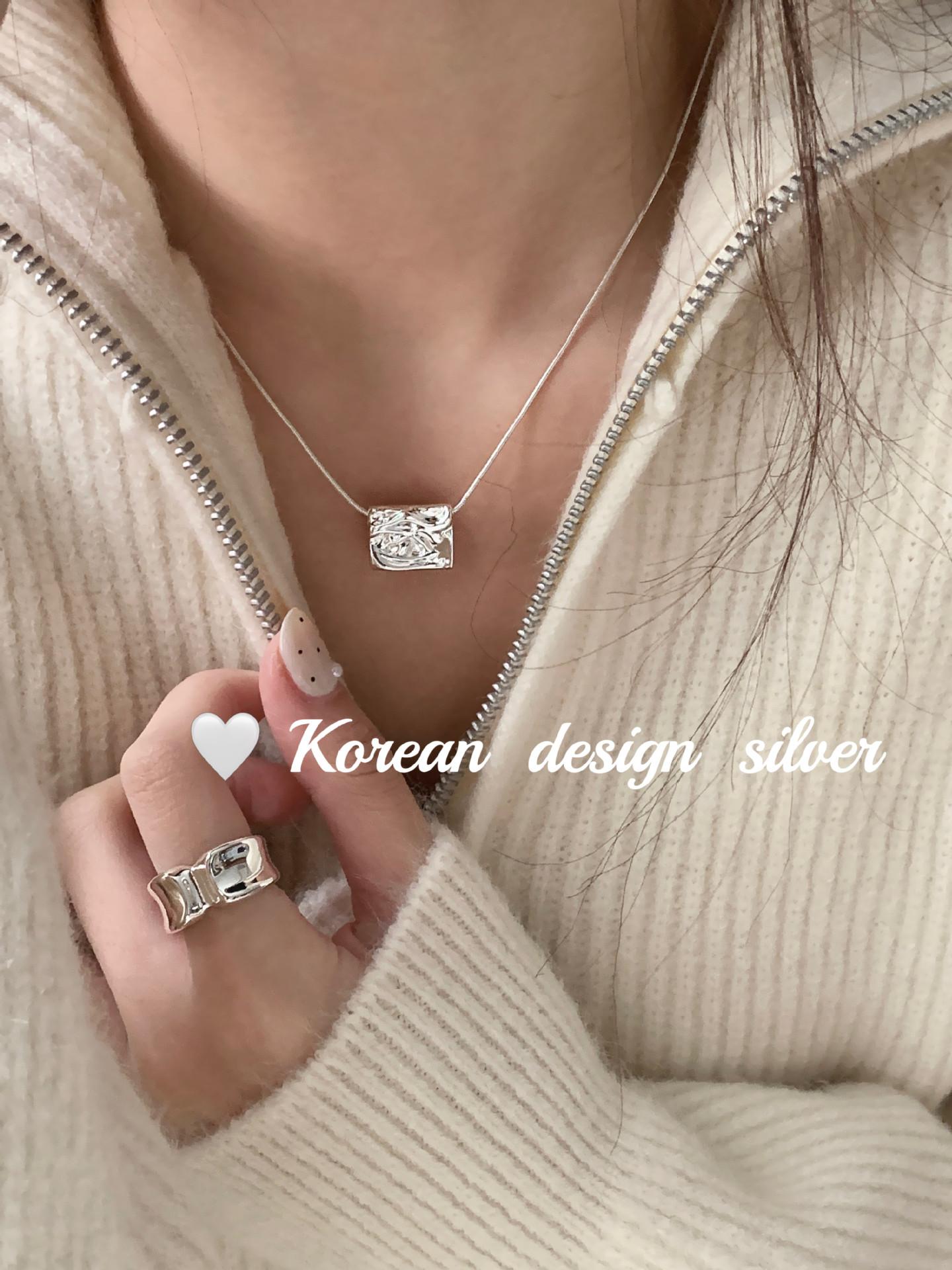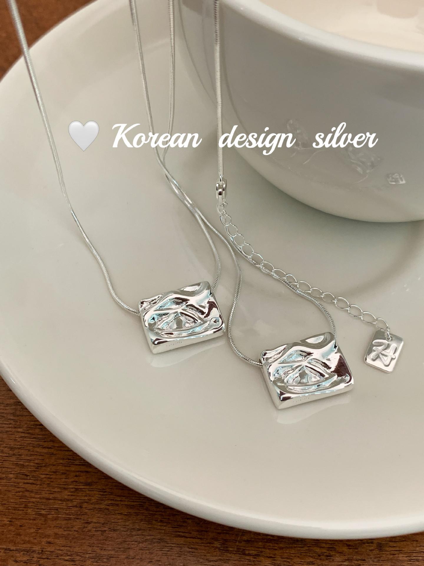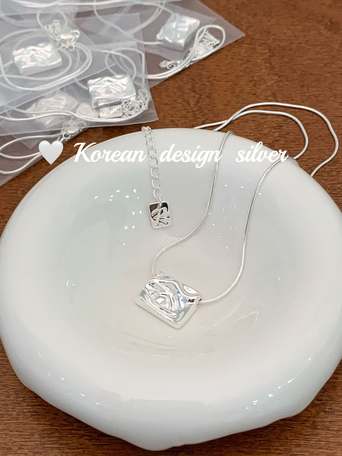 Collar de plata de ley S925 con diseño de nicho de estilo coreano, diseño cuadrado irregular simple, de alta gama, combina con todo, para mujer.