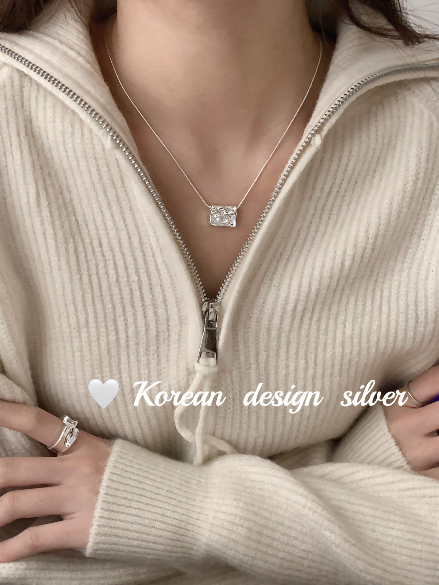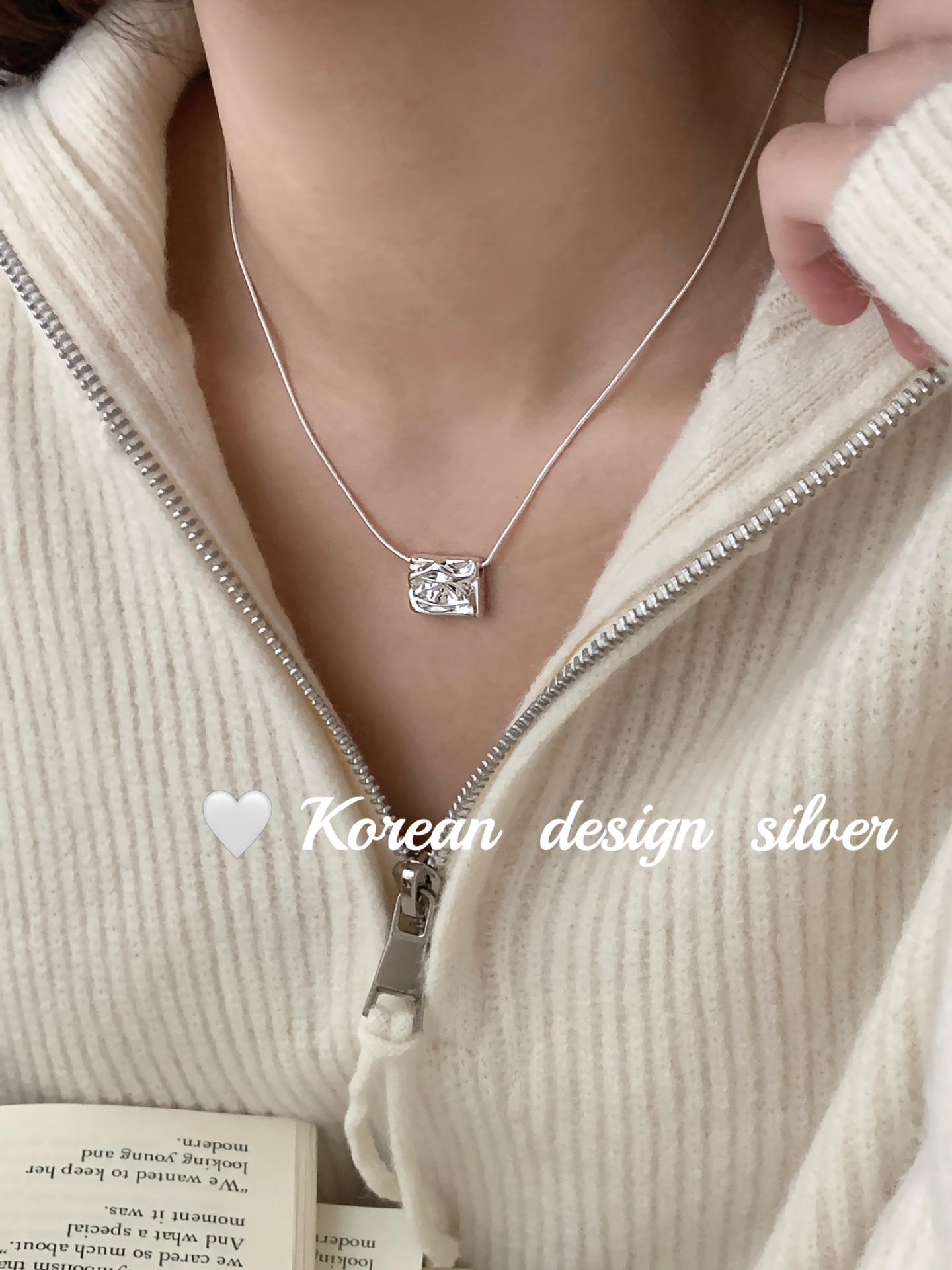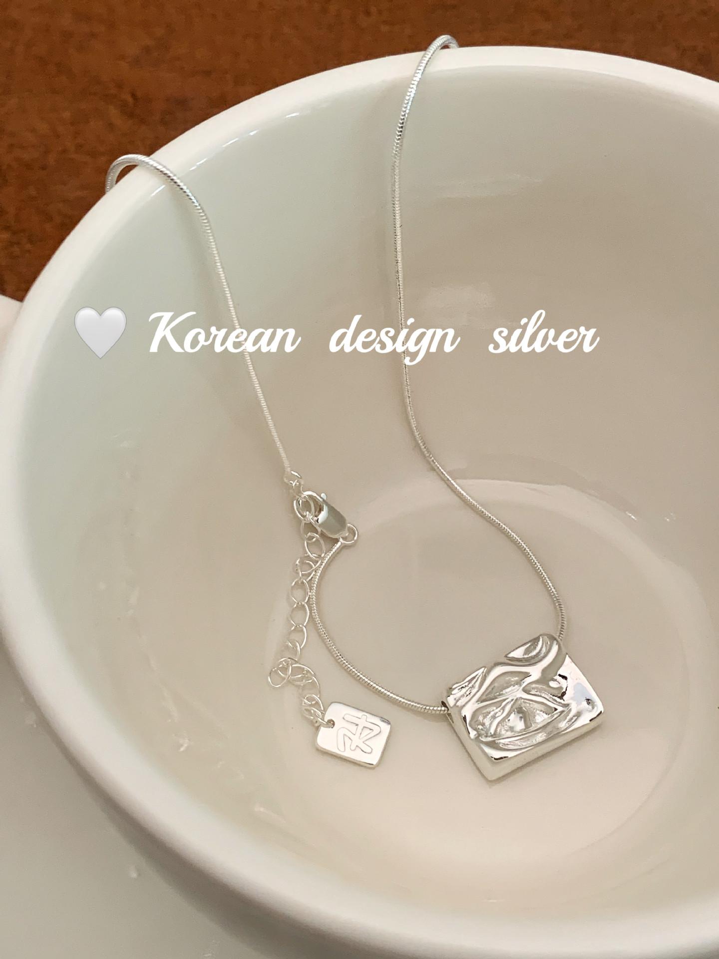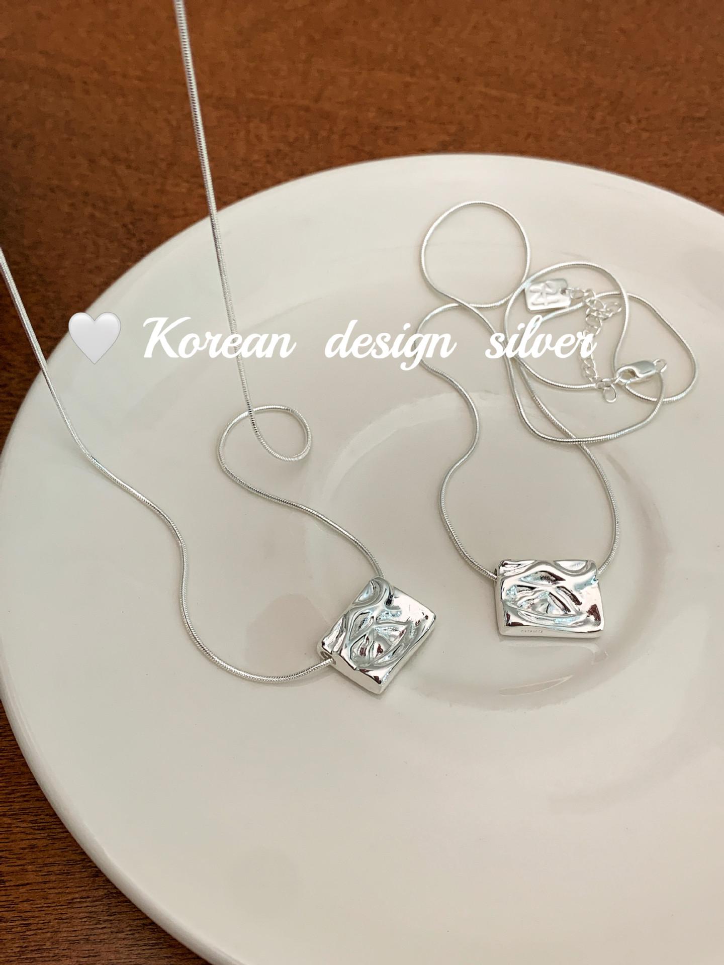 Collar de plata de ley S925 con diseño de nicho de estilo coreano, diseño cuadrado irregular simple, de alta gama, combina con todo, para mujer.