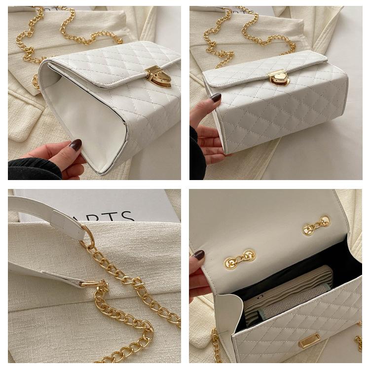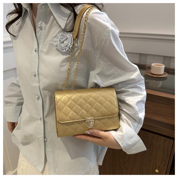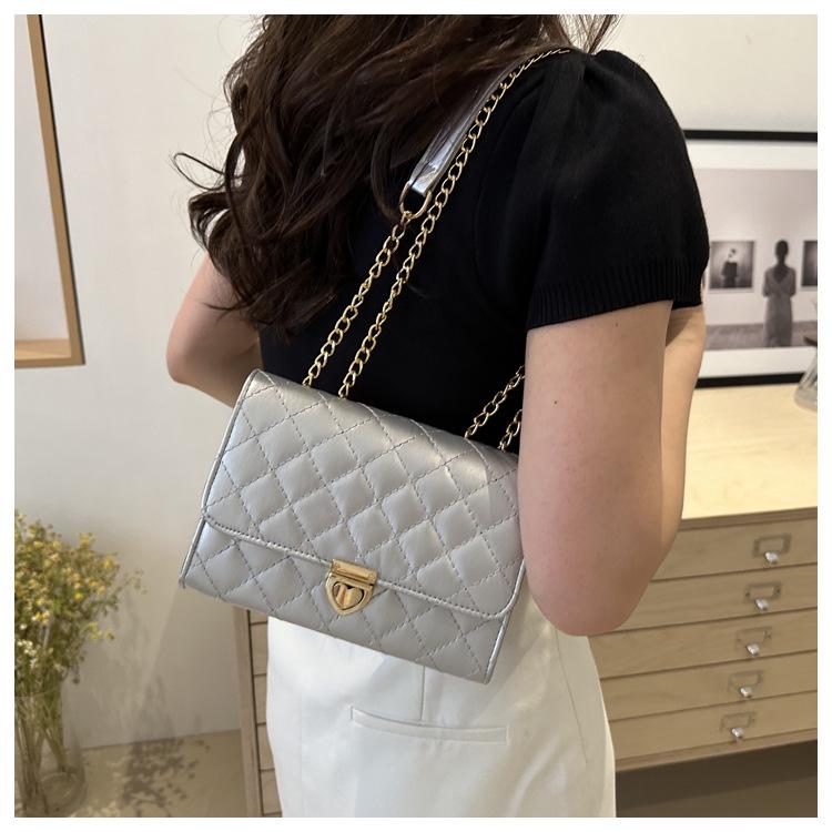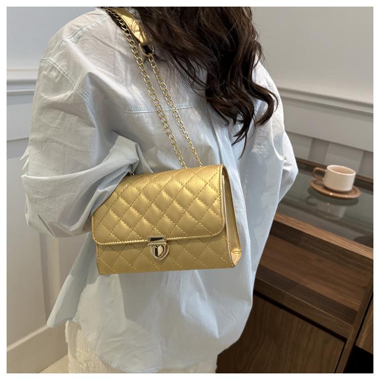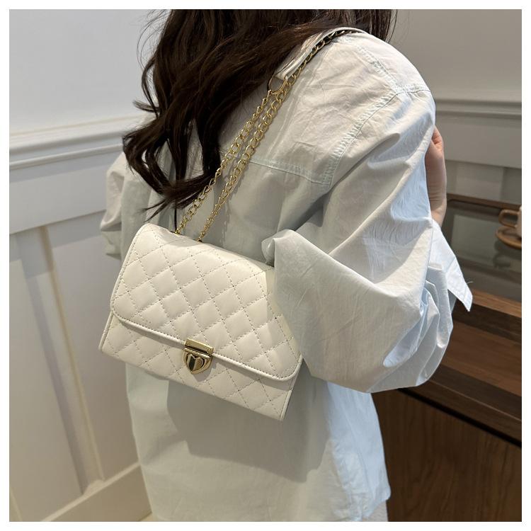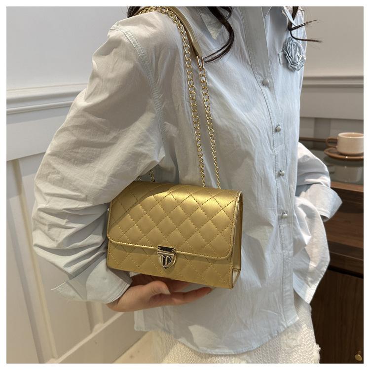 Bolso con bordado de diamantes, novedad de 2024, para mujer, popular bolso cruzado con cadena de color liso, moderno bolso de hombro bajo el brazo, pequeño bolso cuadrado.