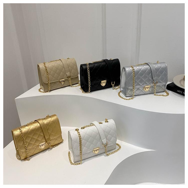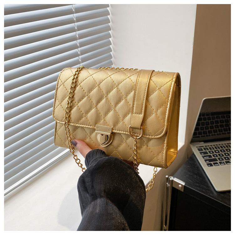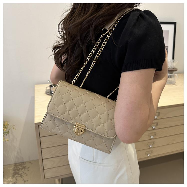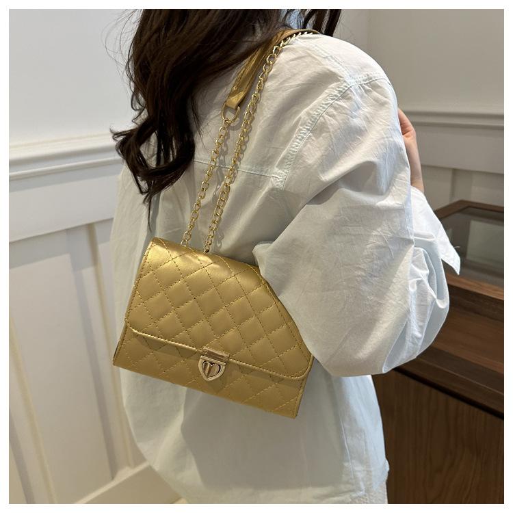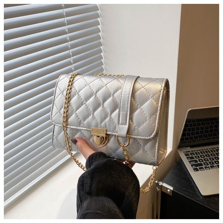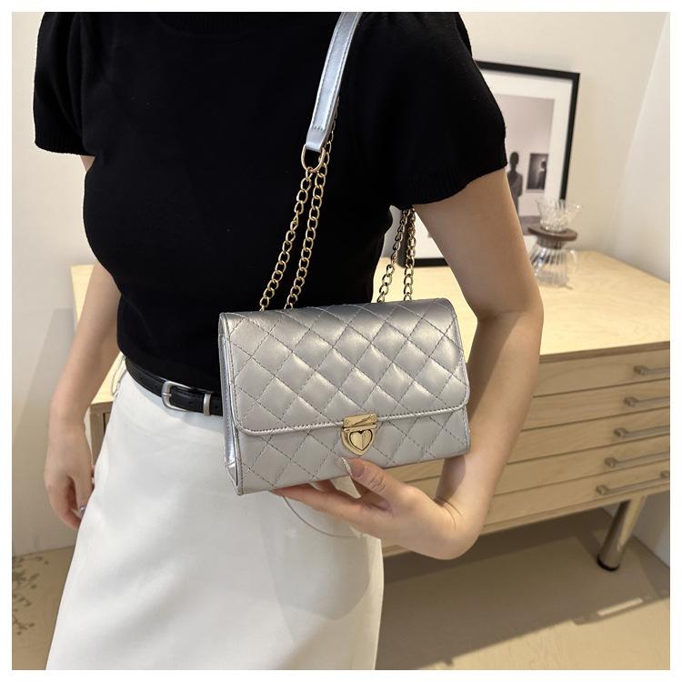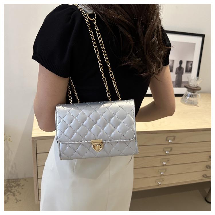 Bolso con bordado de diamantes, novedad de 2024, para mujer, popular bolso cruzado con cadena de color liso, moderno bolso de hombro bajo el brazo, pequeño bolso cuadrado.