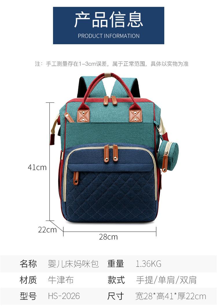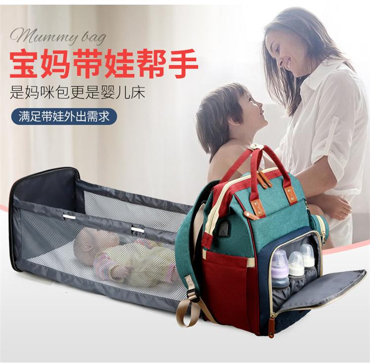 Bolso de momia 2024, nuevo bolso de moda para madre y bebé, bolso de hombro multiusos, de gran capacidad, práctico bolso de cama plegable