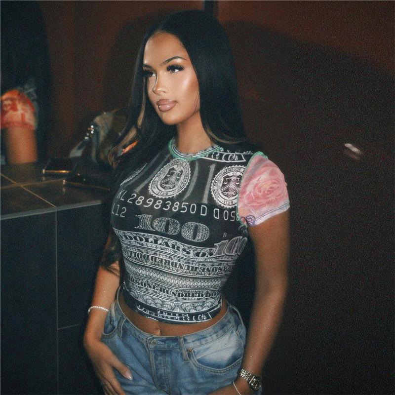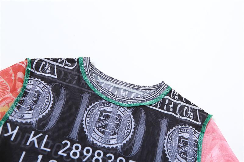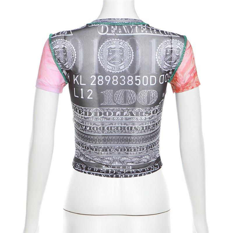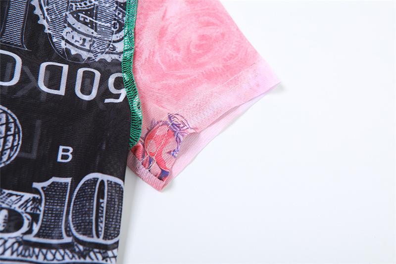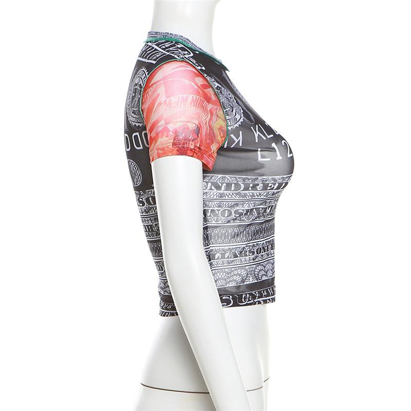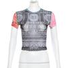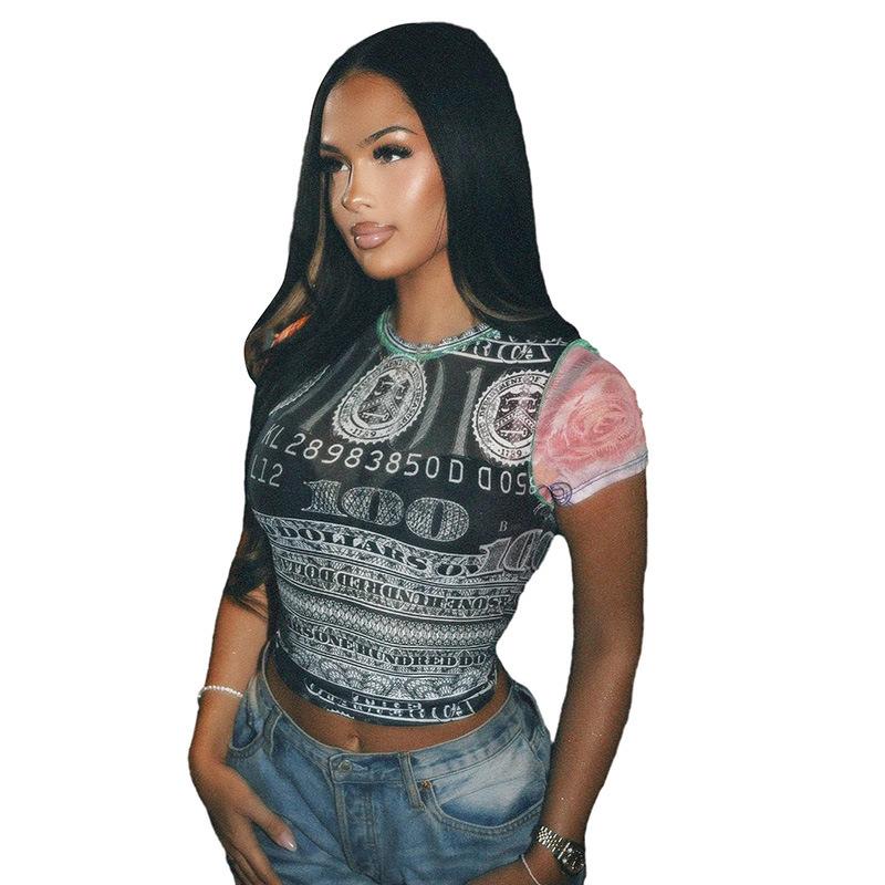 Camiseta de manga corta con estampado digital a juego de colores, sexy, corta y ajustada, para mujer, nueva moda de primavera, venta al por mayor, transfronteriza entre Europa y Estados Unidos