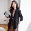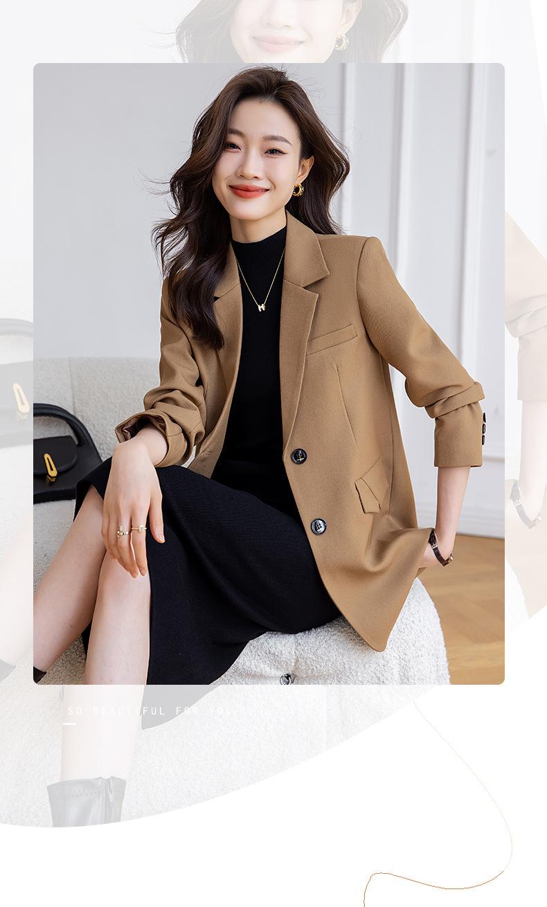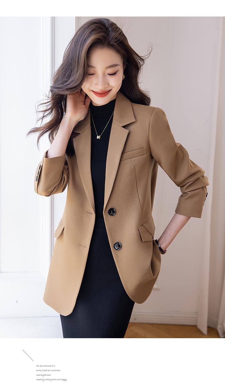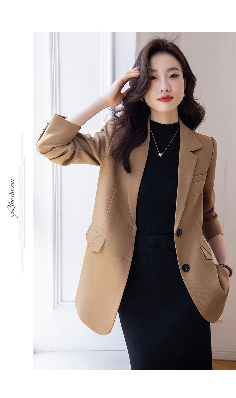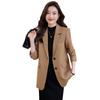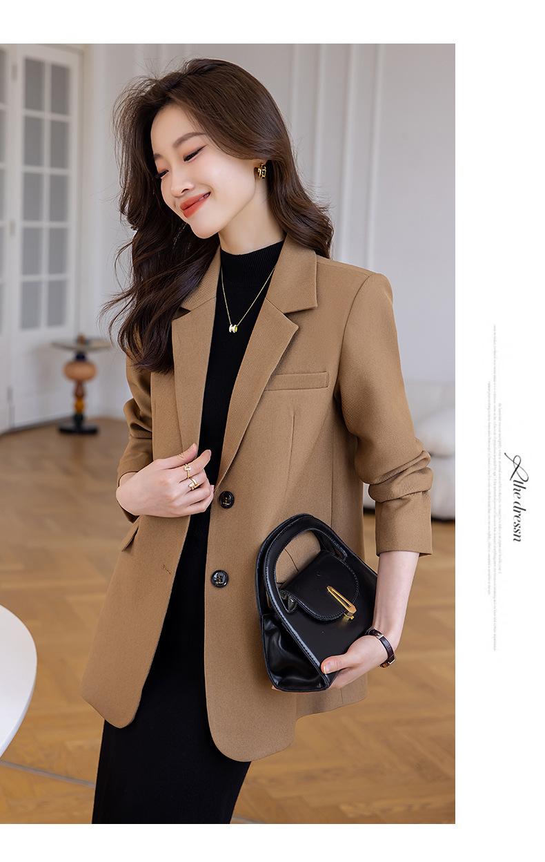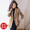 Chaqueta de traje marrón para mujer, pequeña, de alta gama, de corte entallado, informal, adelgazante, otoño 2023, nueva