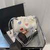 Bolso Cruzado Transfronterizo para Mujer 2025 Nuevo Bolso Moda Color Contrastante Corazón Versátil Bolso de Hombro Plisado Popular Bolso Balde