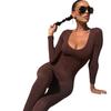 Top de cuello U de color sólido para mujer de primavera y otoño europeo y americano, ajustado, de manga larga, pantalones de una pieza hasta el tobillo, para fondo, comodín, cadera, mujer, al por mayor