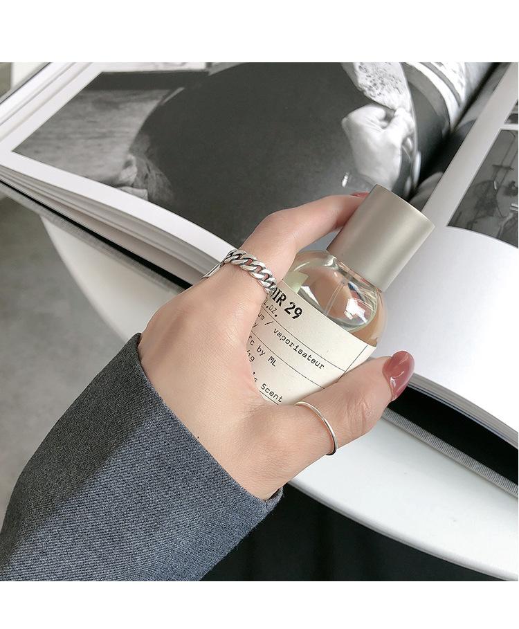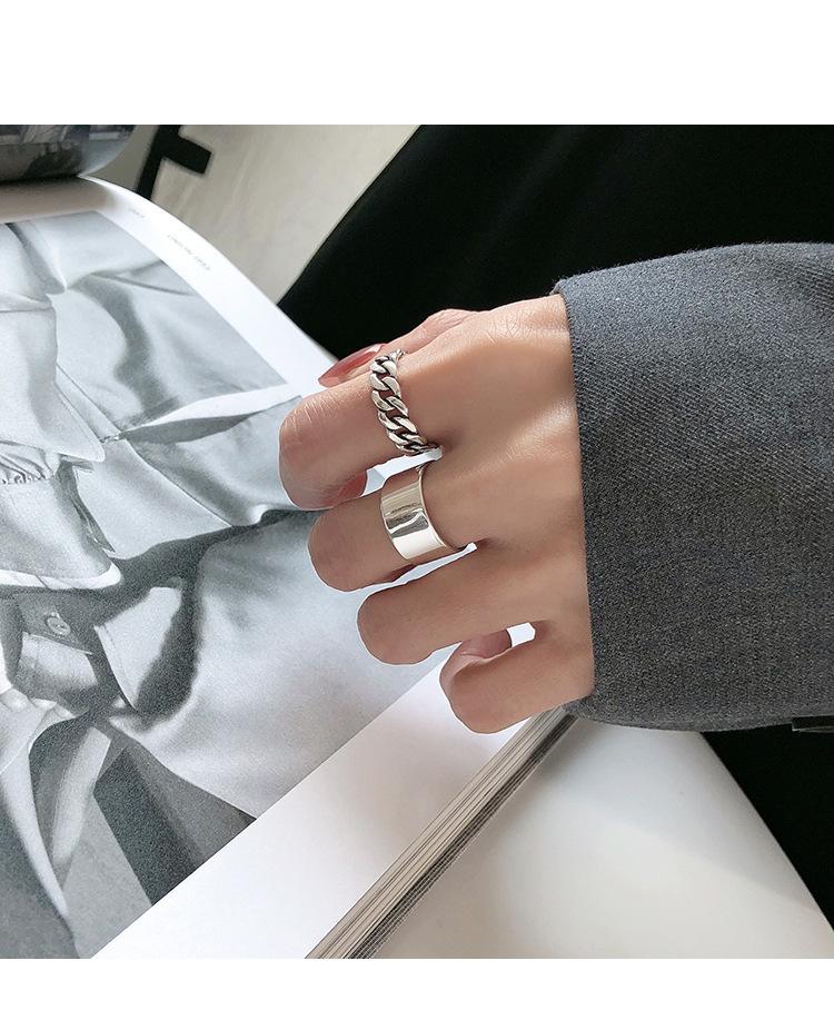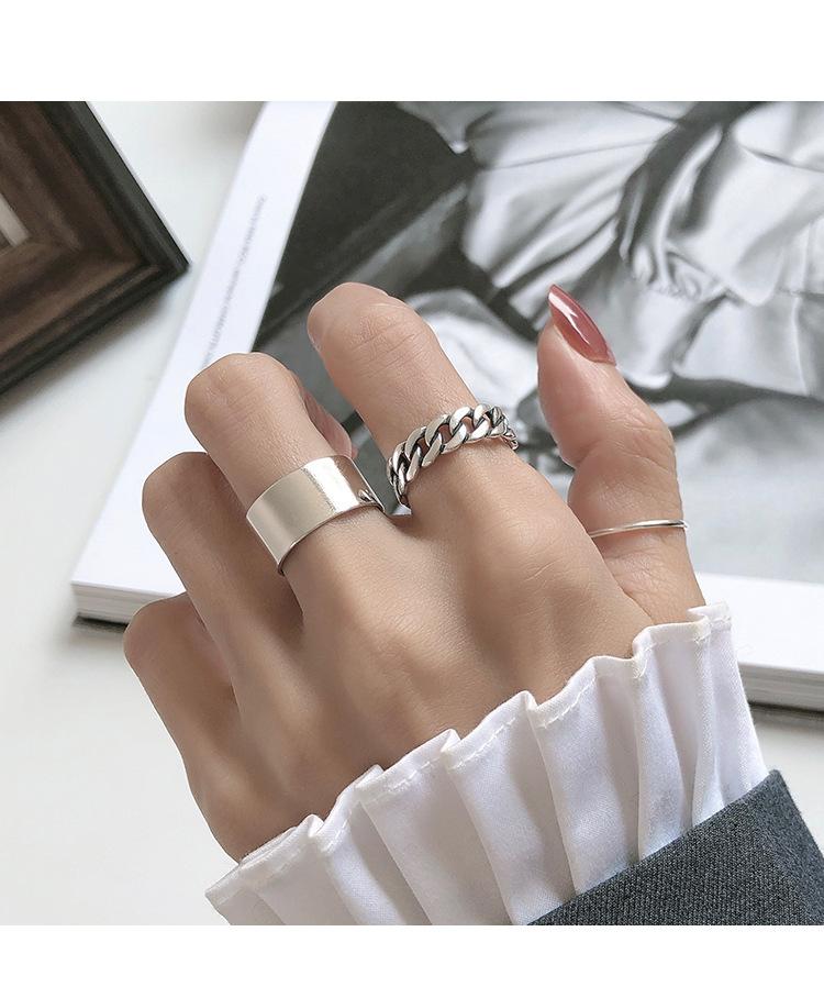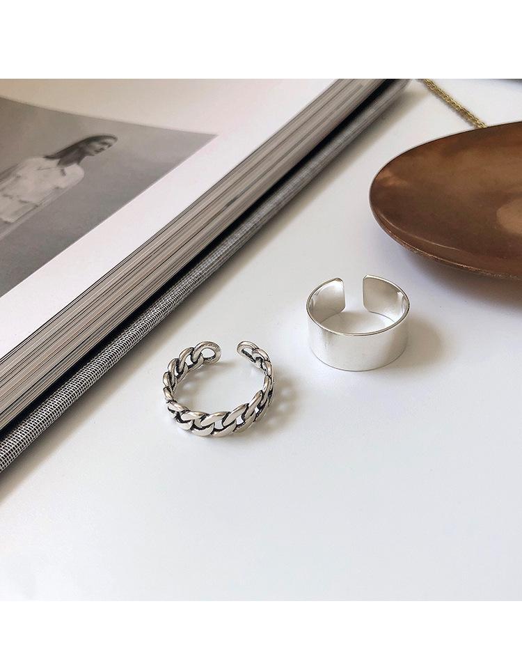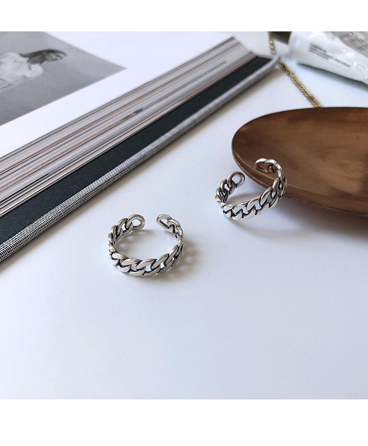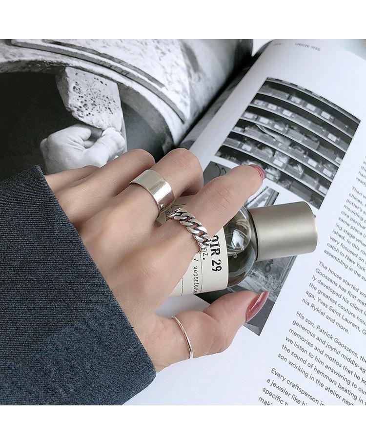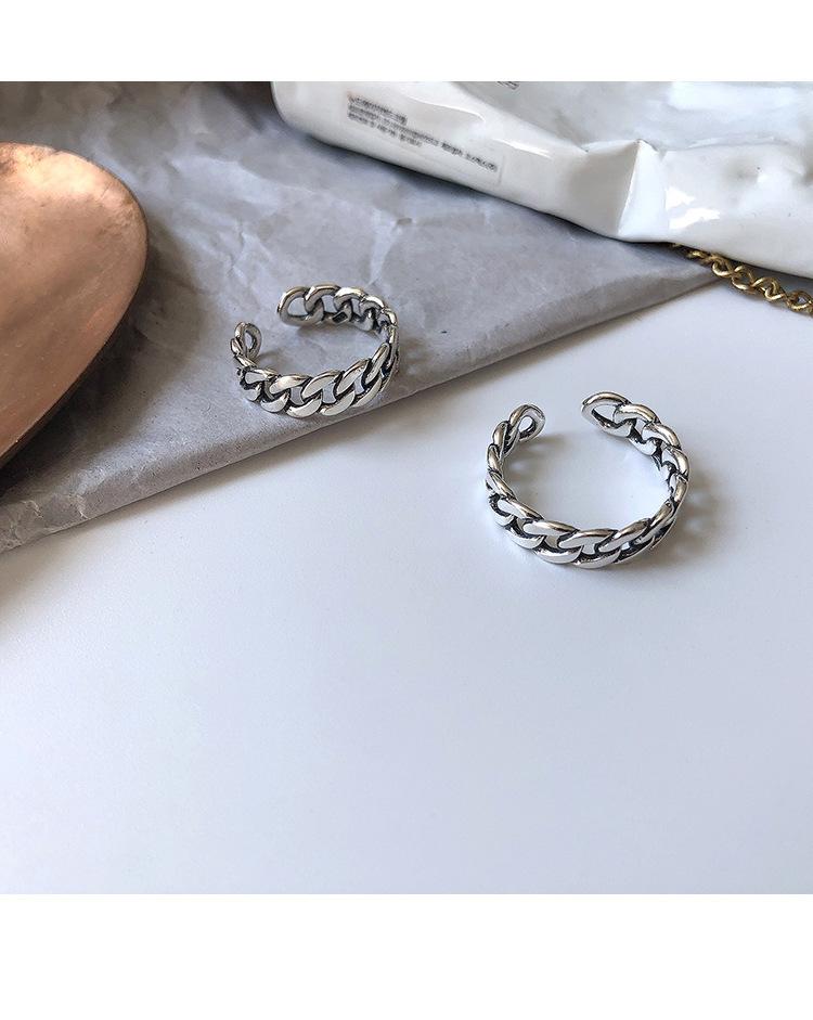 Anillo Abierto Sencillo Brillante de Plata S925 Japonesa y Coreana Moda para Mujer Retro Torcido Cadena de Candado Personal Anillo de Dedo de Comida Trendy