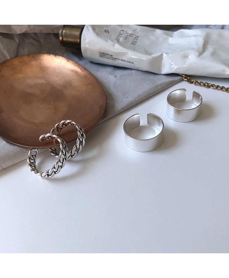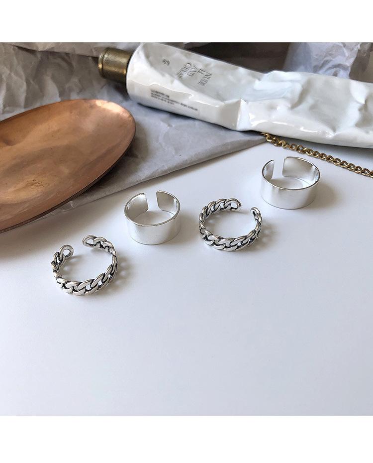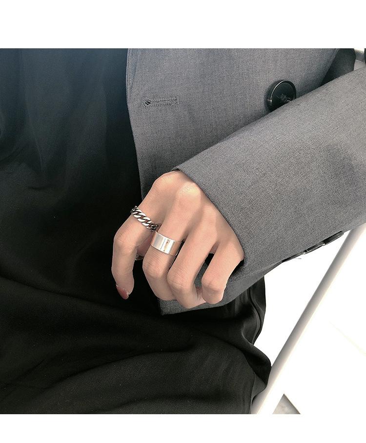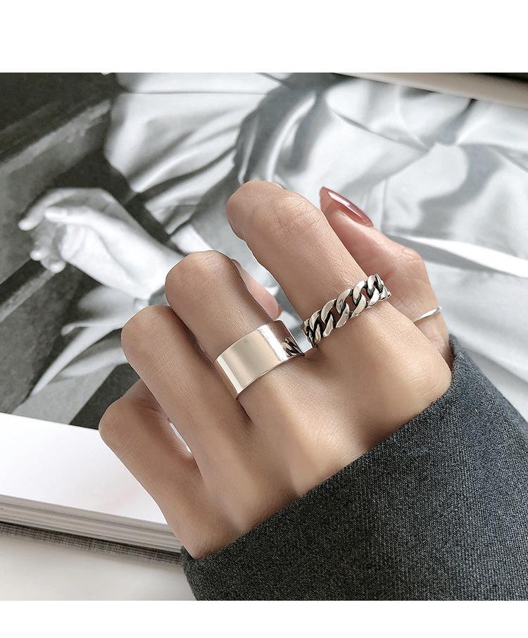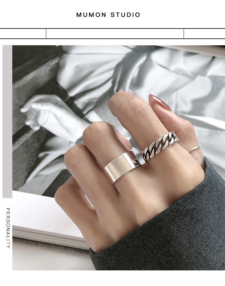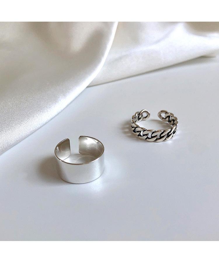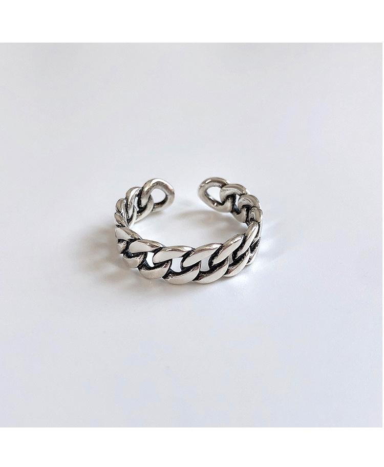 Anillo Abierto Sencillo Brillante de Plata S925 Japonesa y Coreana Moda para Mujer Retro Torcido Cadena de Candado Personal Anillo de Dedo de Comida Trendy