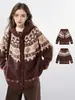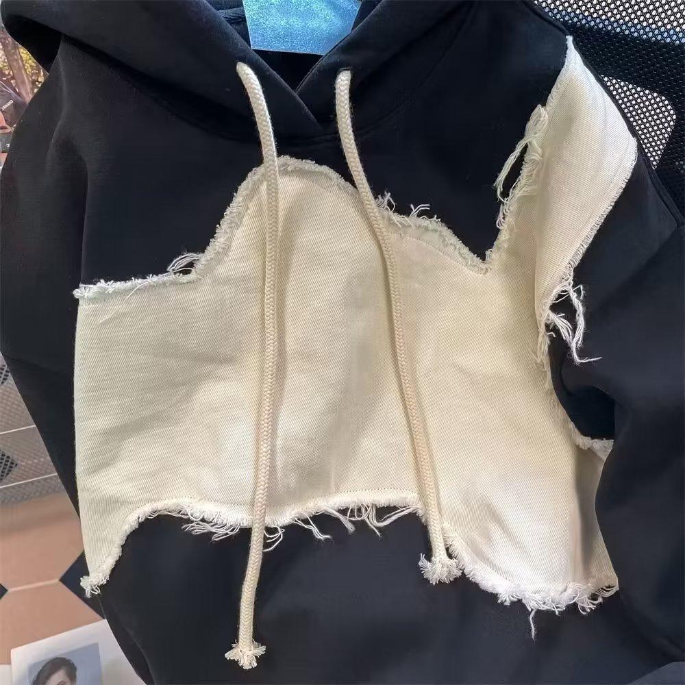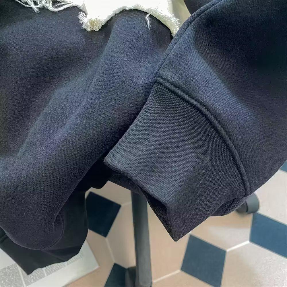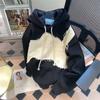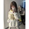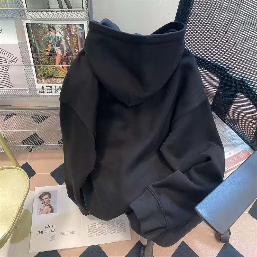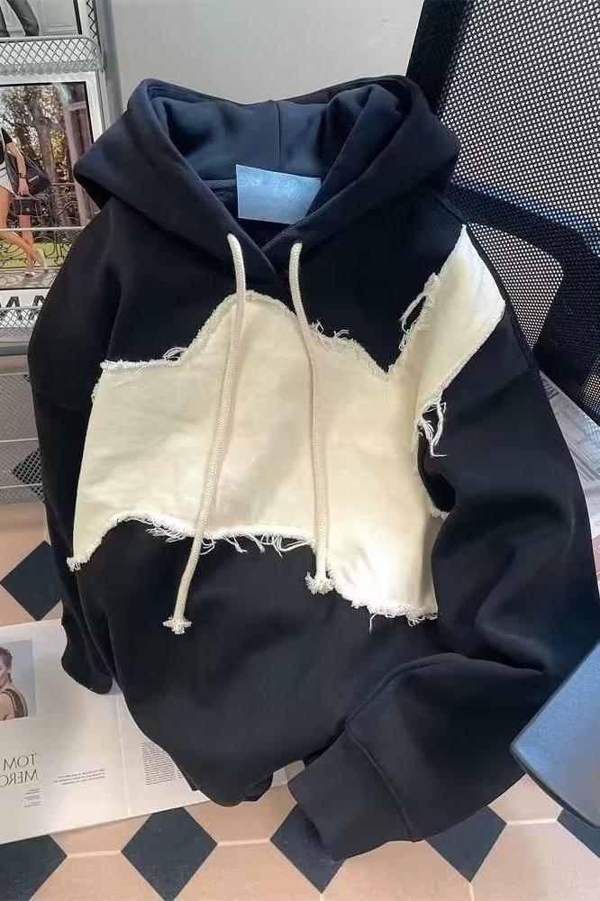 Sudadera con capucha estilo americano de estilo vintage chic con patchwork para hombre y mujer, forrada con vellón, estilo Hong Kong, estilo grueso y elegante, para otoño e invierno.