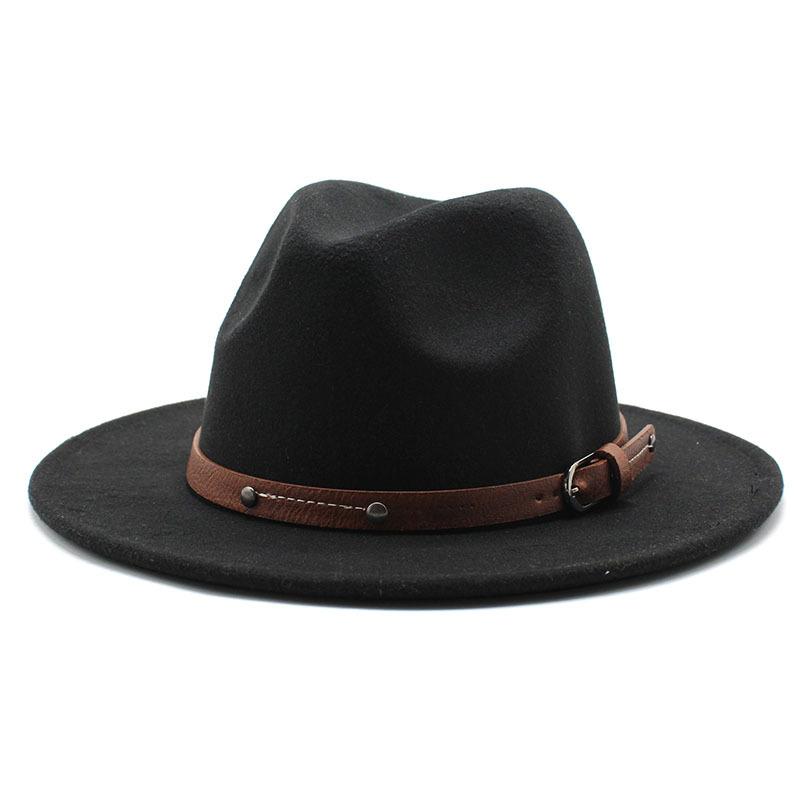 Sombrero de lana de otoño e invierno para hombre y mujer, sombrero de jazz de ala plana de fieltro de ala grande para caballero, sombrero fedora para hombre y mujer.