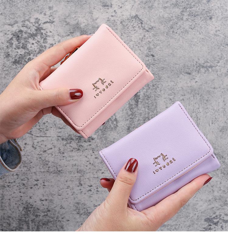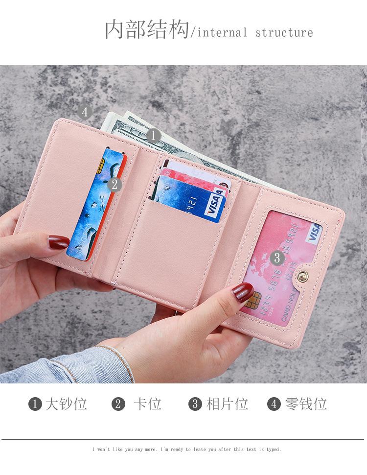 Venta al por mayor directa de fábrica 2020 Nueva billetera corta para mujer Billetera para estudiante Monedero Pu japonés y coreano Fresco y dulce
