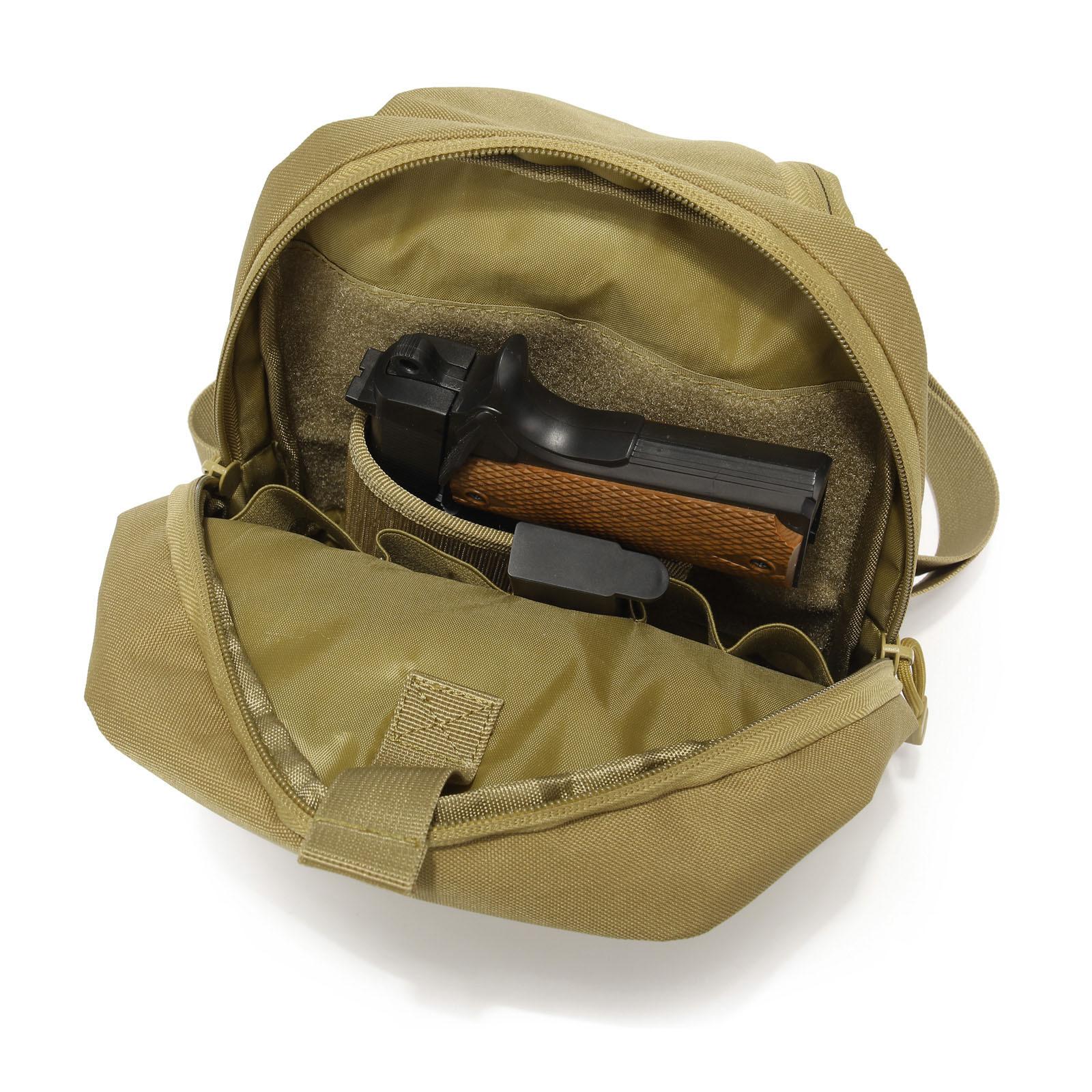 El bolsillo delantero tiene una funda universal para pistola y también está diseñado con 5 bolsillos para cargadores.