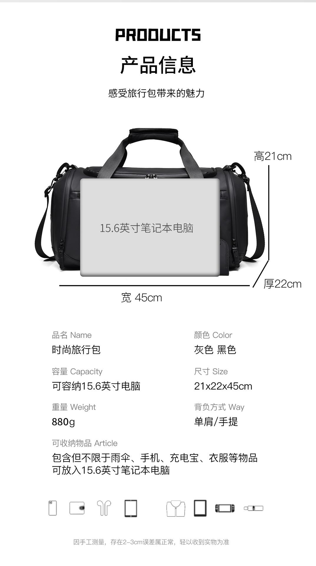 Bolsa Deportiva y de Fitness con Separación Seca y Húmeda, Adecuada para Desplazamientos, Viajes de Negocios, Almacenamiento de Corta Distancia, Bolsa de Equipaje, Ocio al Aire Libre, Bolsa de Viaje de Gran Capacidad