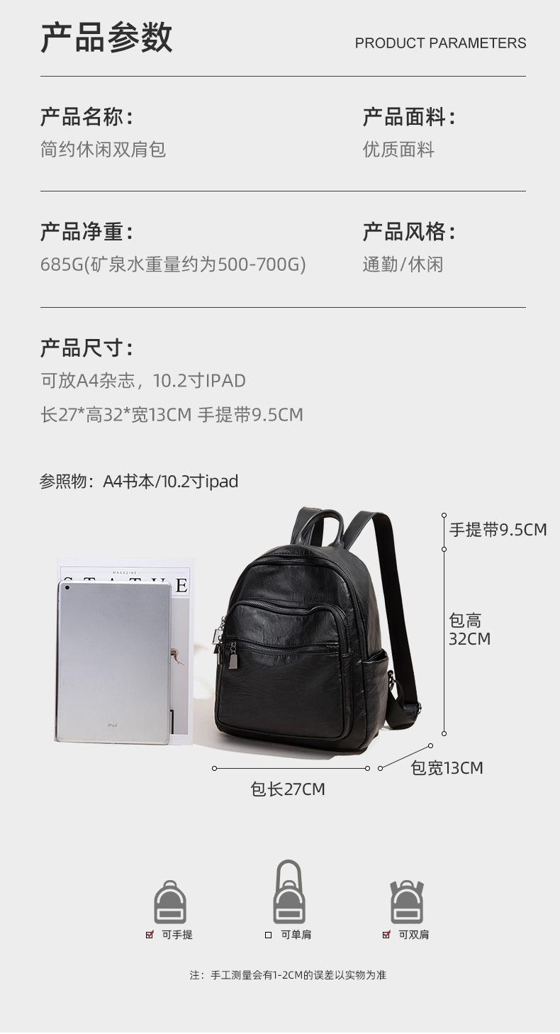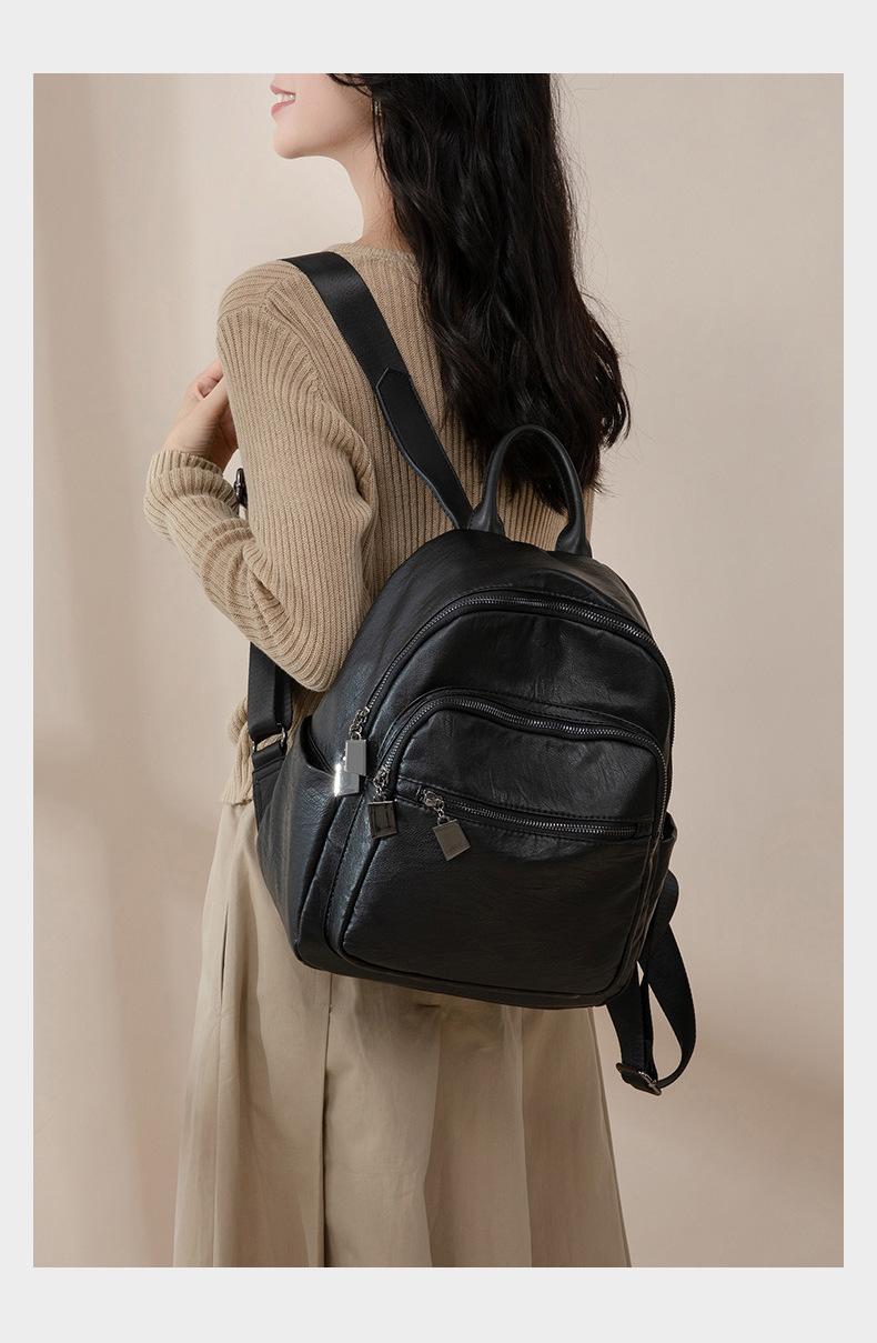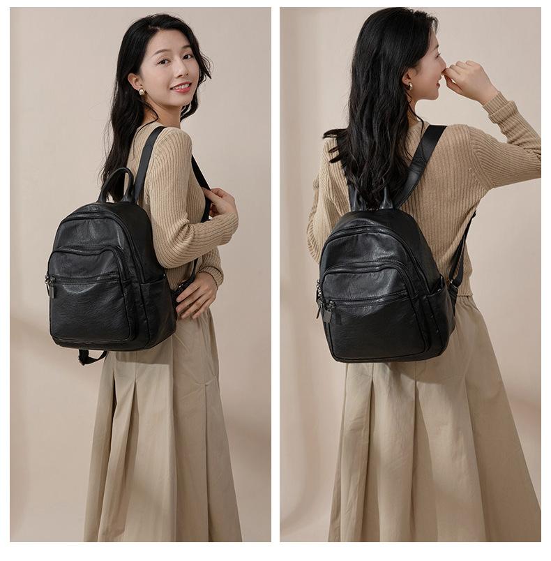 Mochila de Cuero Suave para Mujer Mochila Sencilla de Nuevo Estilo Coreano a la Moda para Mujer Mochila de Gran Capacidad Bolsa de Viaje Bolsa de Mamá